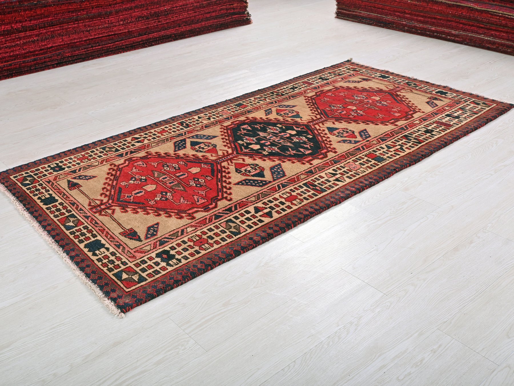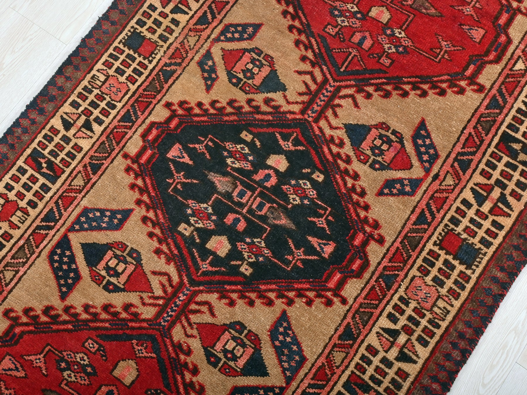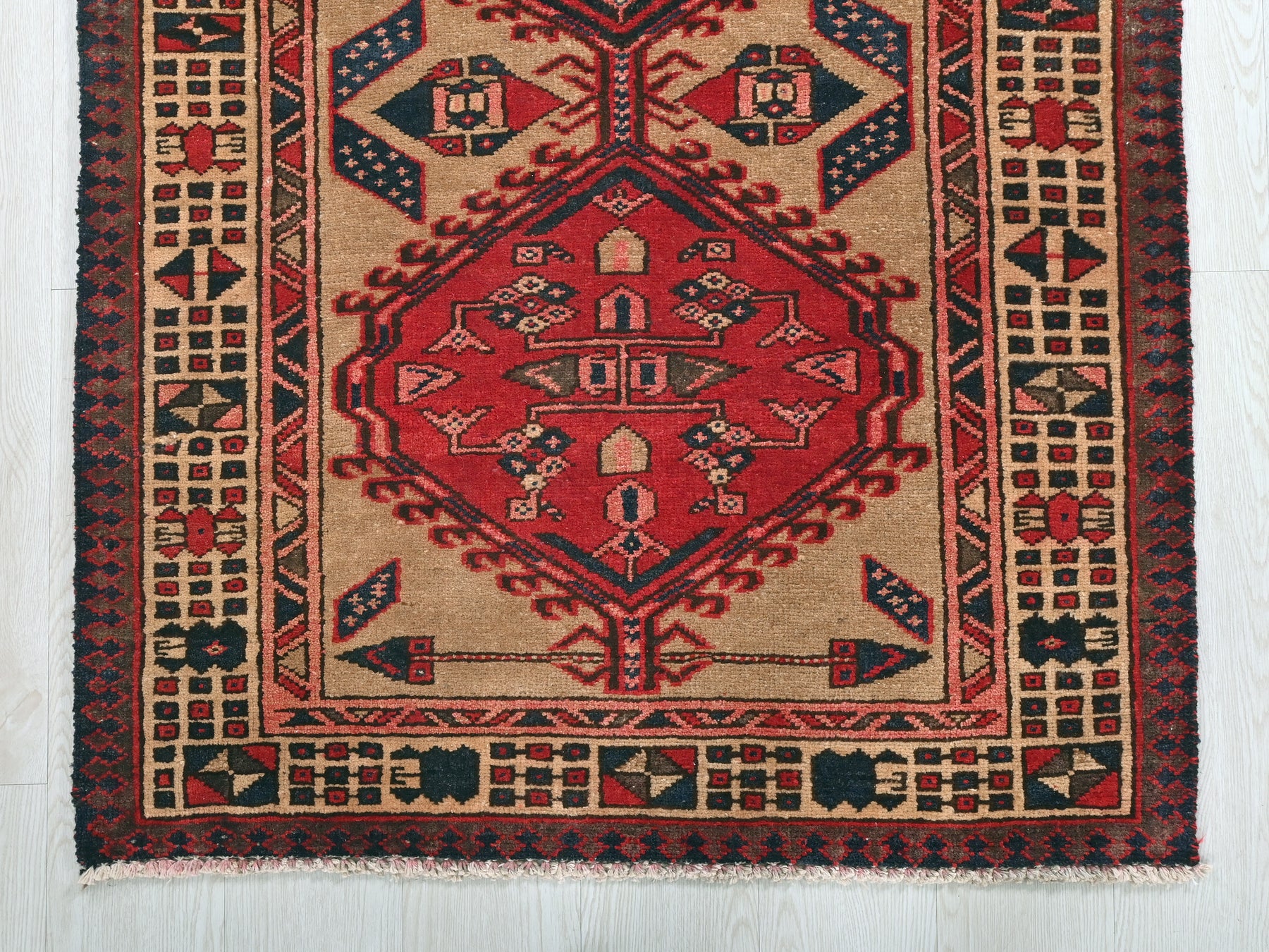 This is a hand-knotted, one-of-a-kind vintage rug. Due to the nature of this piece, there may be slight imperfections in its wear, shape, dimensions, and color. All of our rugs are professionally cleaned and repaired.