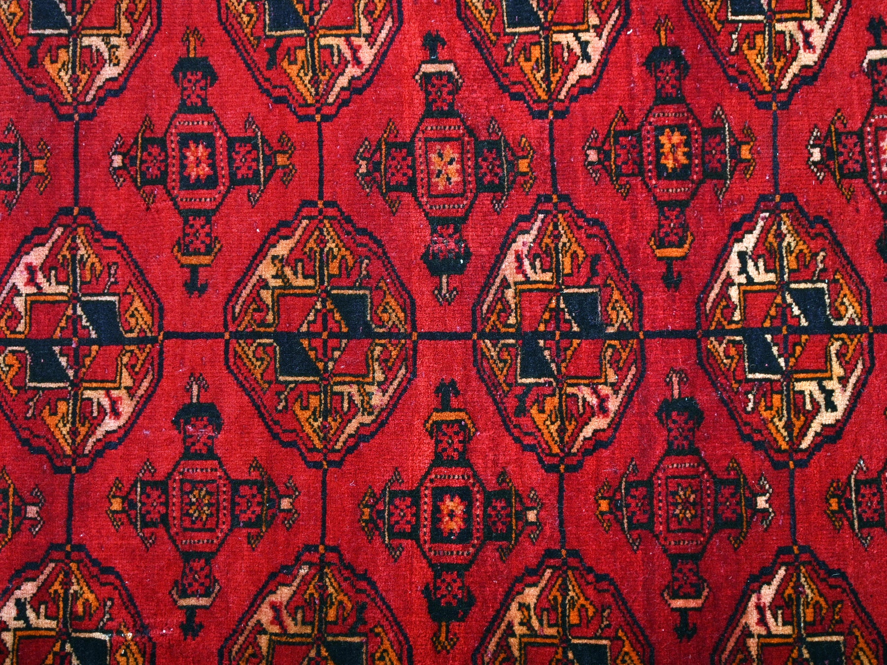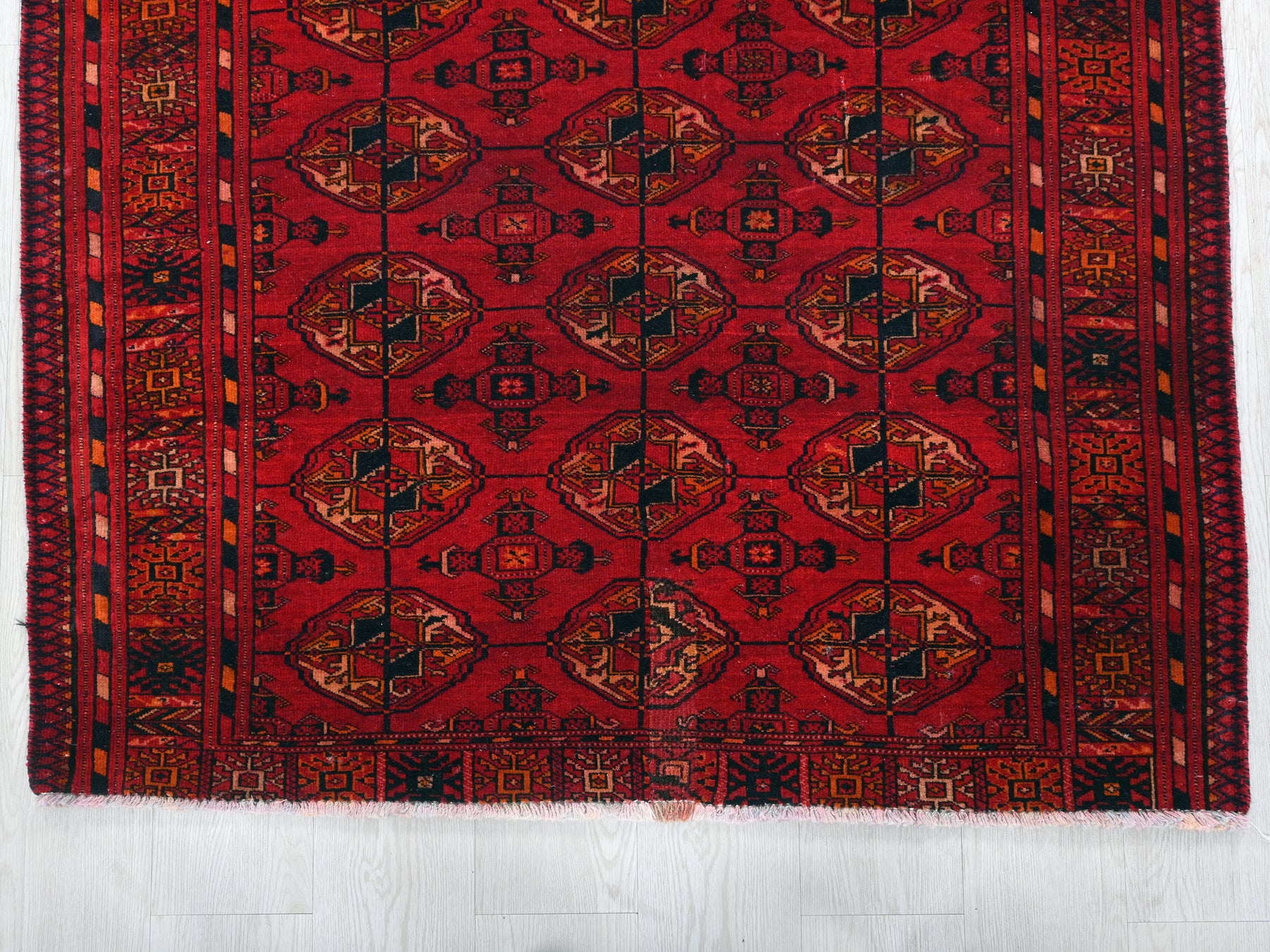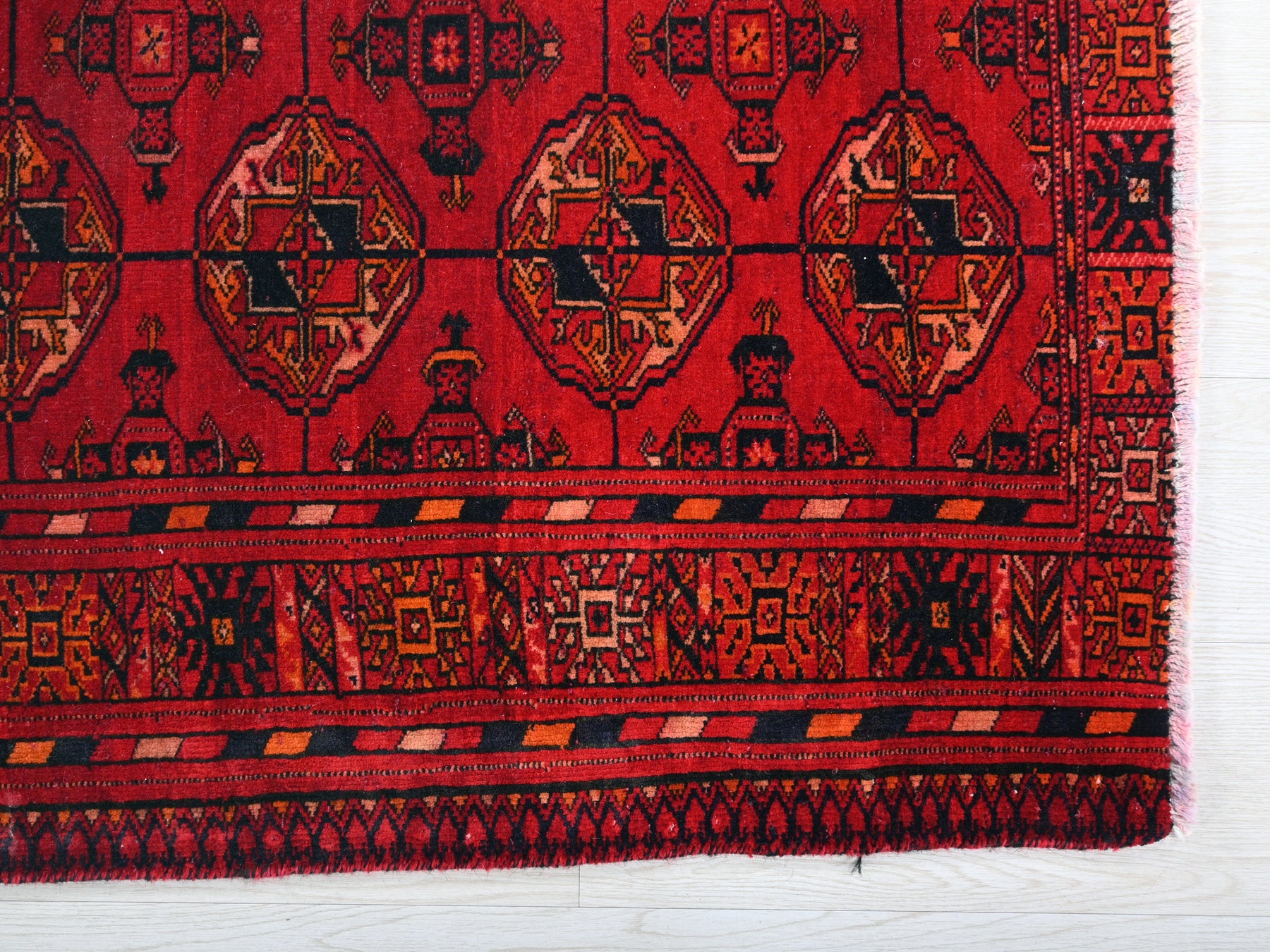 This is a hand-knotted, one-of-a-kind vintage rug. Due to the nature of this piece, there may be slight imperfections in its wear, shape, dimensions, and color. All of our rugs are professionally cleaned and repaired.