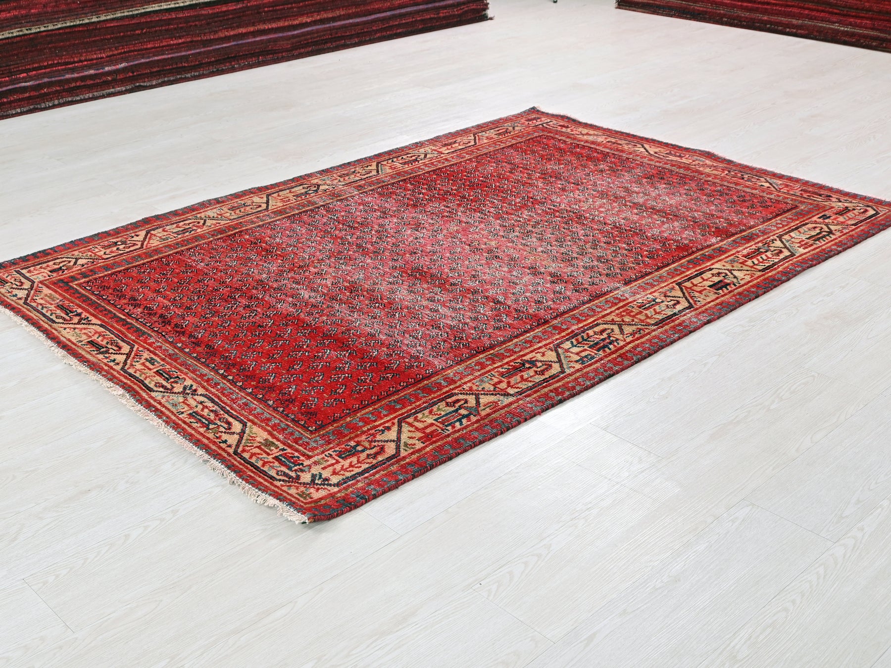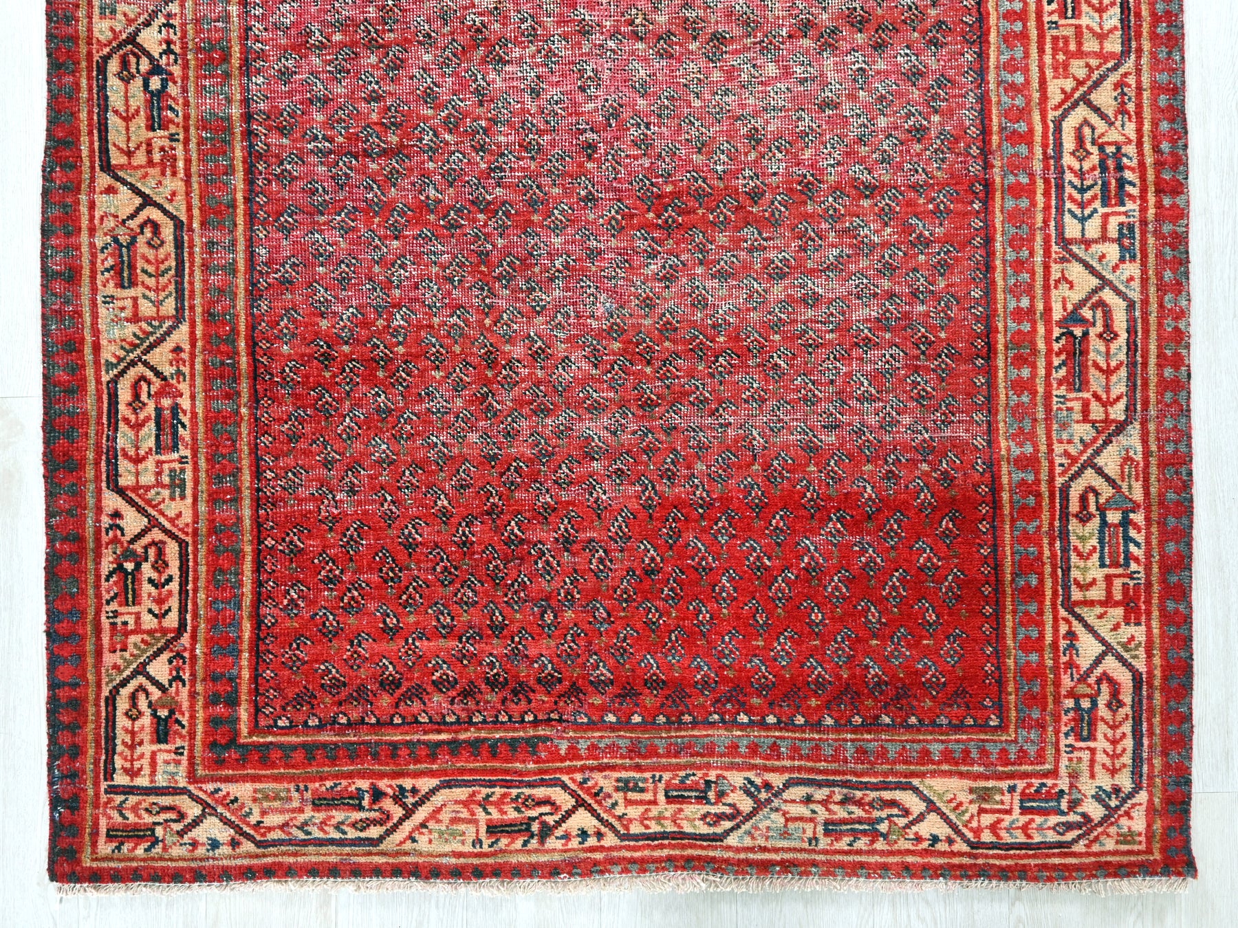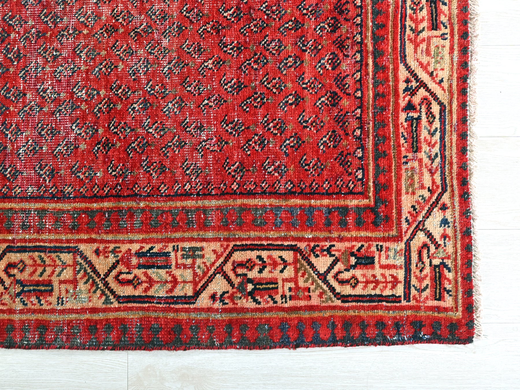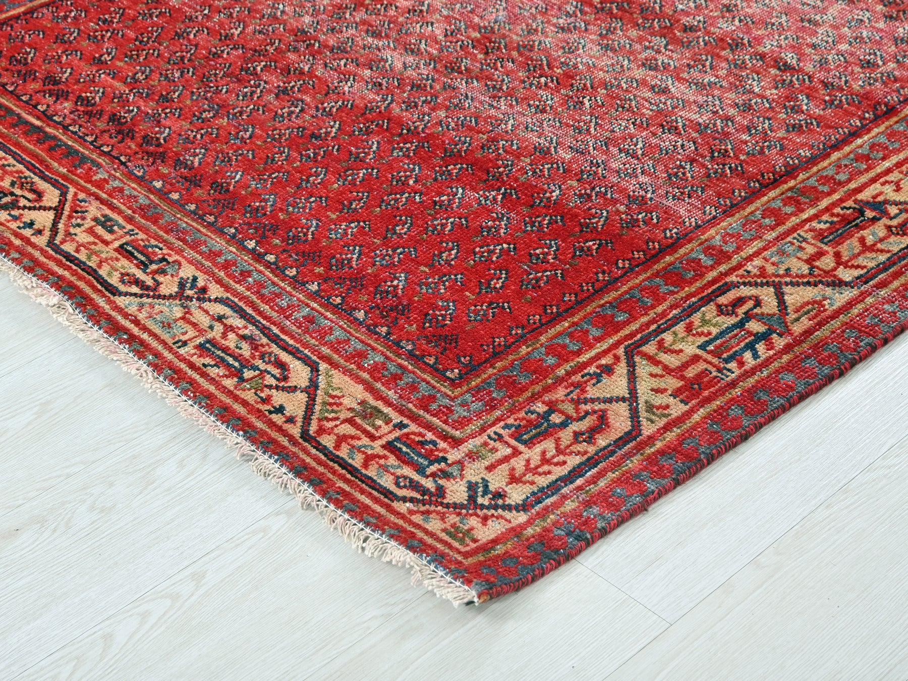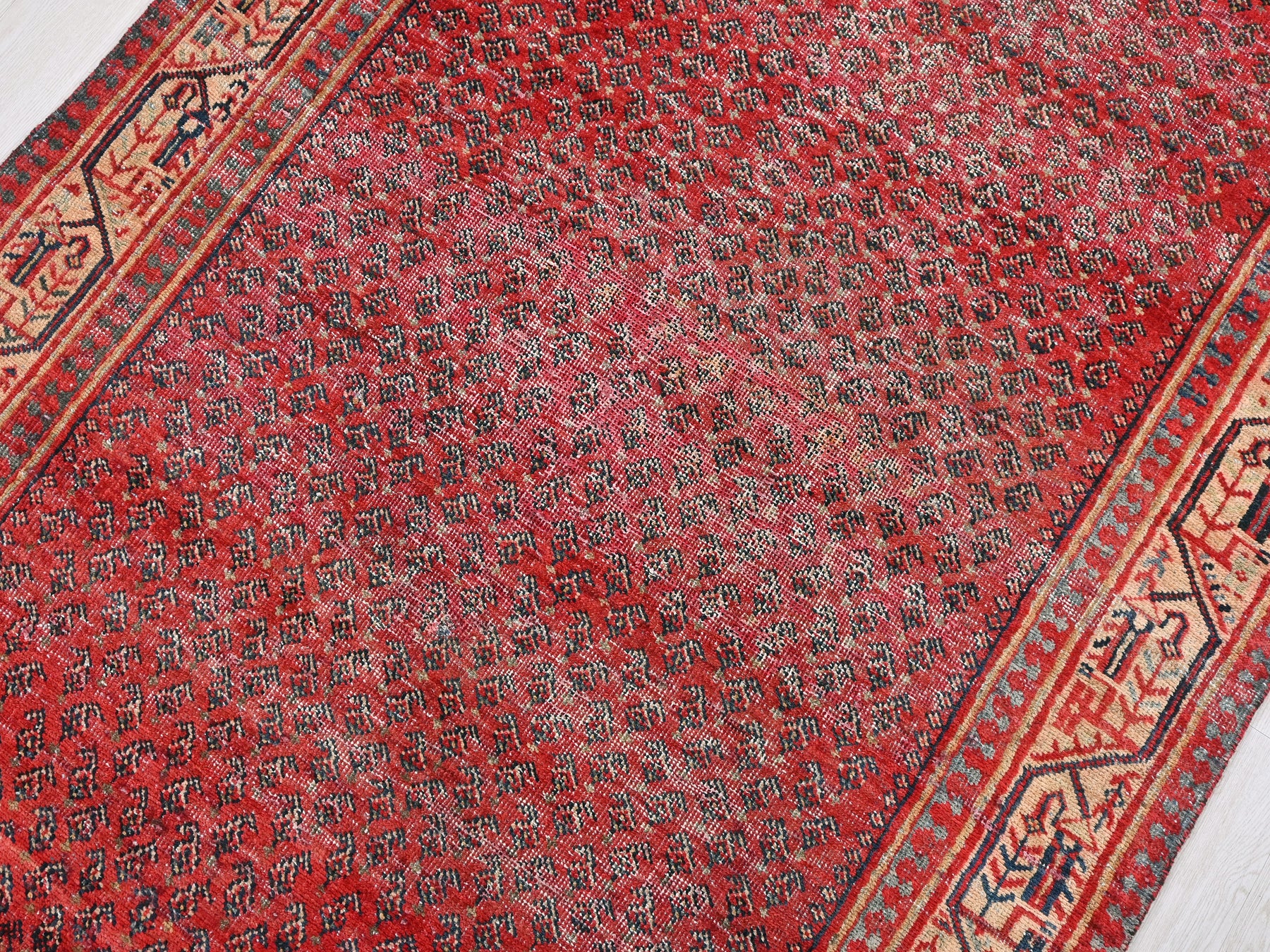 This is a hand-knotted, one-of-a-kind vintage rug. Due to the nature of this piece, there may be slight imperfections in its wear, shape, dimensions, and color. All of our rugs are professionally cleaned and repaired.
