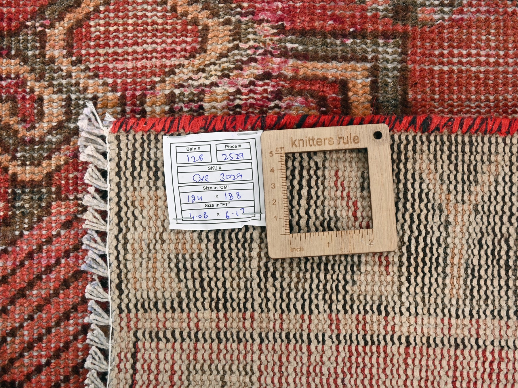 a red and black rug with a pattern on it