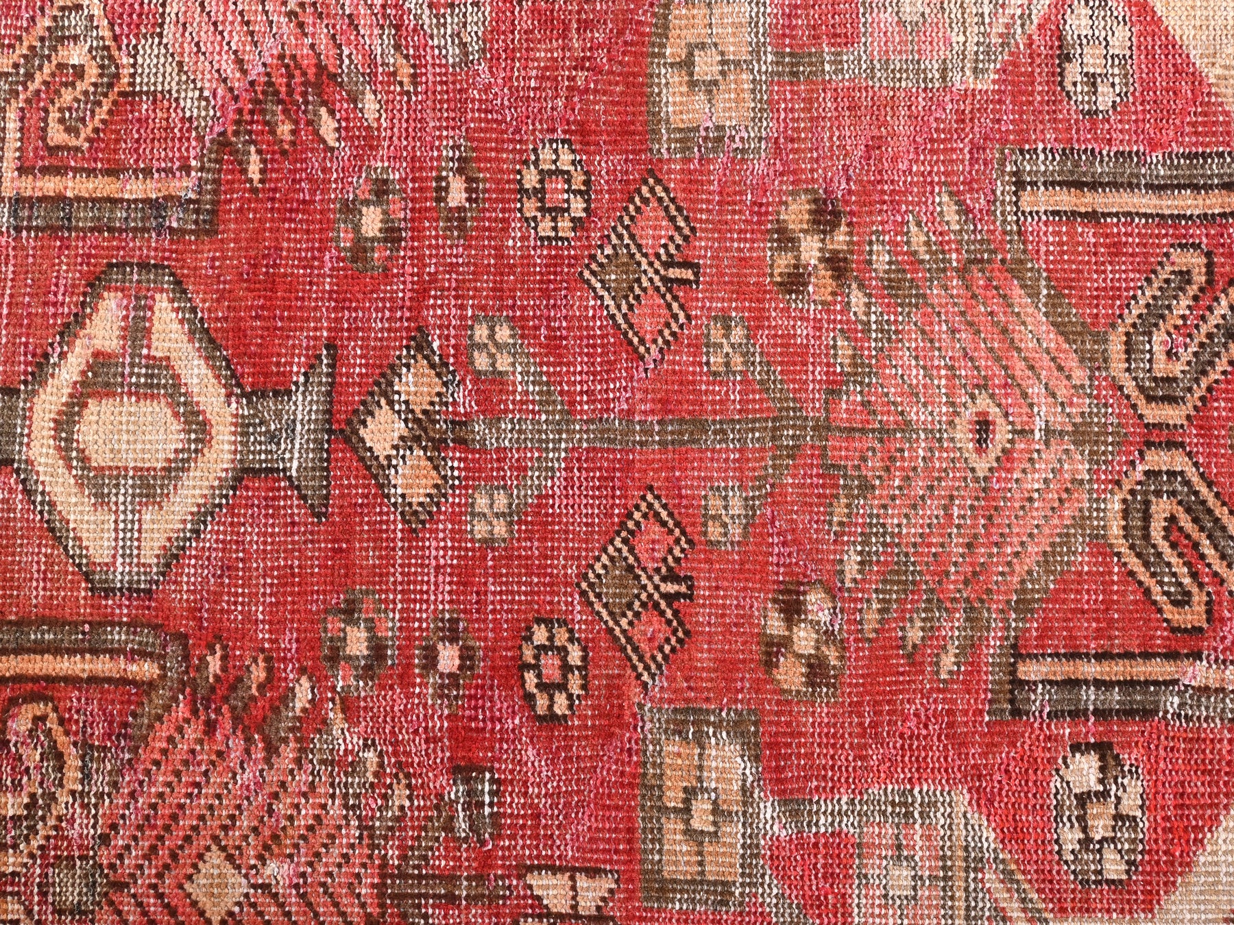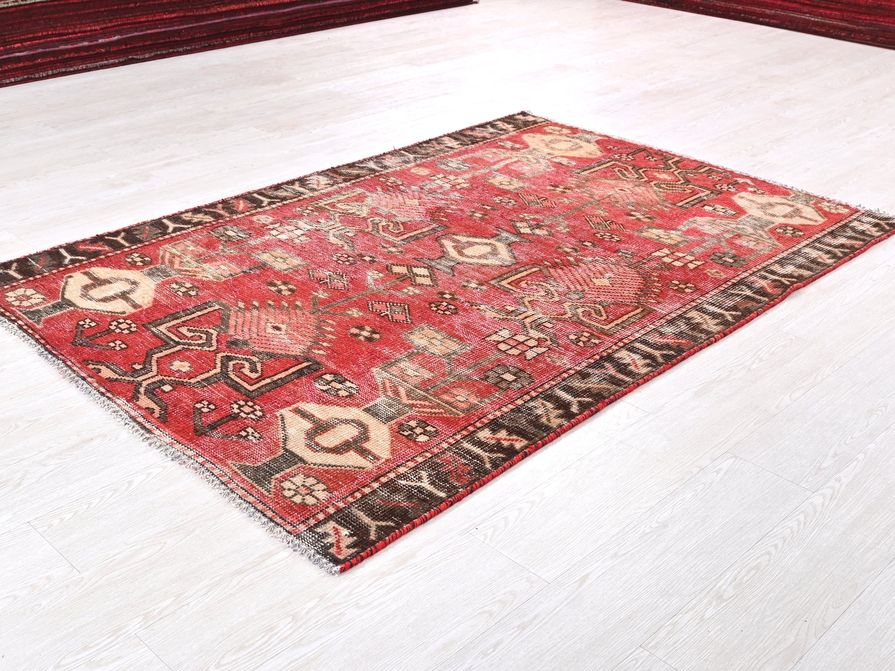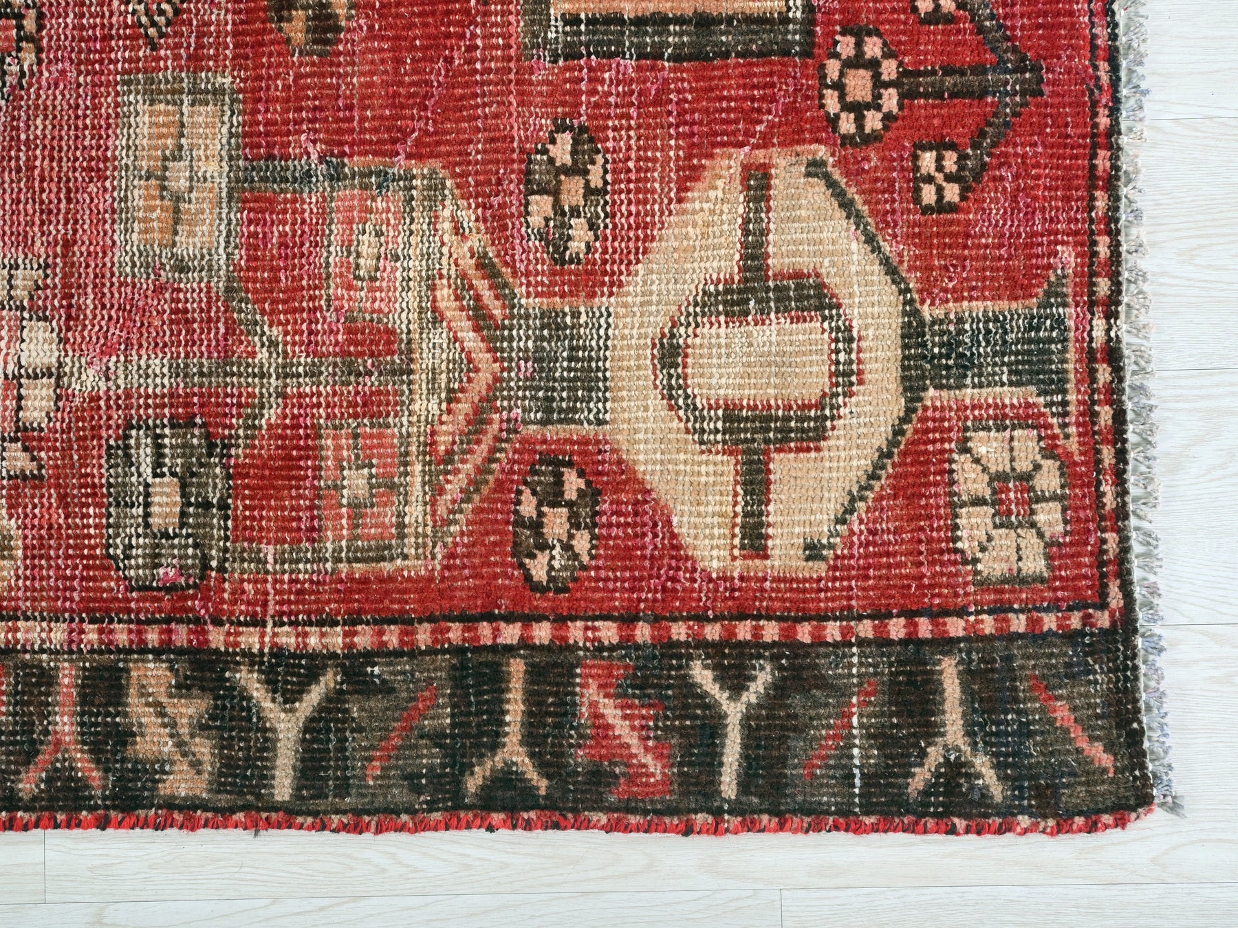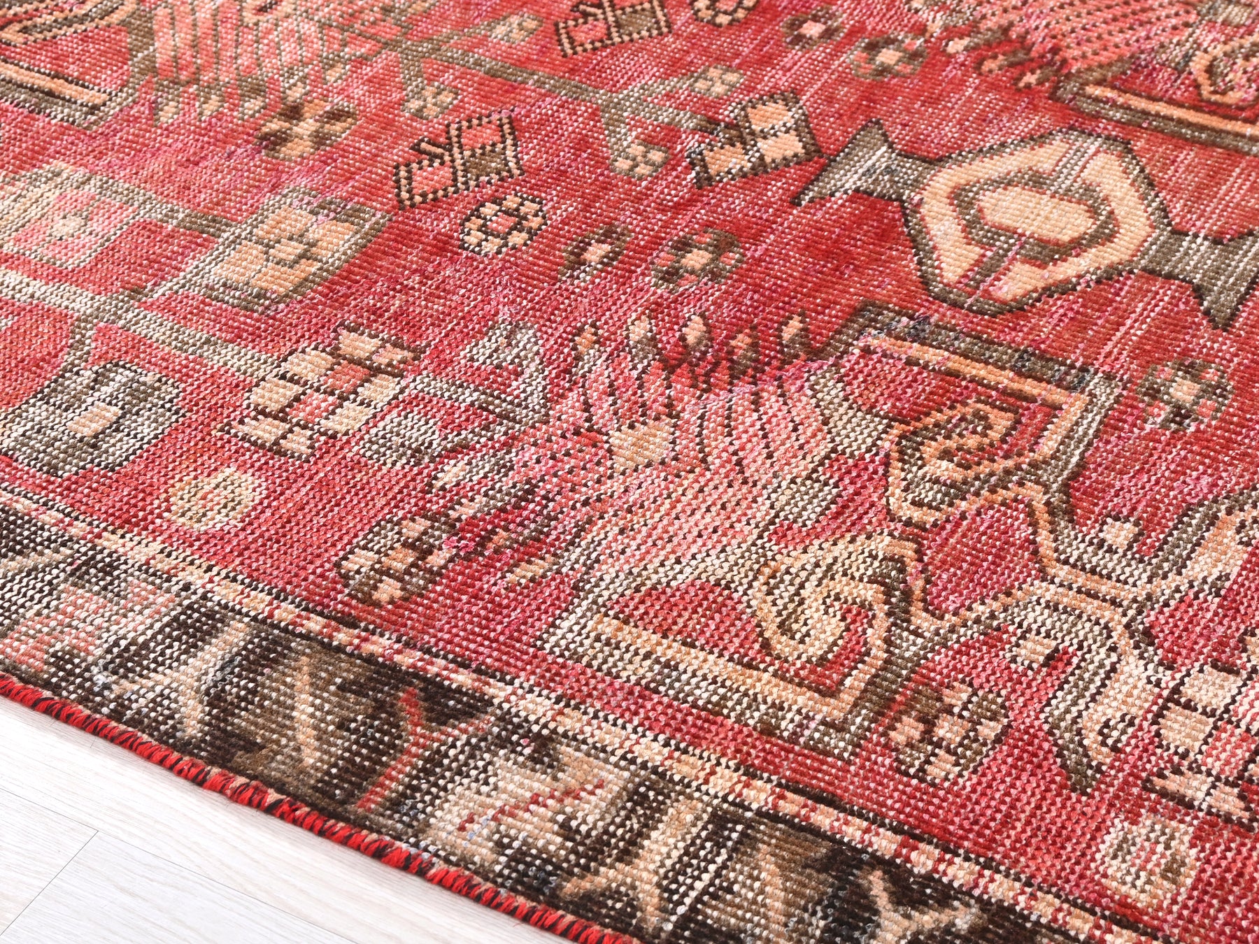 This is a hand-knotted, one-of-a-kind vintage rug. Due to the nature of this piece, there may be slight imperfections in its wear, shape, dimensions, and color. All of our rugs are professionally cleaned and repaired.