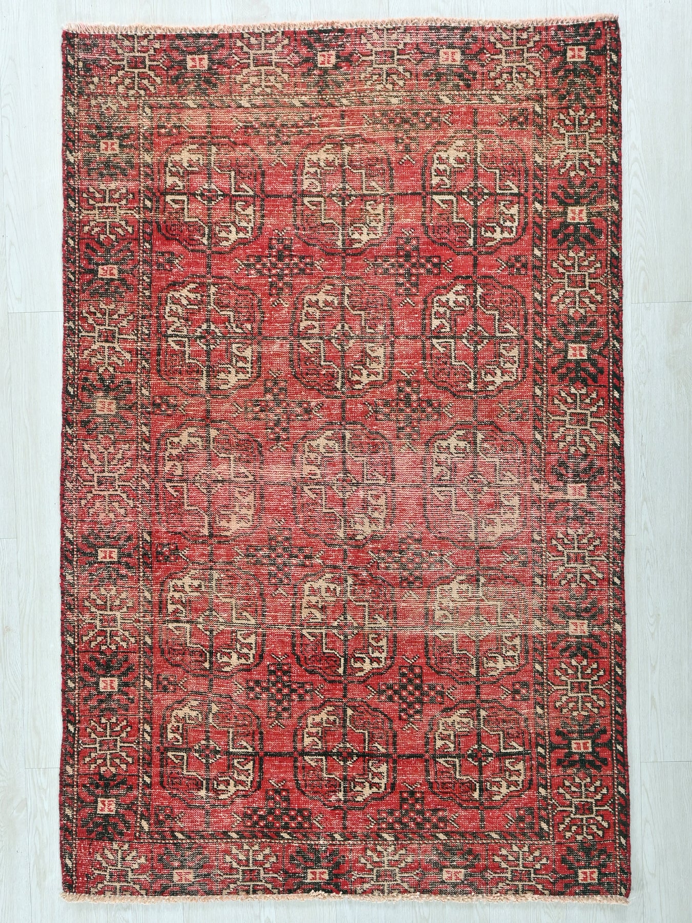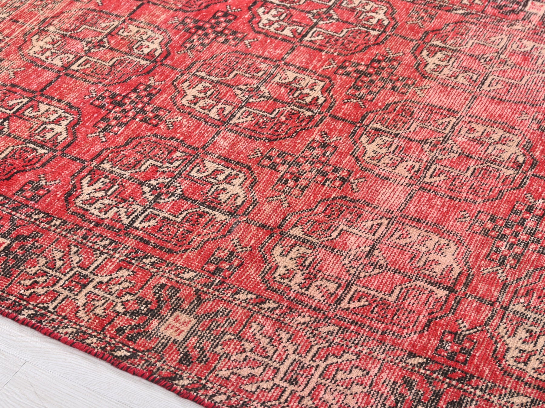 This is a hand-knotted, one-of-a-kind vintage rug. Due to the nature of this piece, there may be slight imperfections in its wear, shape, dimensions, and color. All of our rugs are professionally cleaned and repaired.