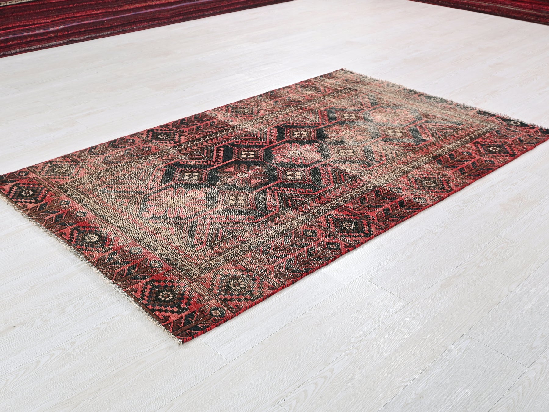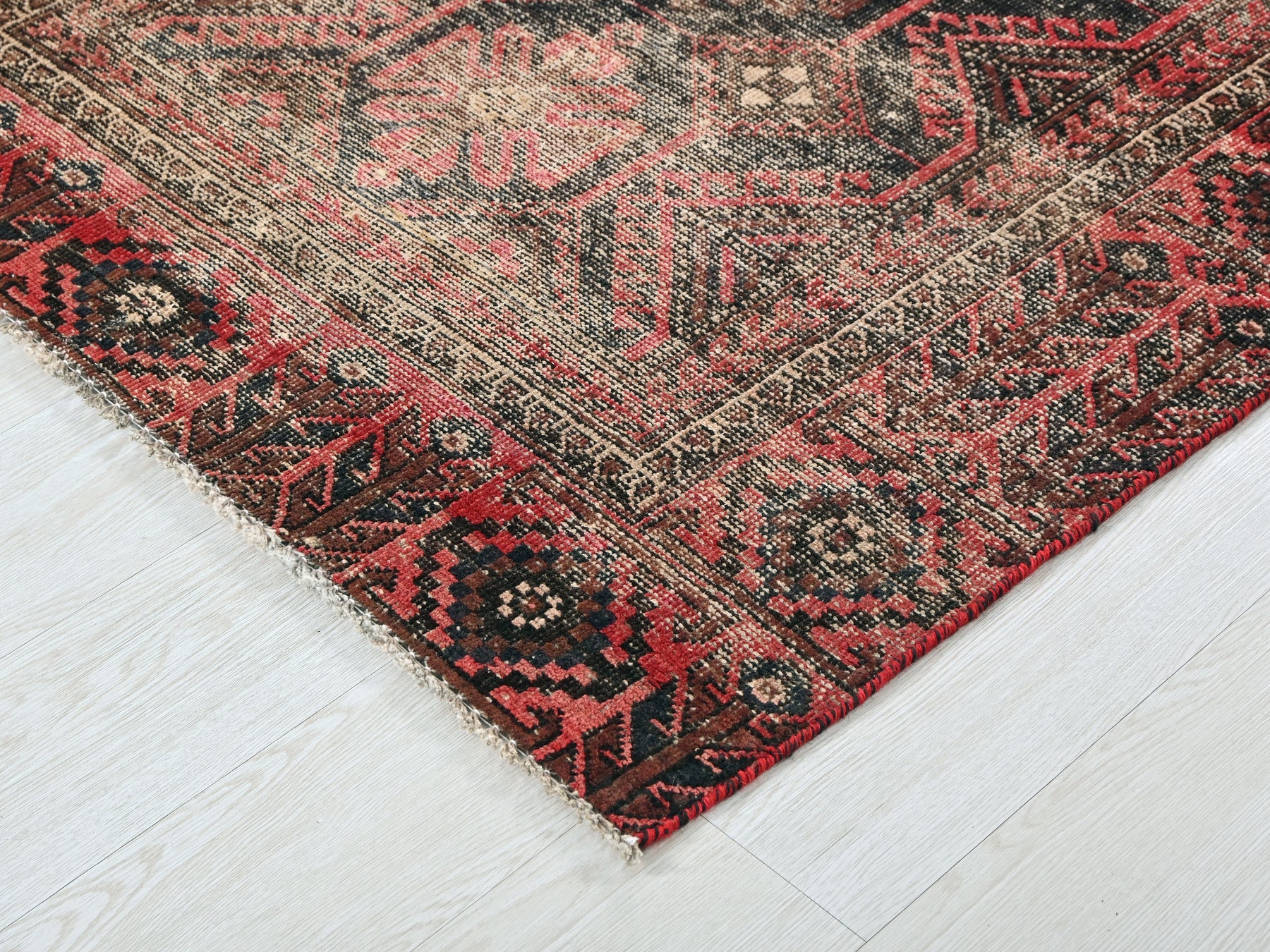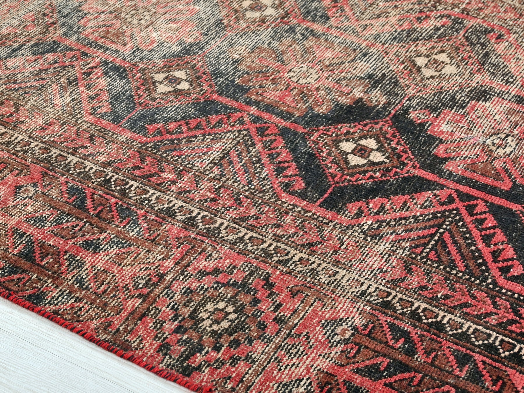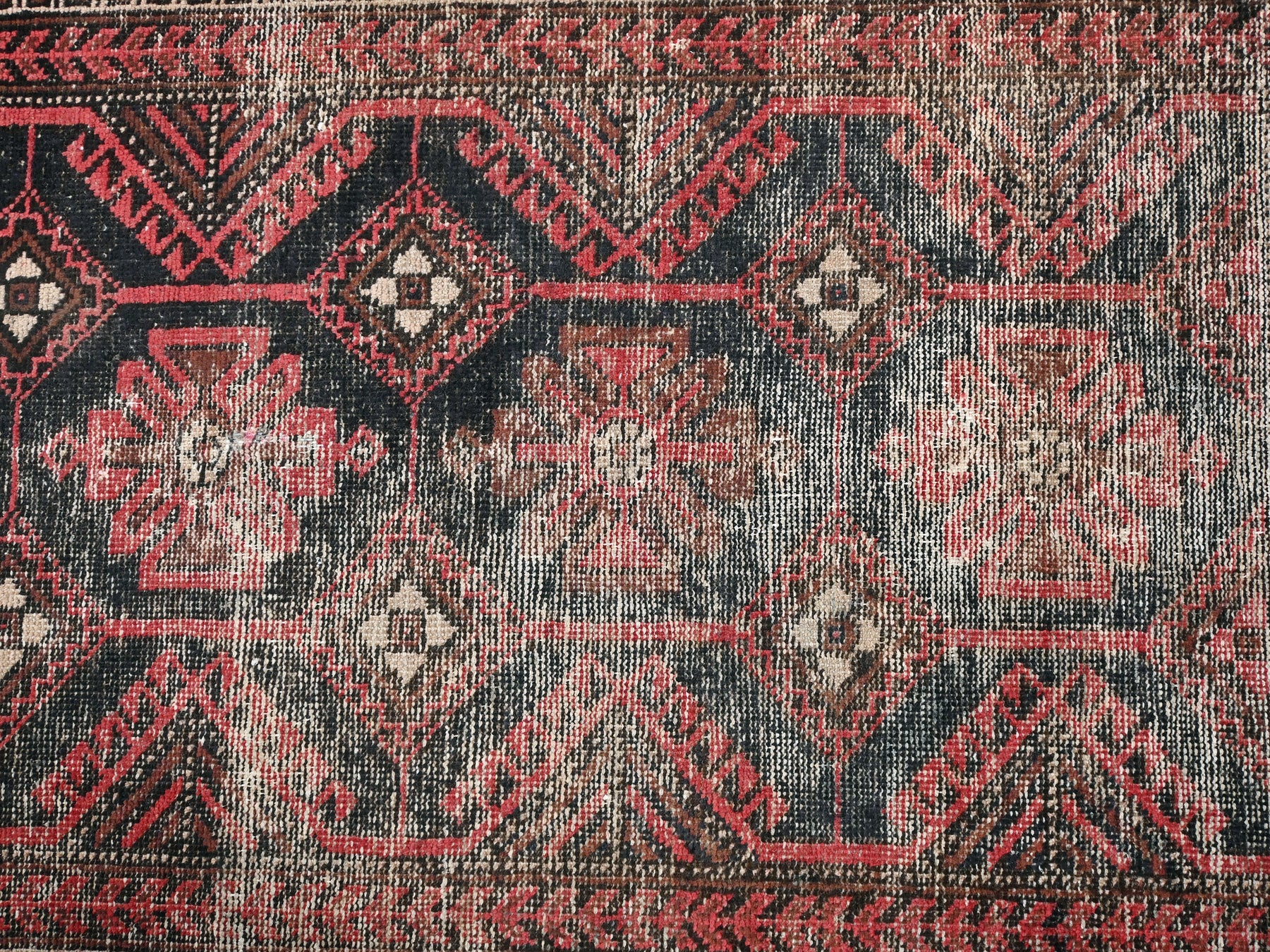 This is a hand-knotted, one-of-a-kind vintage rug. Due to the nature of this piece, there may be slight imperfections in its wear, shape, dimensions, and color. All of our rugs are professionally cleaned and repaired.