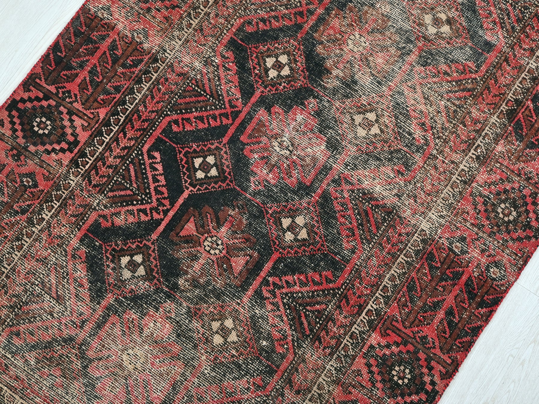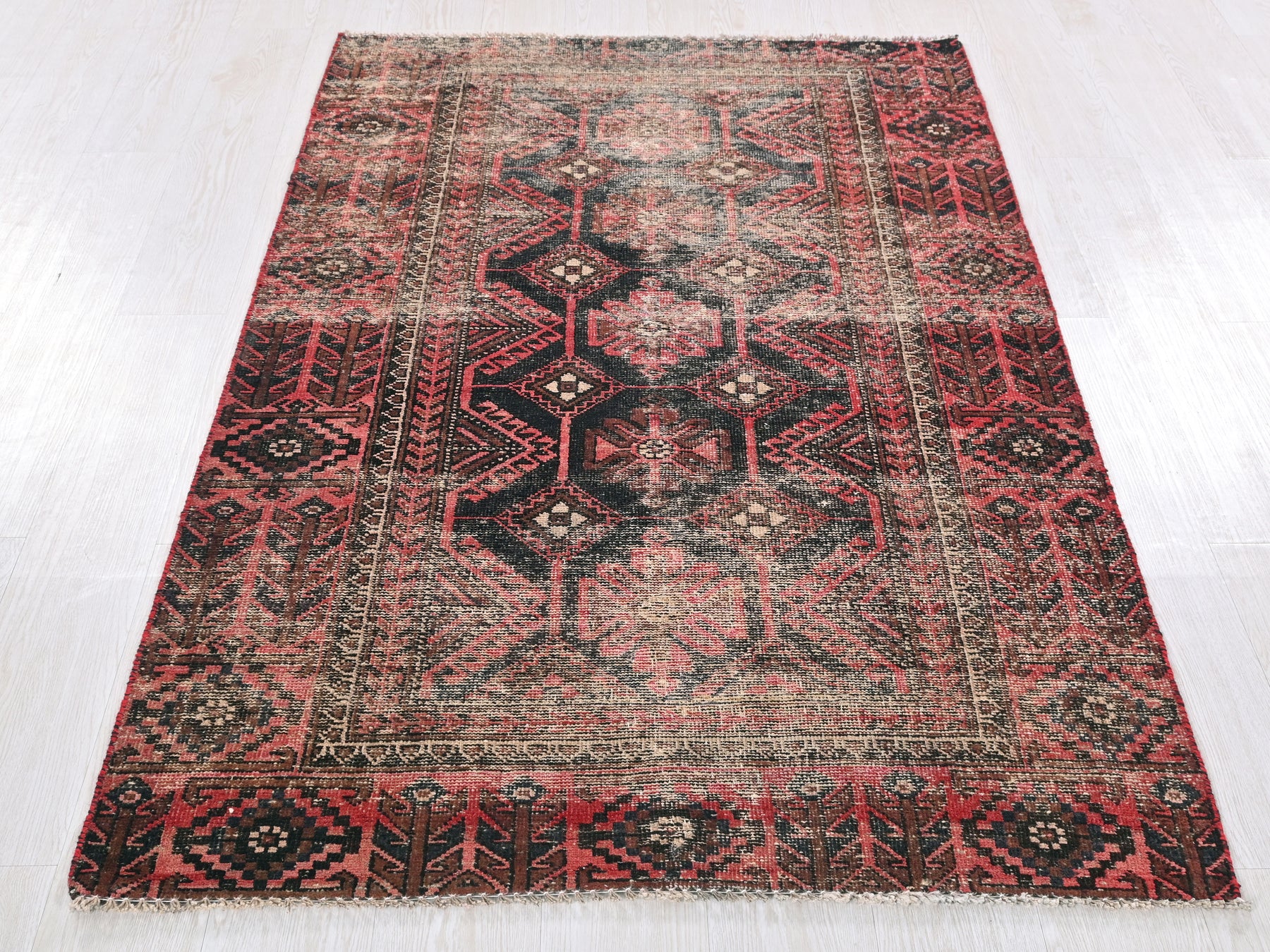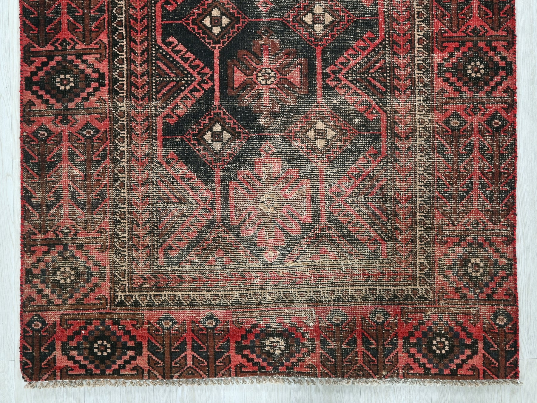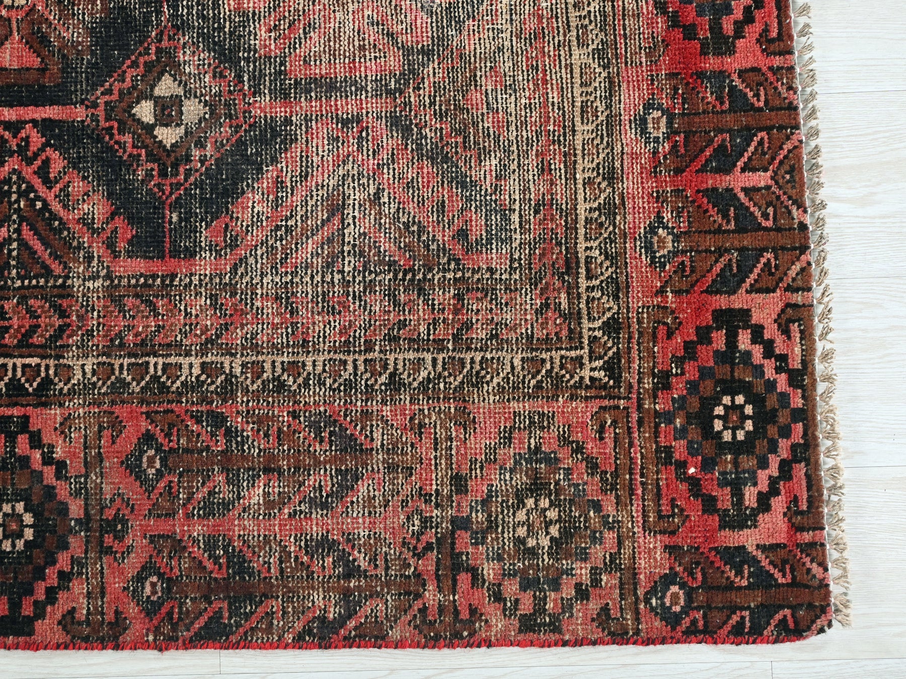This is a hand-knotted, one-of-a-kind vintage rug. Due to the nature of this piece, there may be slight imperfections in its wear, shape, dimensions, and color. All of our rugs are professionally cleaned and repaired.