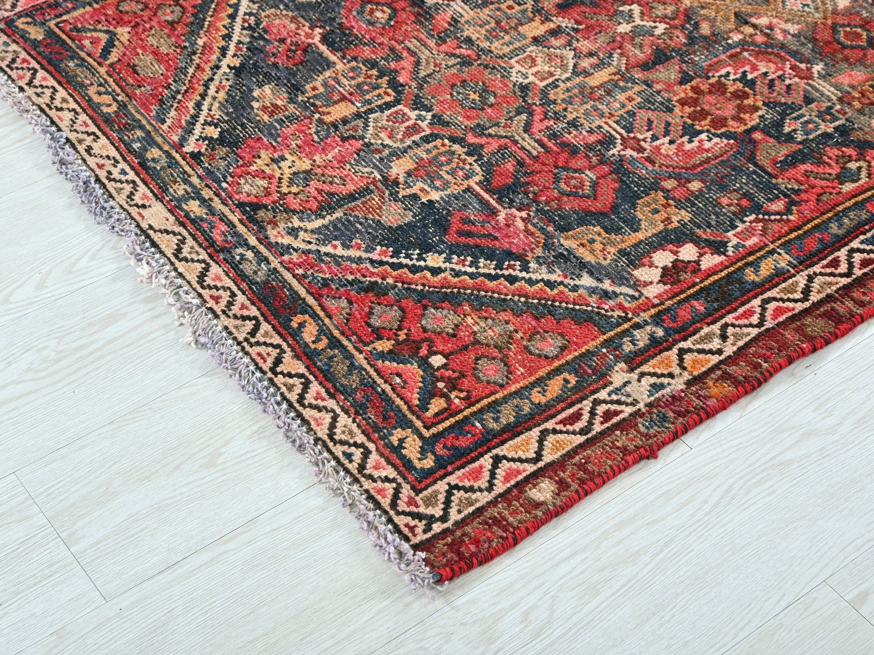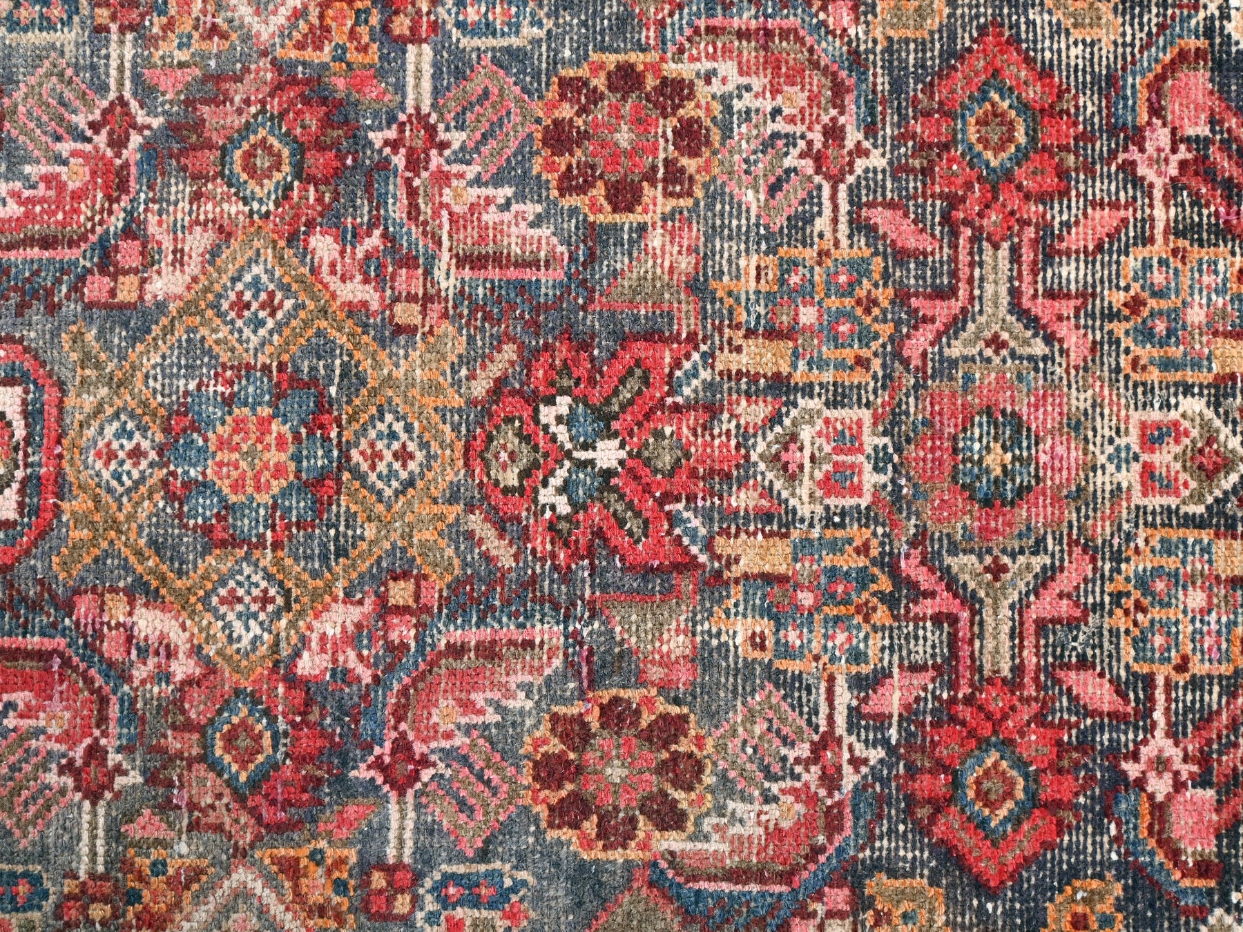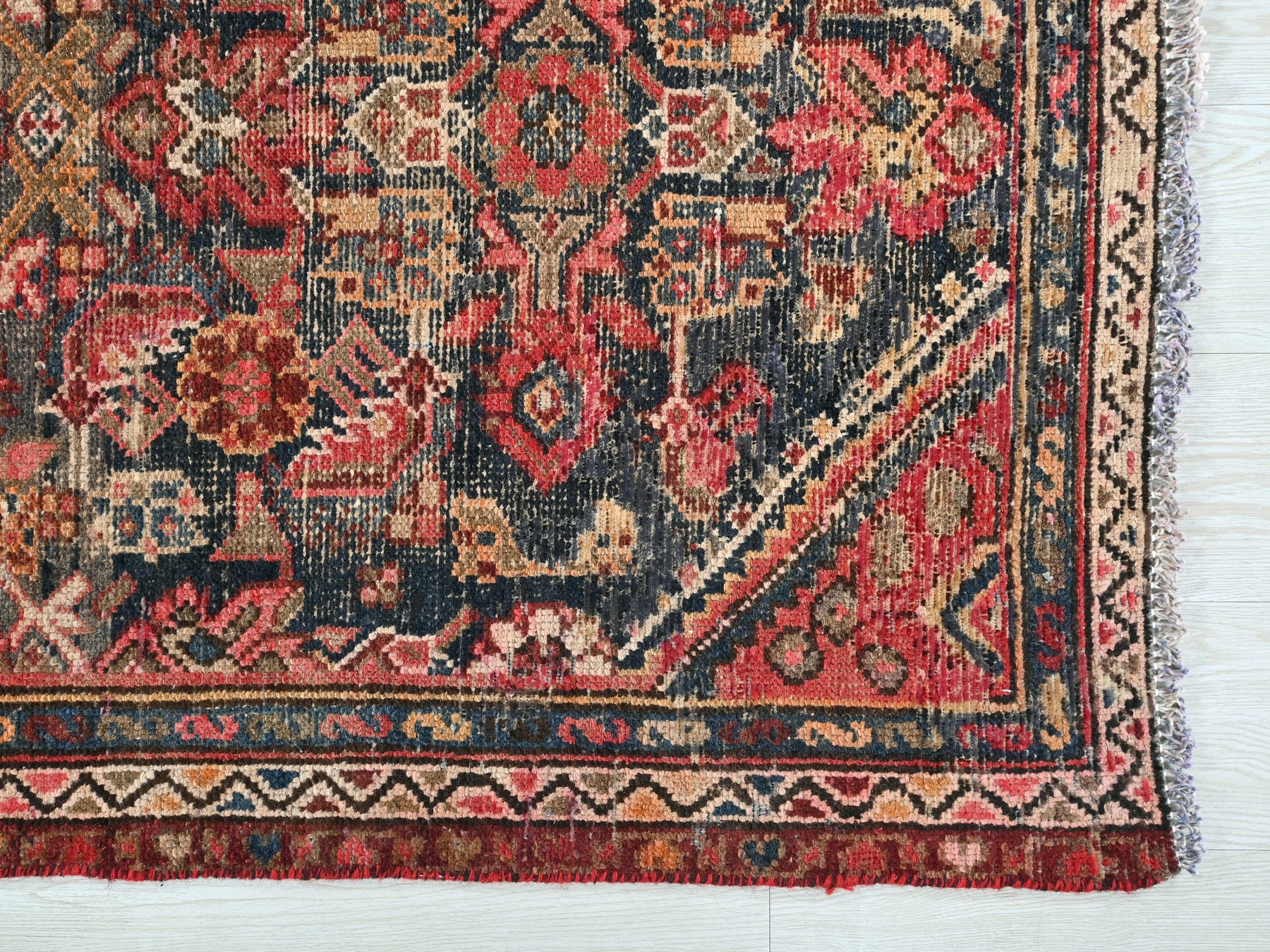 This is a hand-knotted, one-of-a-kind vintage rug. Due to the nature of this piece, there may be slight imperfections in its wear, shape, dimensions, and color. All of our rugs are professionally cleaned and repaired.