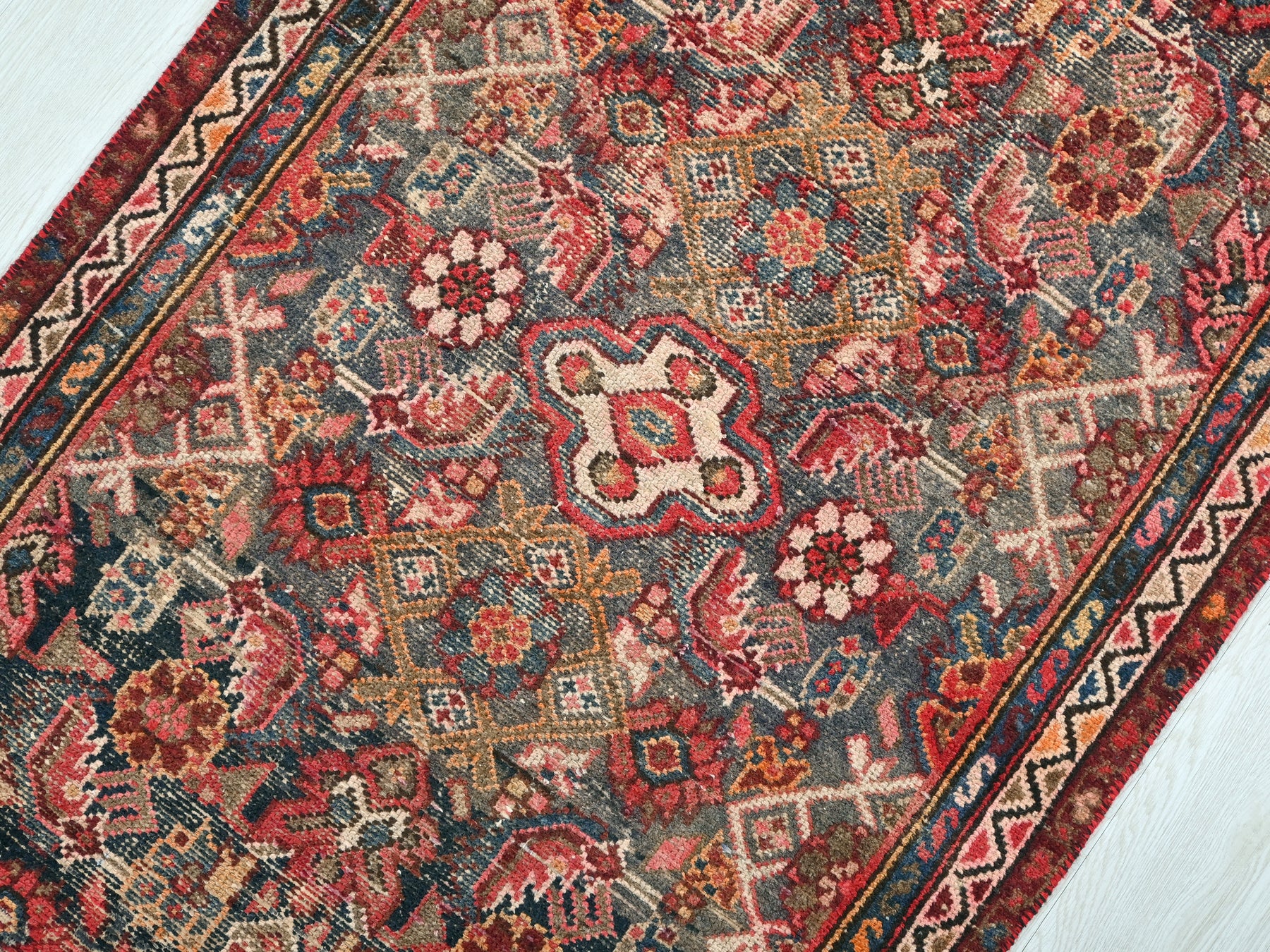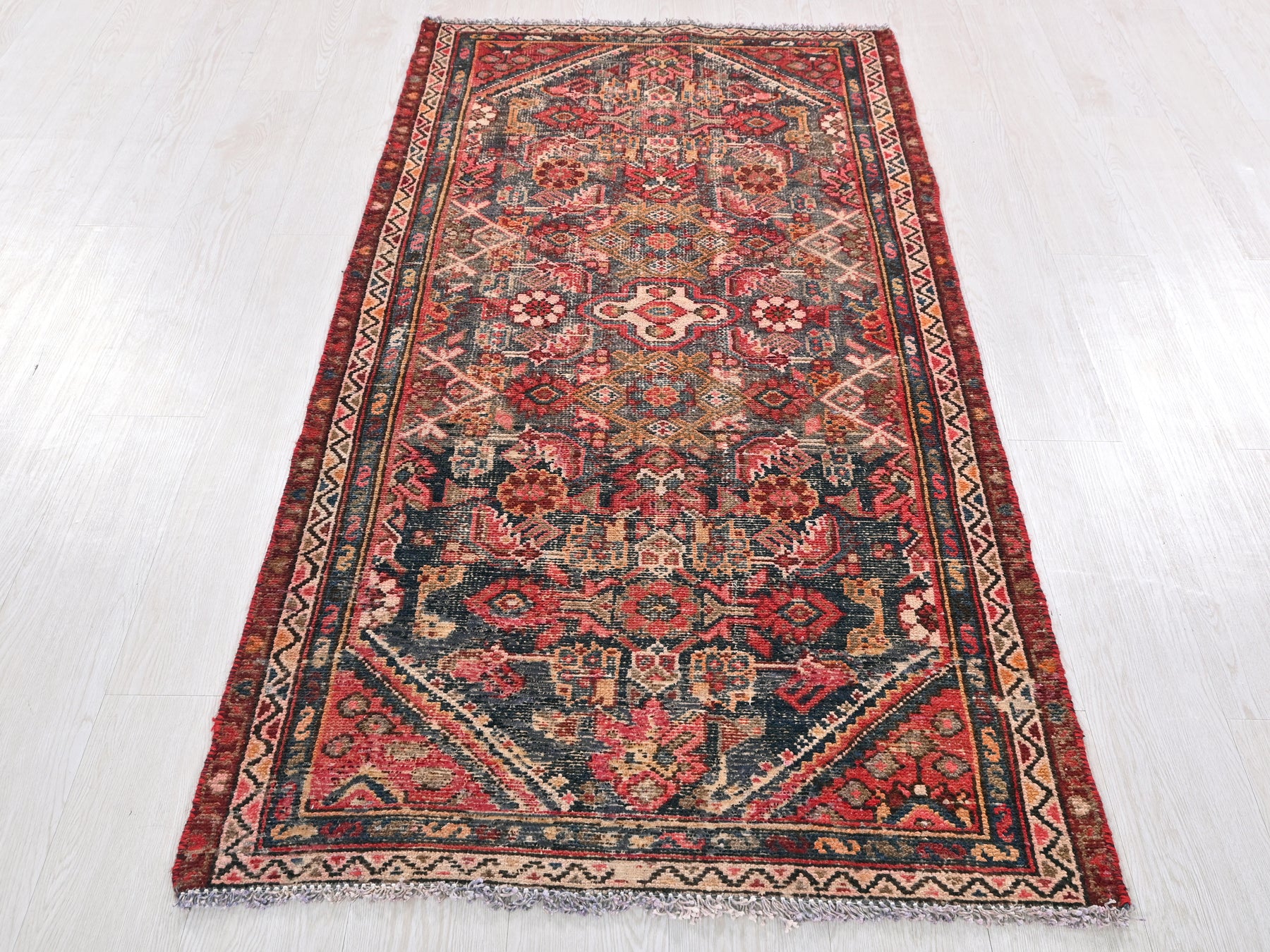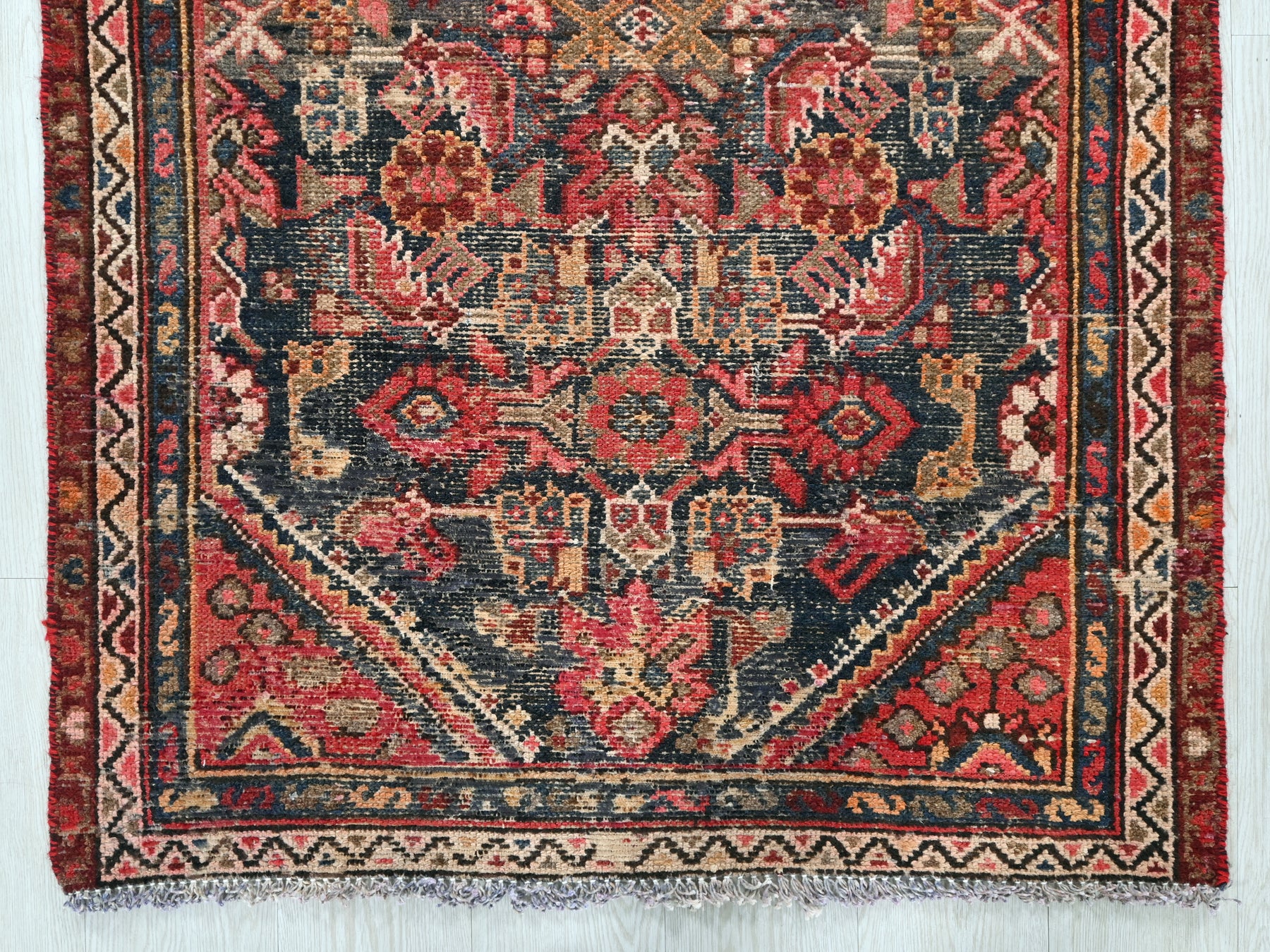 This is a hand-knotted, one-of-a-kind vintage rug. Due to the nature of this piece, there may be slight imperfections in its wear, shape, dimensions, and color. All of our rugs are professionally cleaned and repaired.