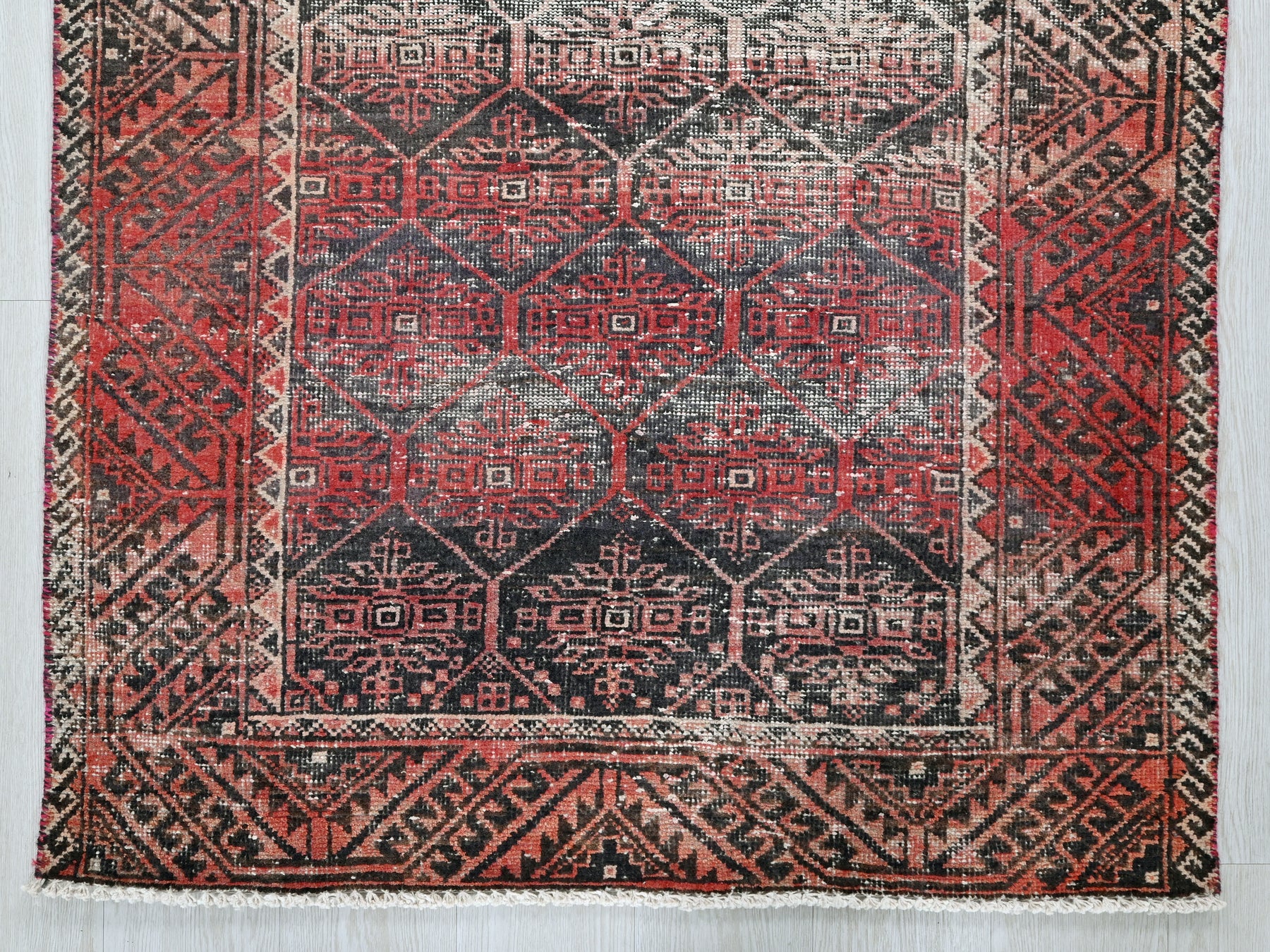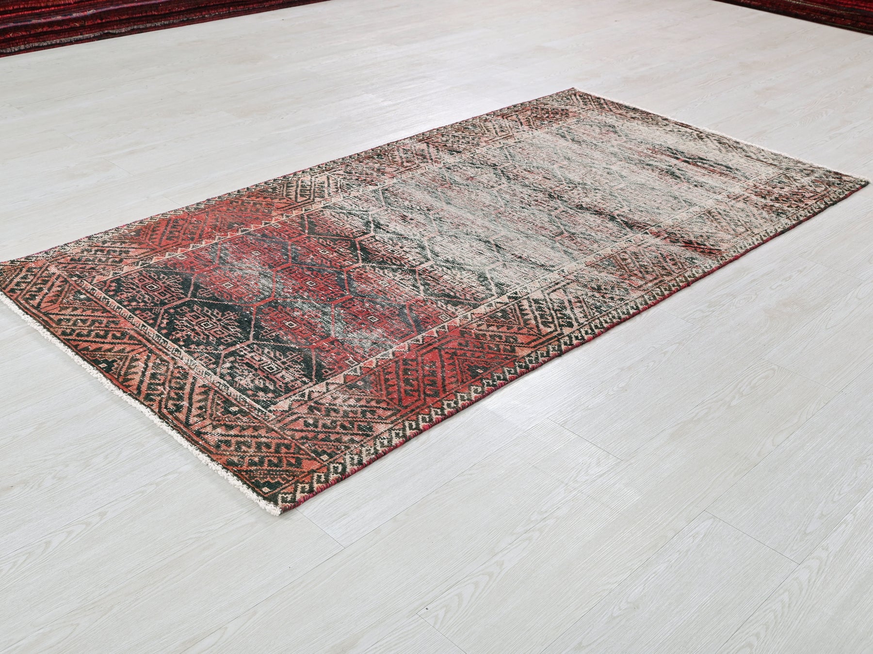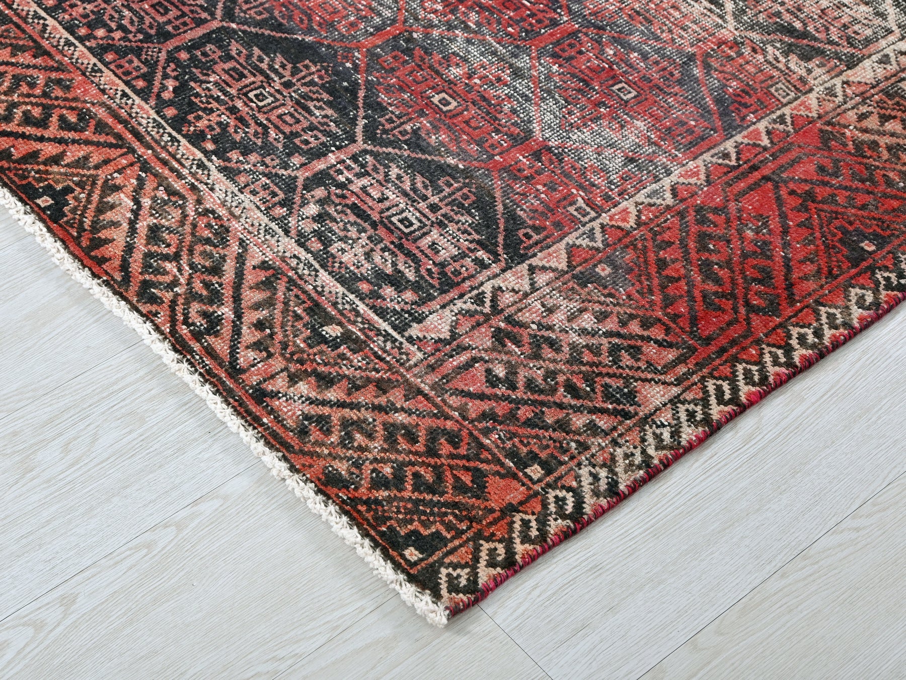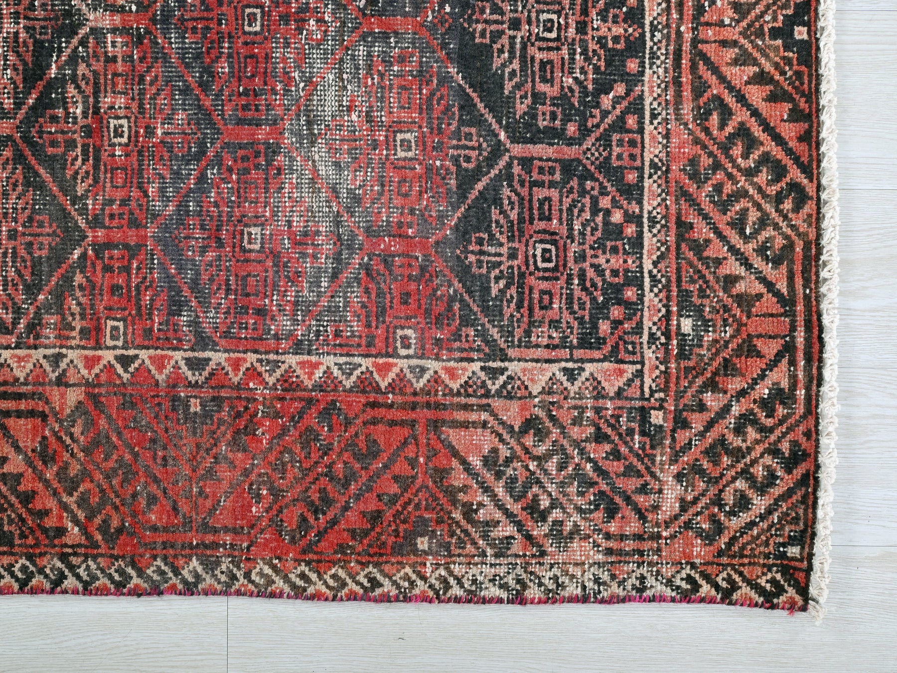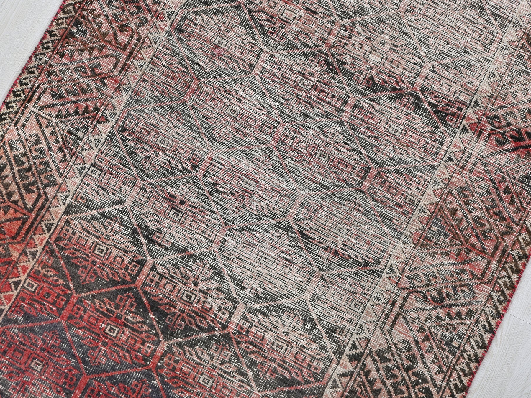 This is a hand-knotted, one-of-a-kind vintage rug. Due to the nature of this piece, there may be slight imperfections in its wear, shape, dimensions, and color. All of our rugs are professionally cleaned and repaired.