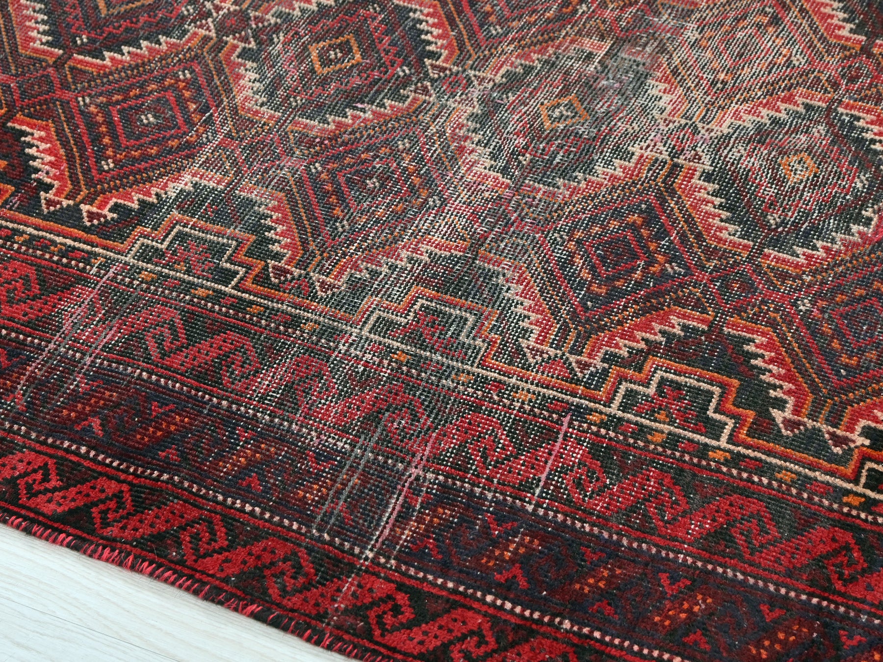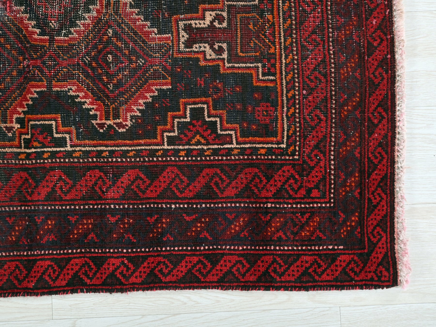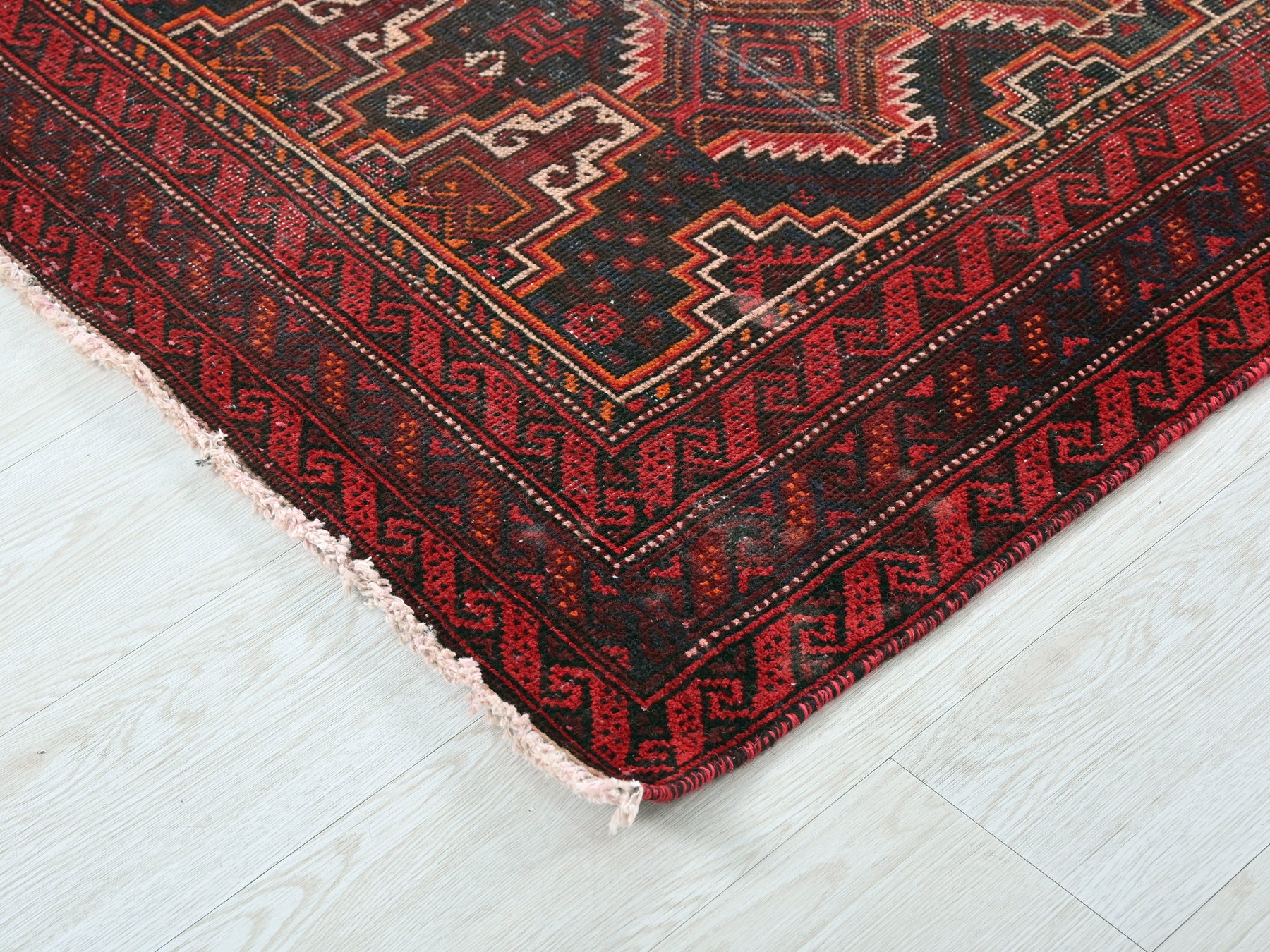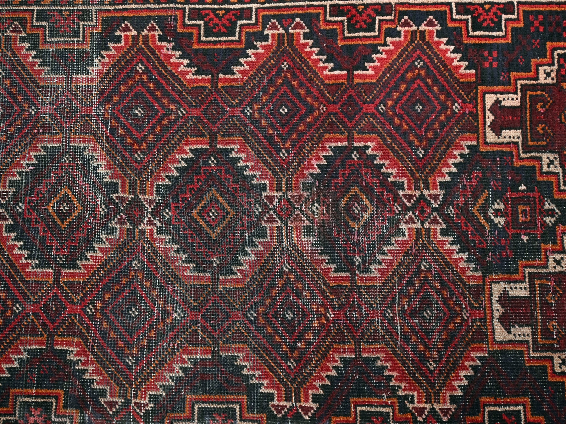 This is a hand-knotted, one-of-a-kind vintage rug. Due to the nature of this piece, there may be slight imperfections in its wear, shape, dimensions, and color. All of our rugs are professionally cleaned and repaired.
