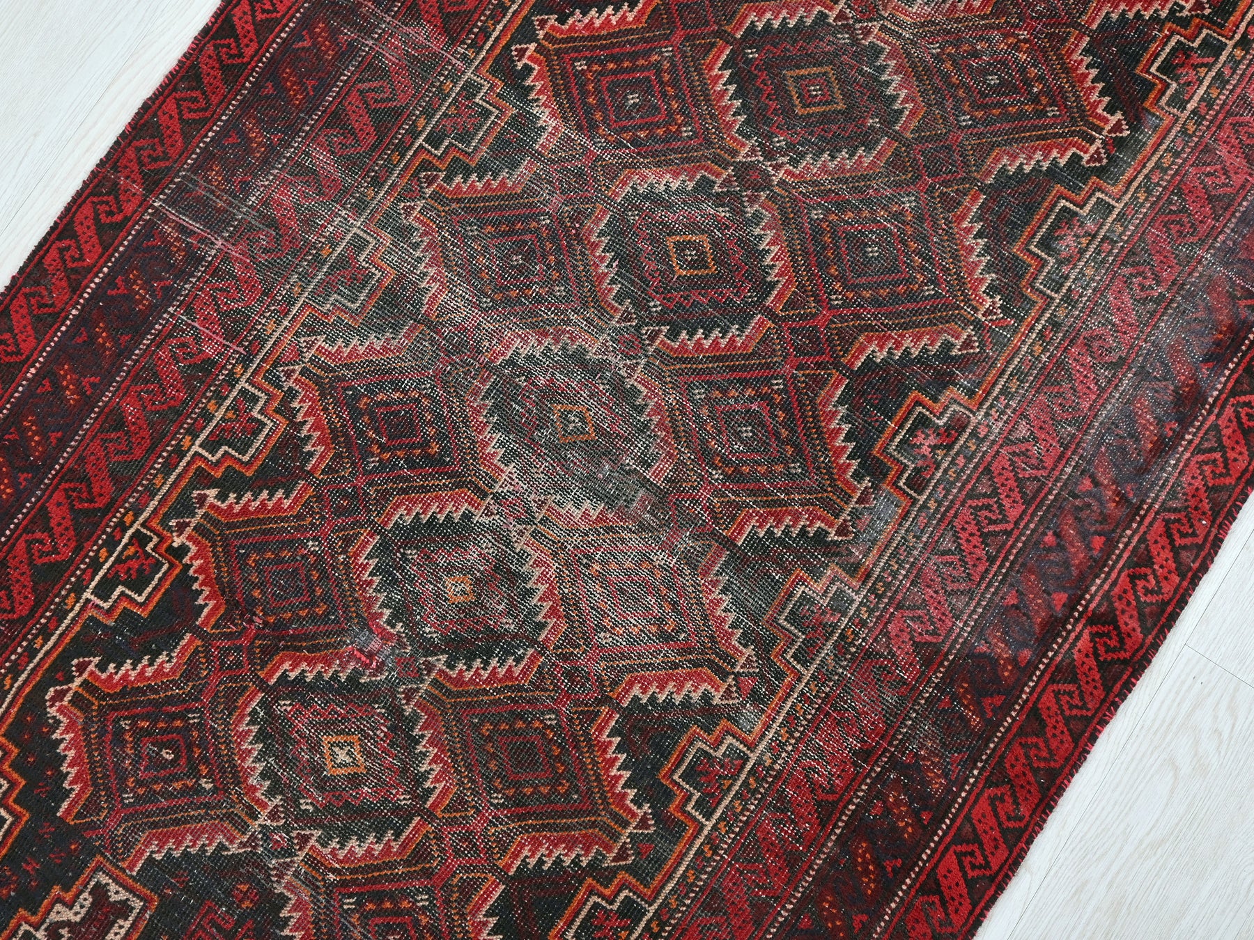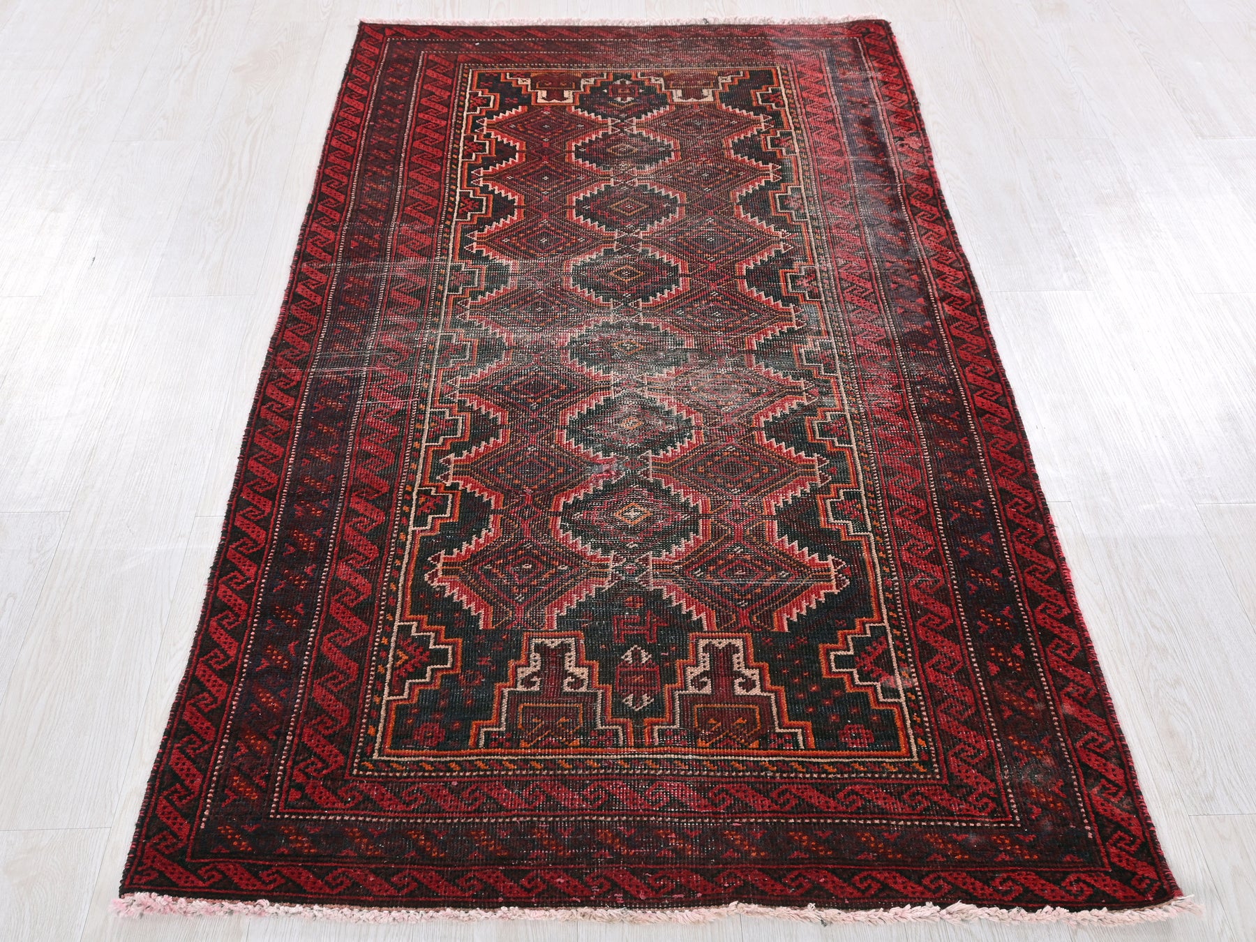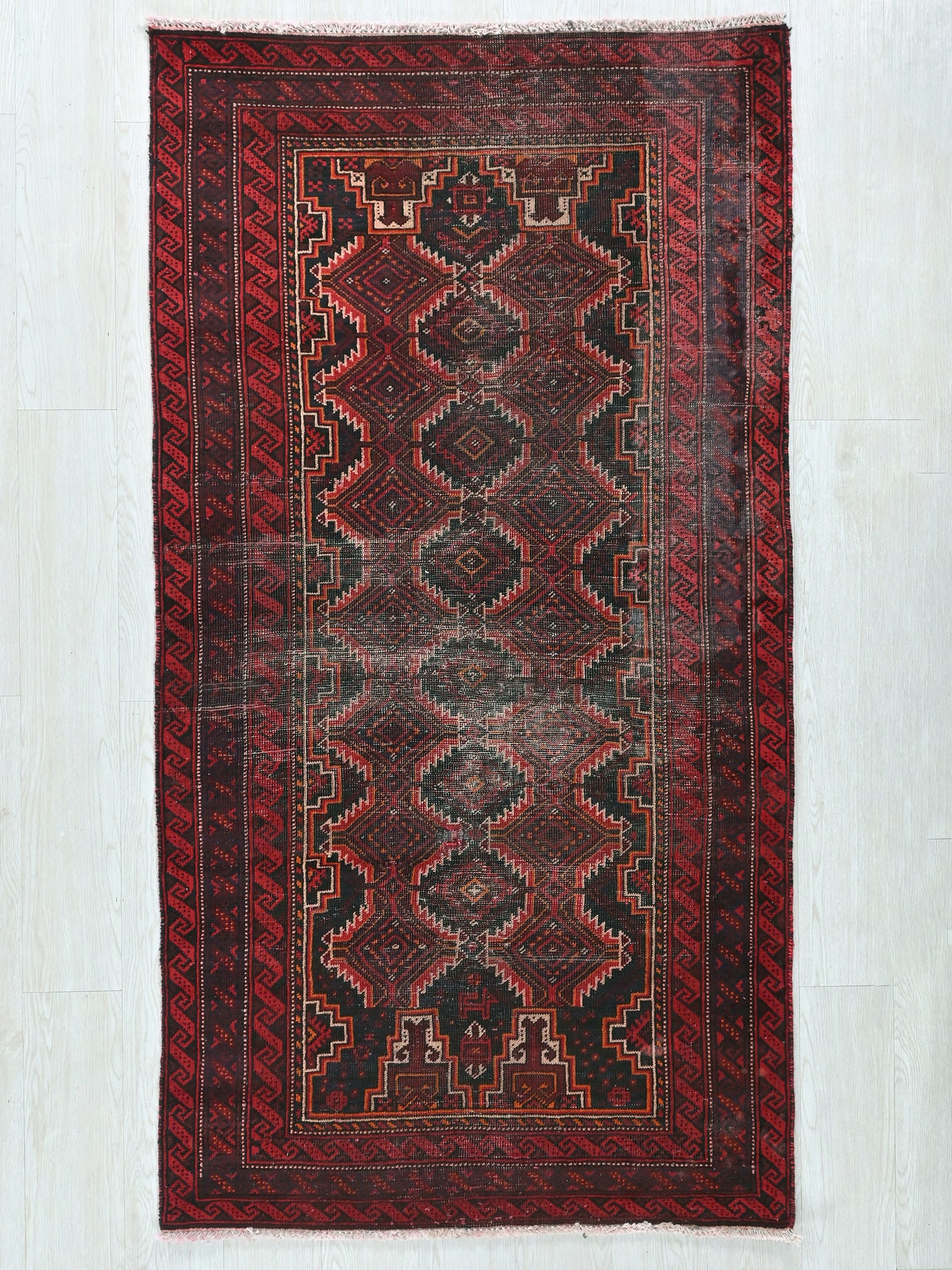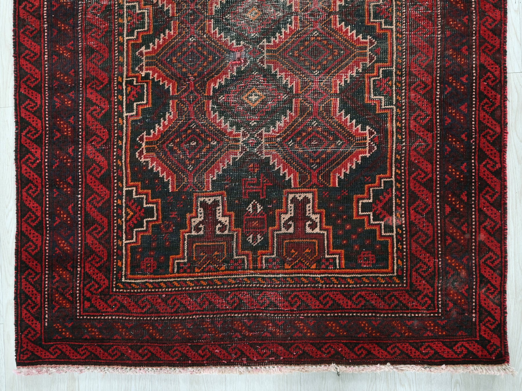 This is a hand-knotted, one-of-a-kind vintage rug. Due to the nature of this piece, there may be slight imperfections in its wear, shape, dimensions, and color. All of our rugs are professionally cleaned and repaired.