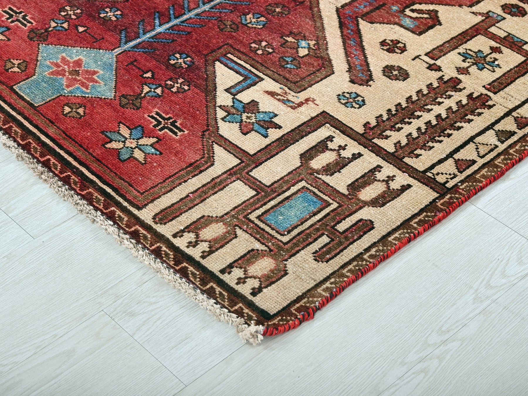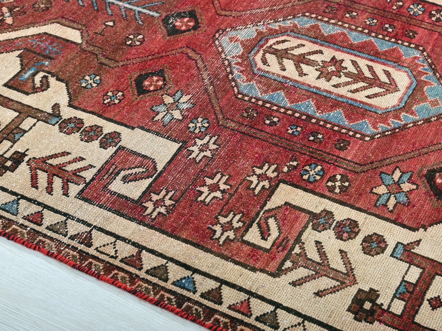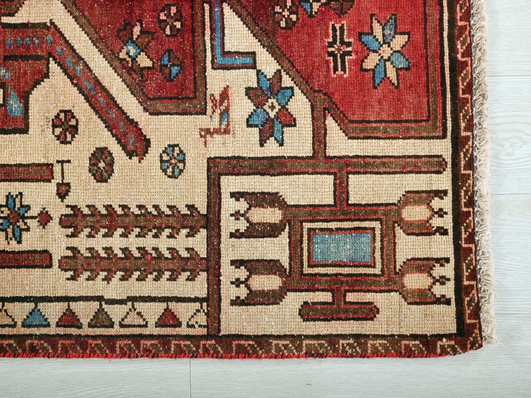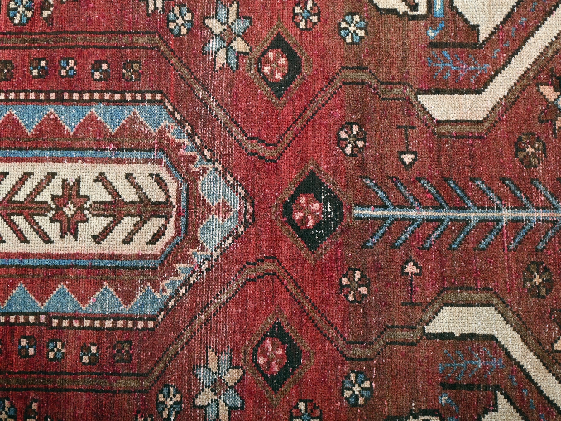 This is a hand-knotted, one-of-a-kind vintage rug. Due to the nature of this piece, there may be slight imperfections in its wear, shape, dimensions, and color. All of our rugs are professionally cleaned and repaired.