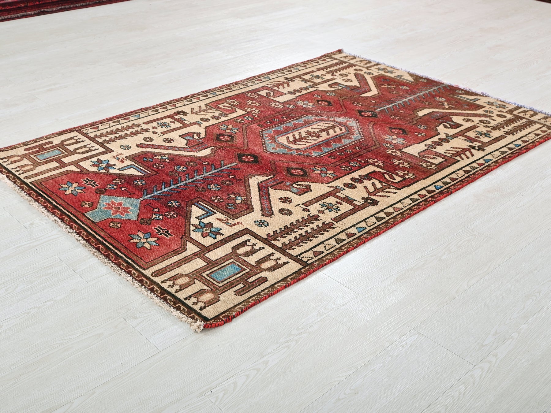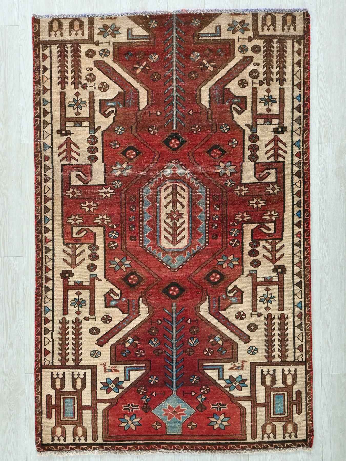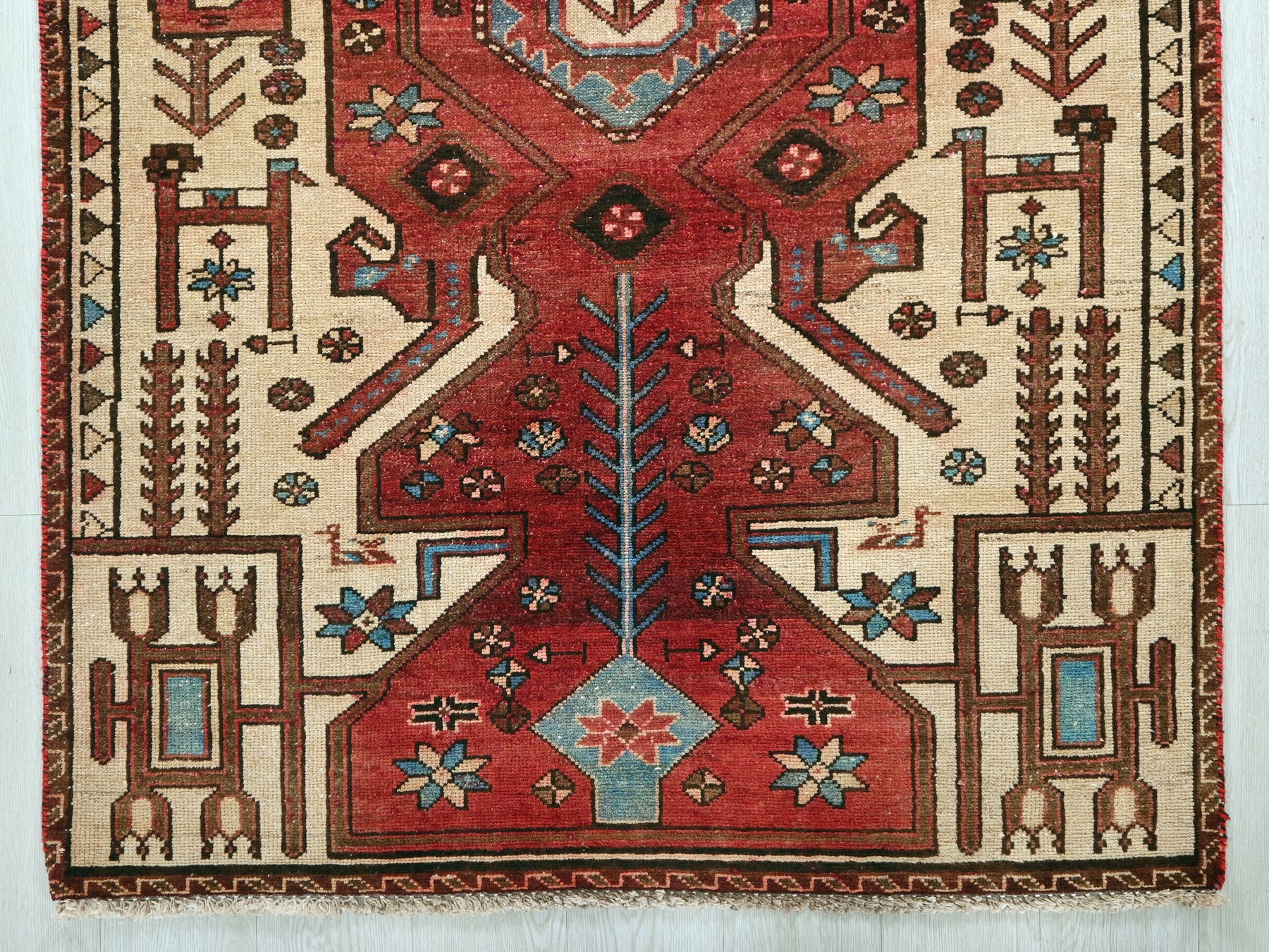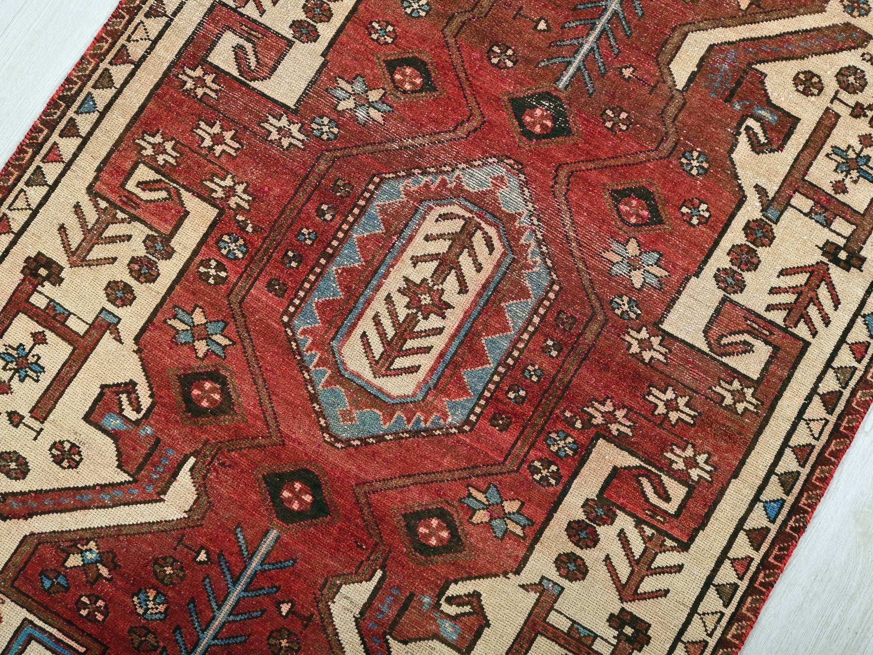 This is a hand-knotted, one-of-a-kind vintage rug. Due to the nature of this piece, there may be slight imperfections in its wear, shape, dimensions, and color. All of our rugs are professionally cleaned and repaired.