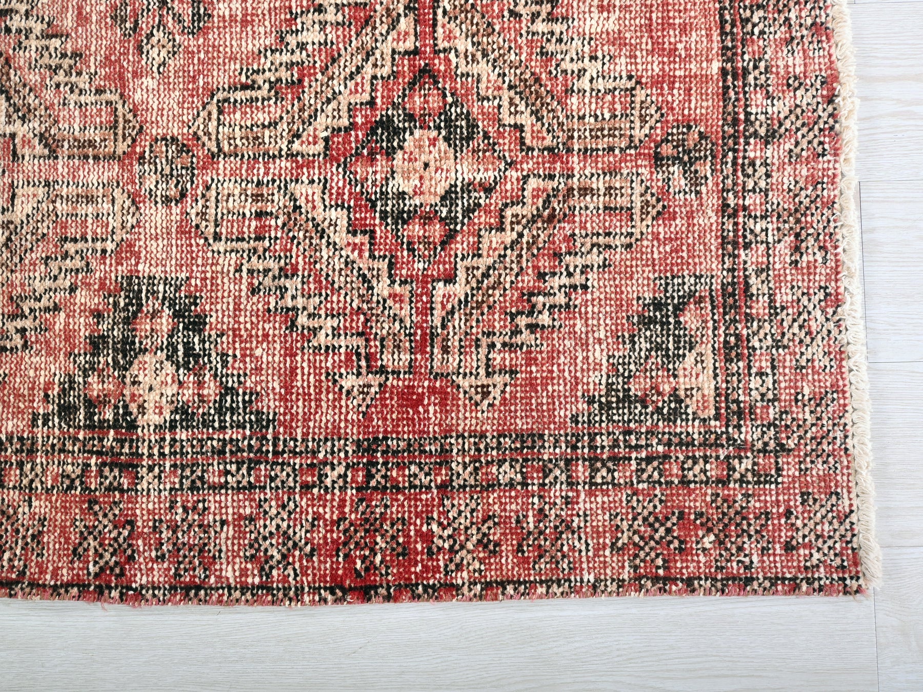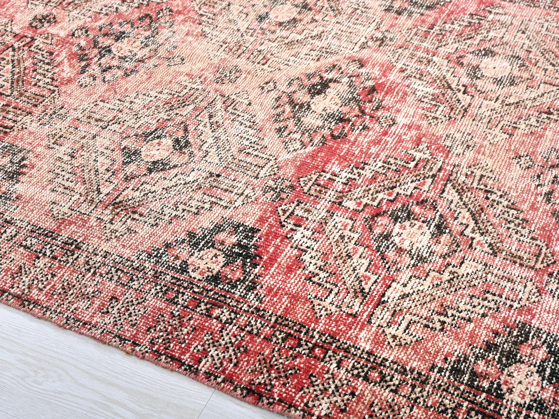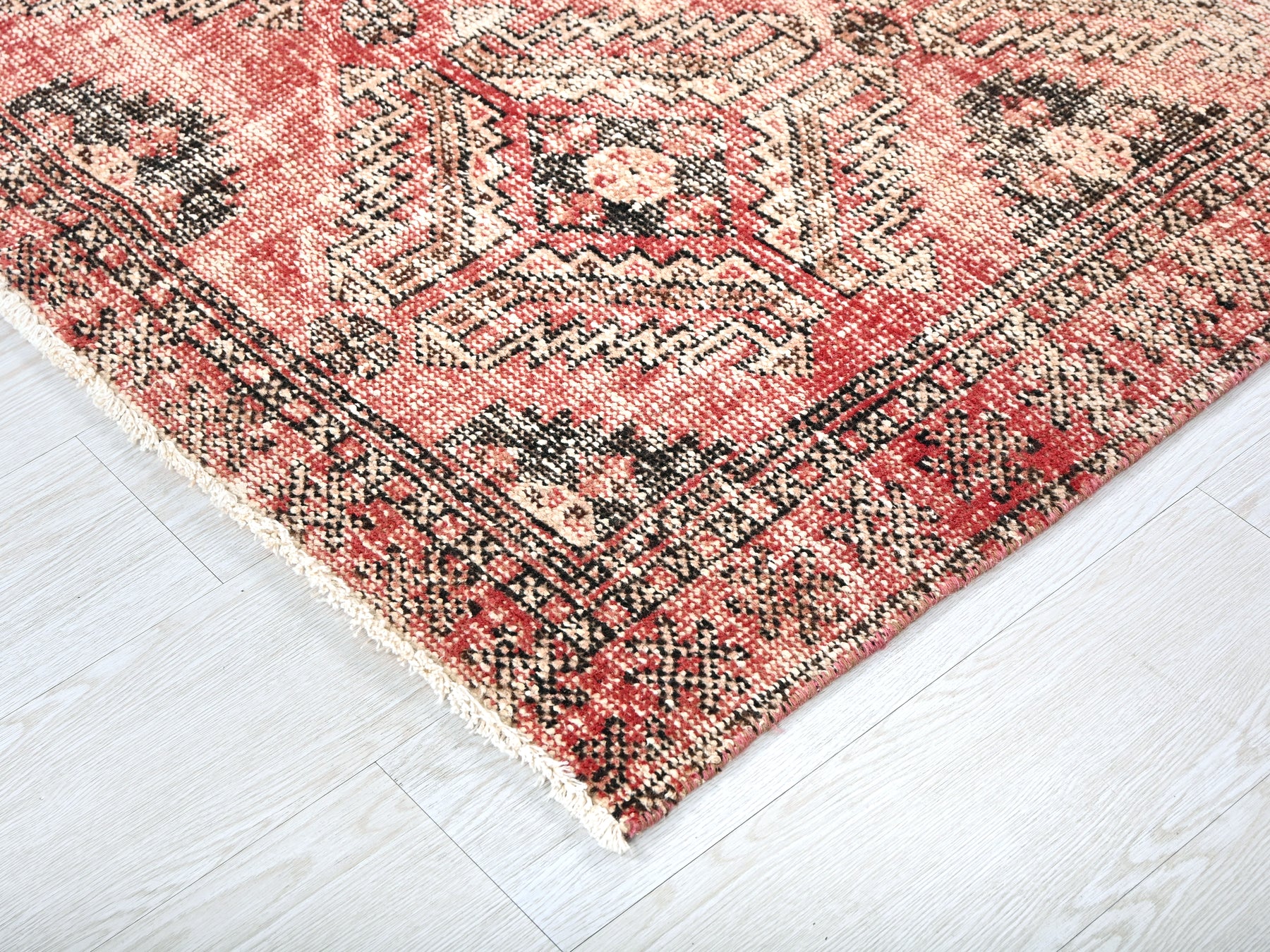 This is a hand-knotted, one-of-a-kind vintage rug. Due to the nature of this piece, there may be slight imperfections in its wear, shape, dimensions, and color. All of our rugs are professionally cleaned and repaired.