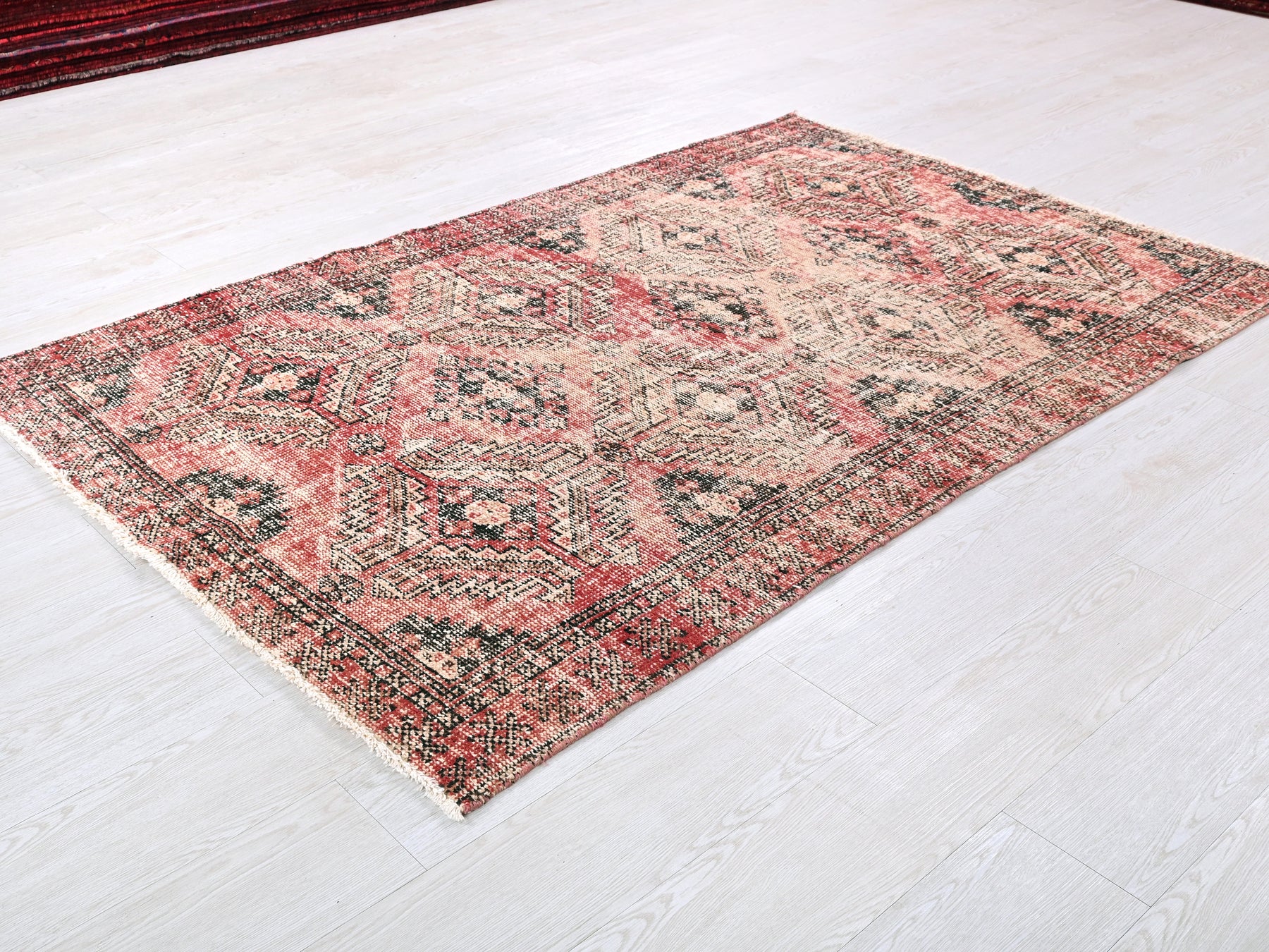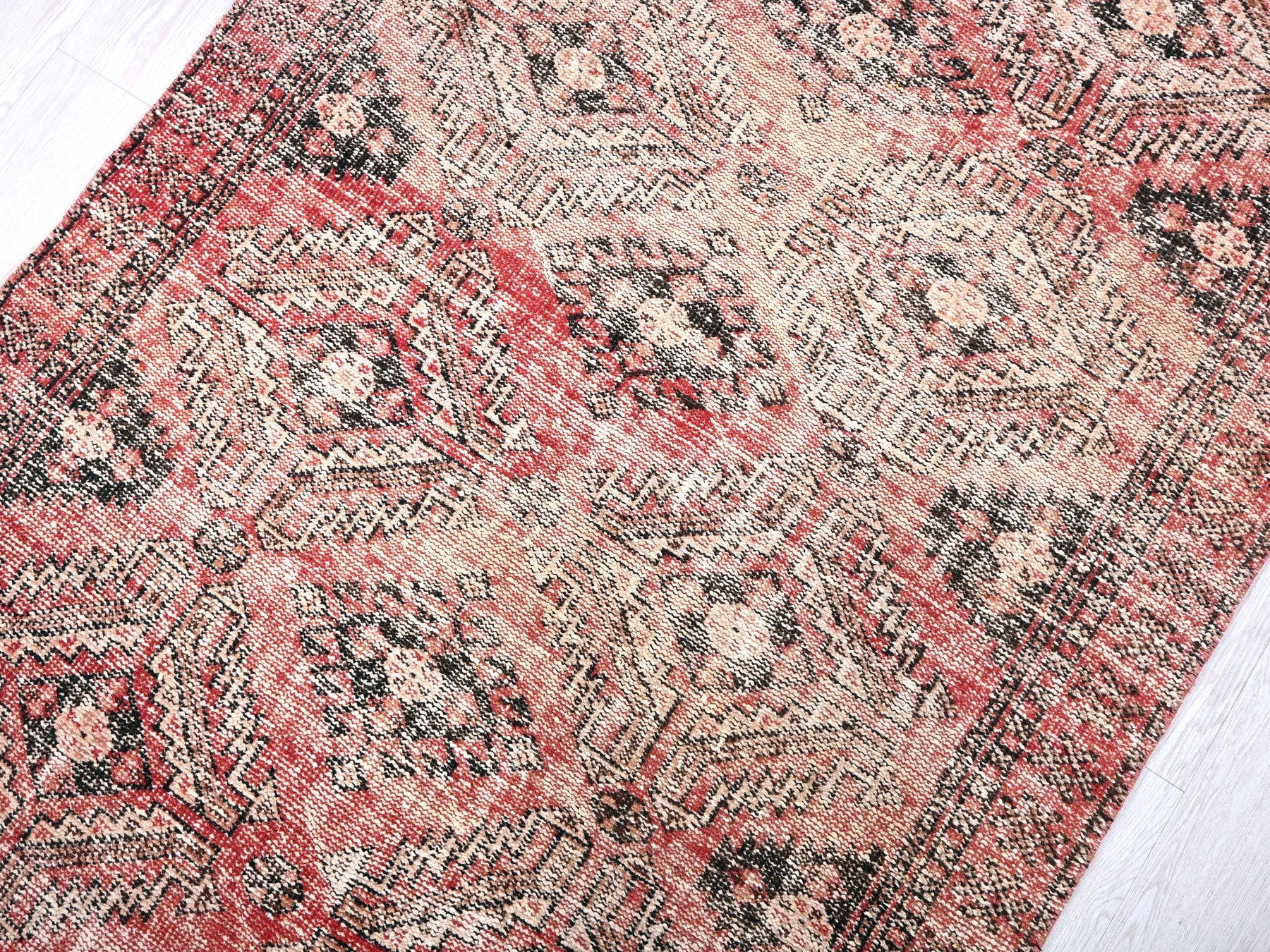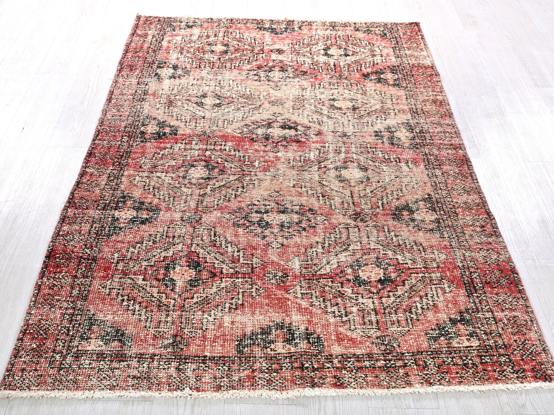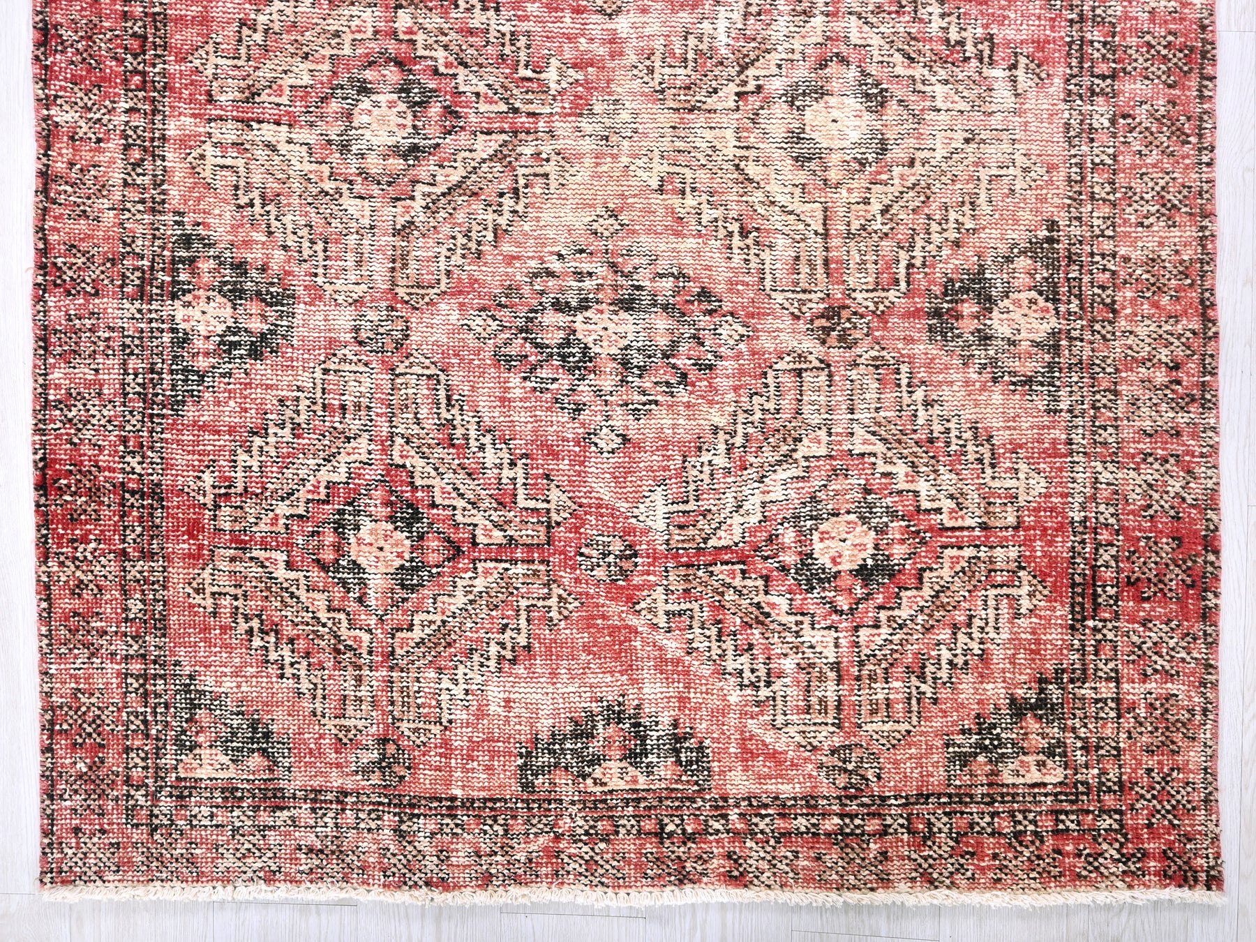 This is a hand-knotted, one-of-a-kind vintage rug. Due to the nature of this piece, there may be slight imperfections in its wear, shape, dimensions, and color. All of our rugs are professionally cleaned and repaired.