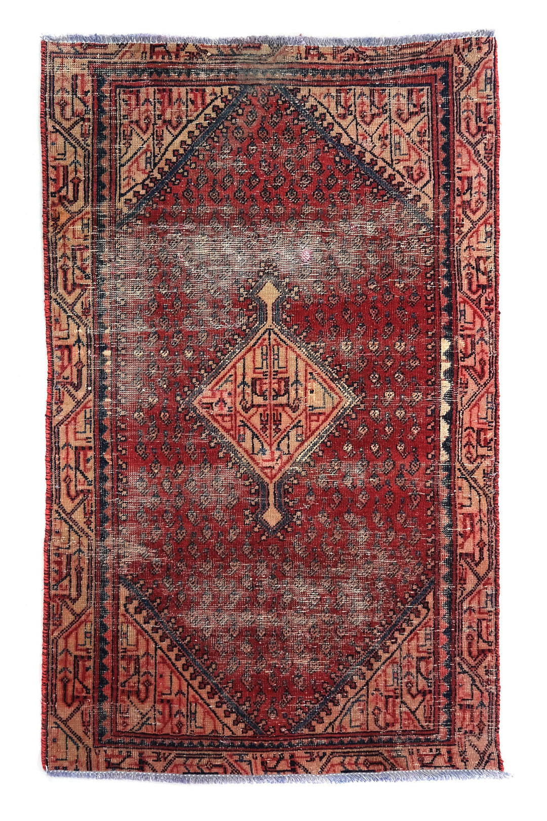 This is a hand-knotted, one-of-a-kind vintage rug. Due to the nature of this piece, there may be slight imperfections in its wear, shape, dimensions, and color. All of our rugs are professionally cleaned and repaired.
