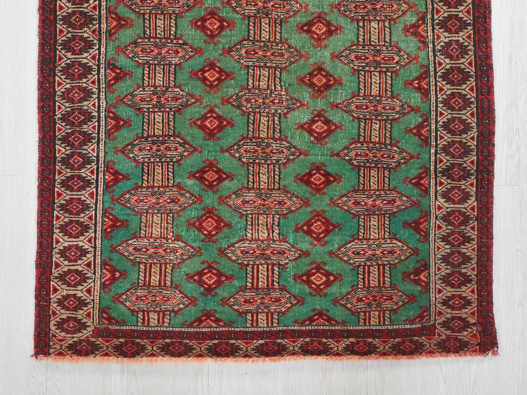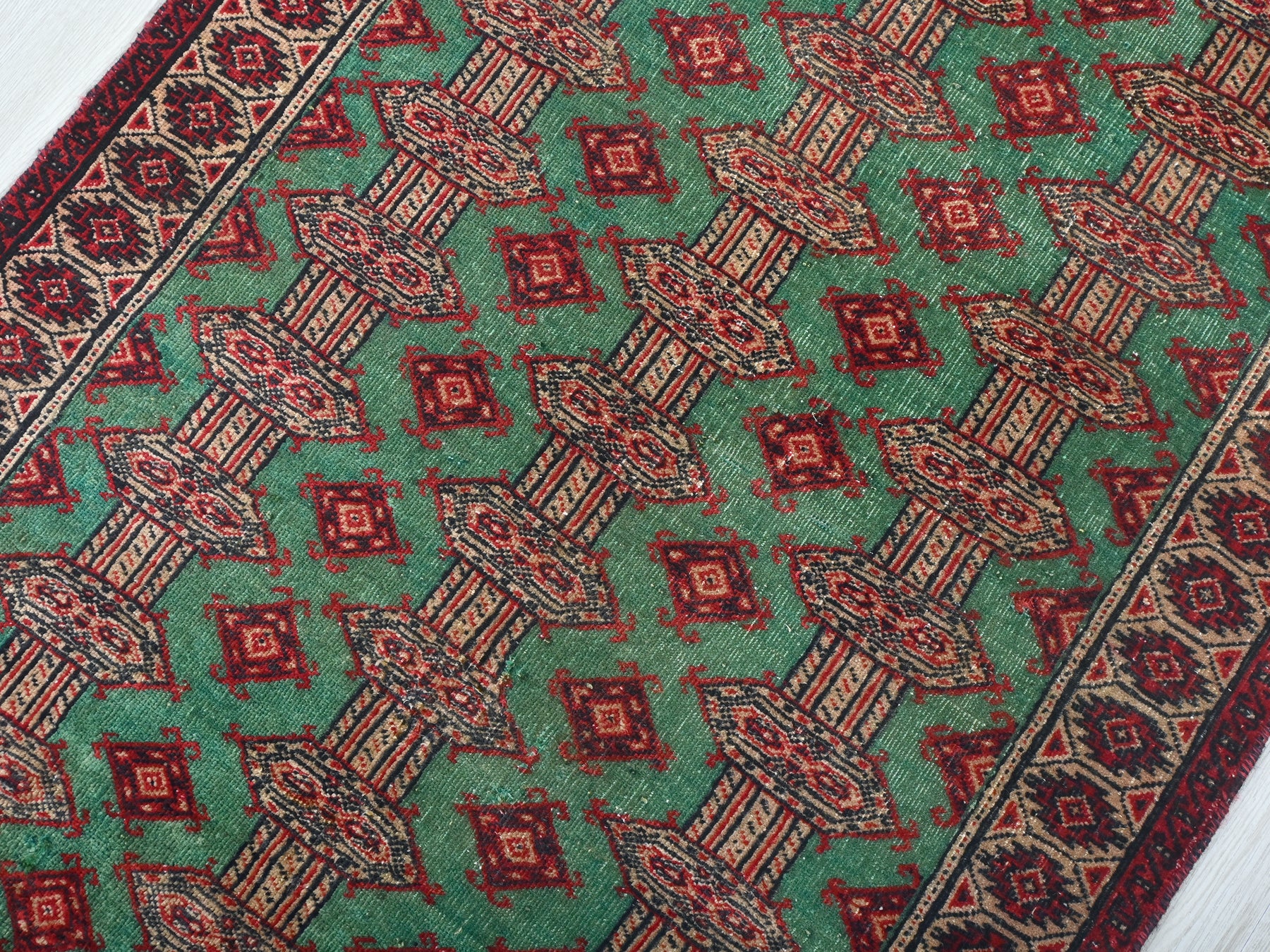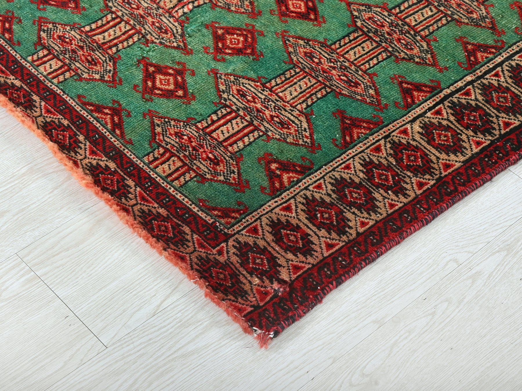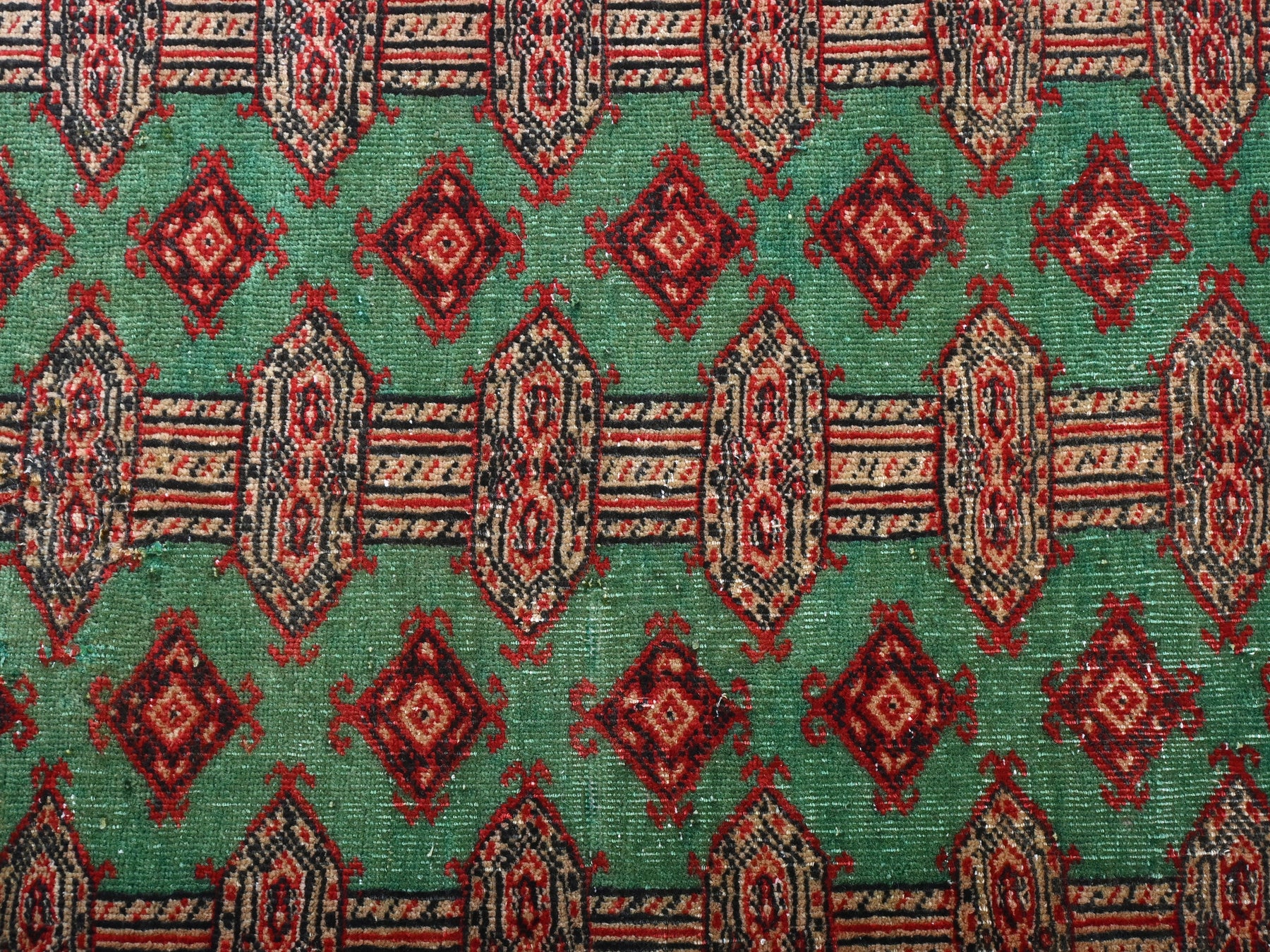 This is a hand-knotted, one-of-a-kind vintage rug. Due to the nature of this piece, there may be slight imperfections in its wear, shape, dimensions, and color. All of our rugs are professionally cleaned and repaired.