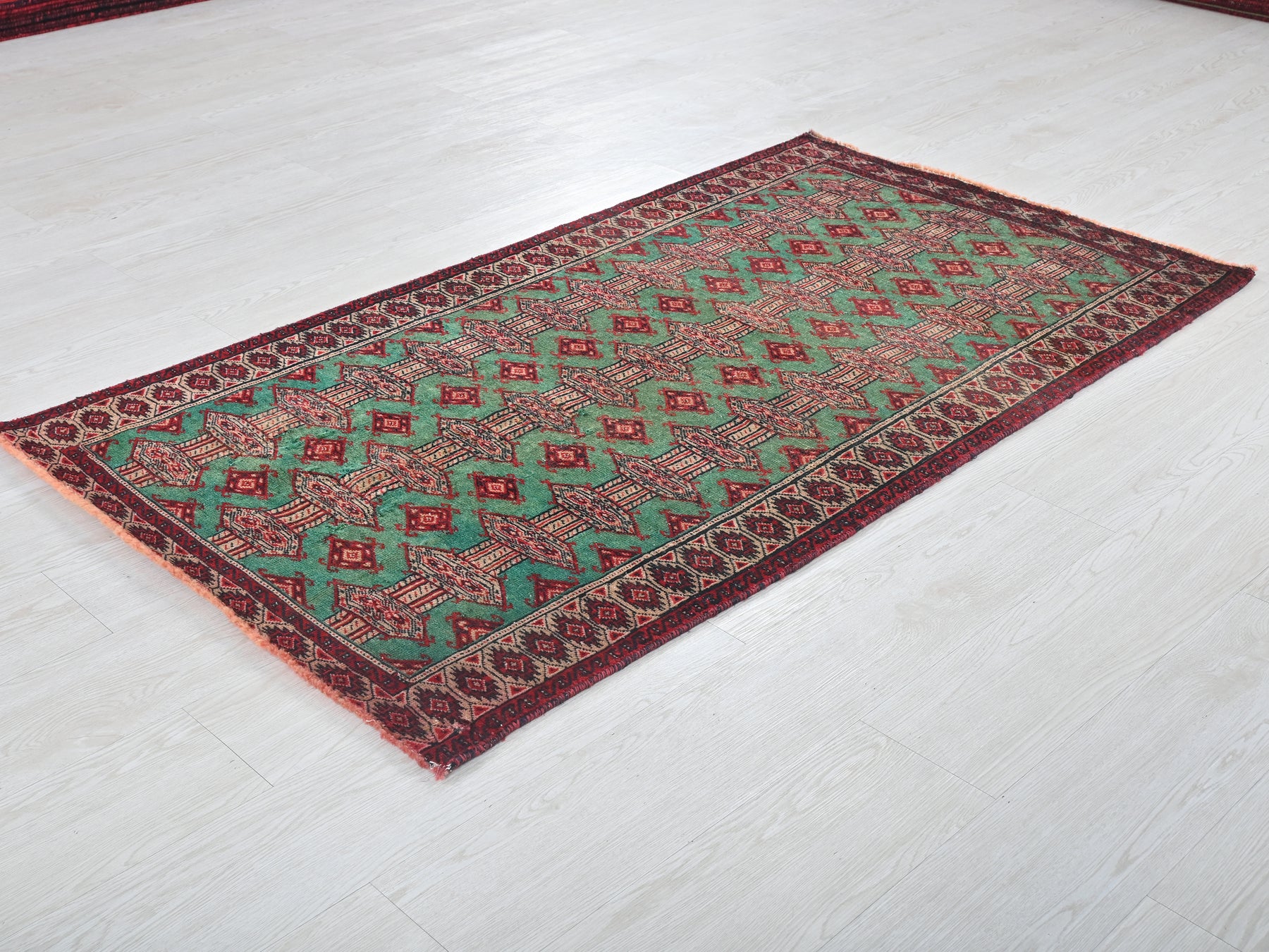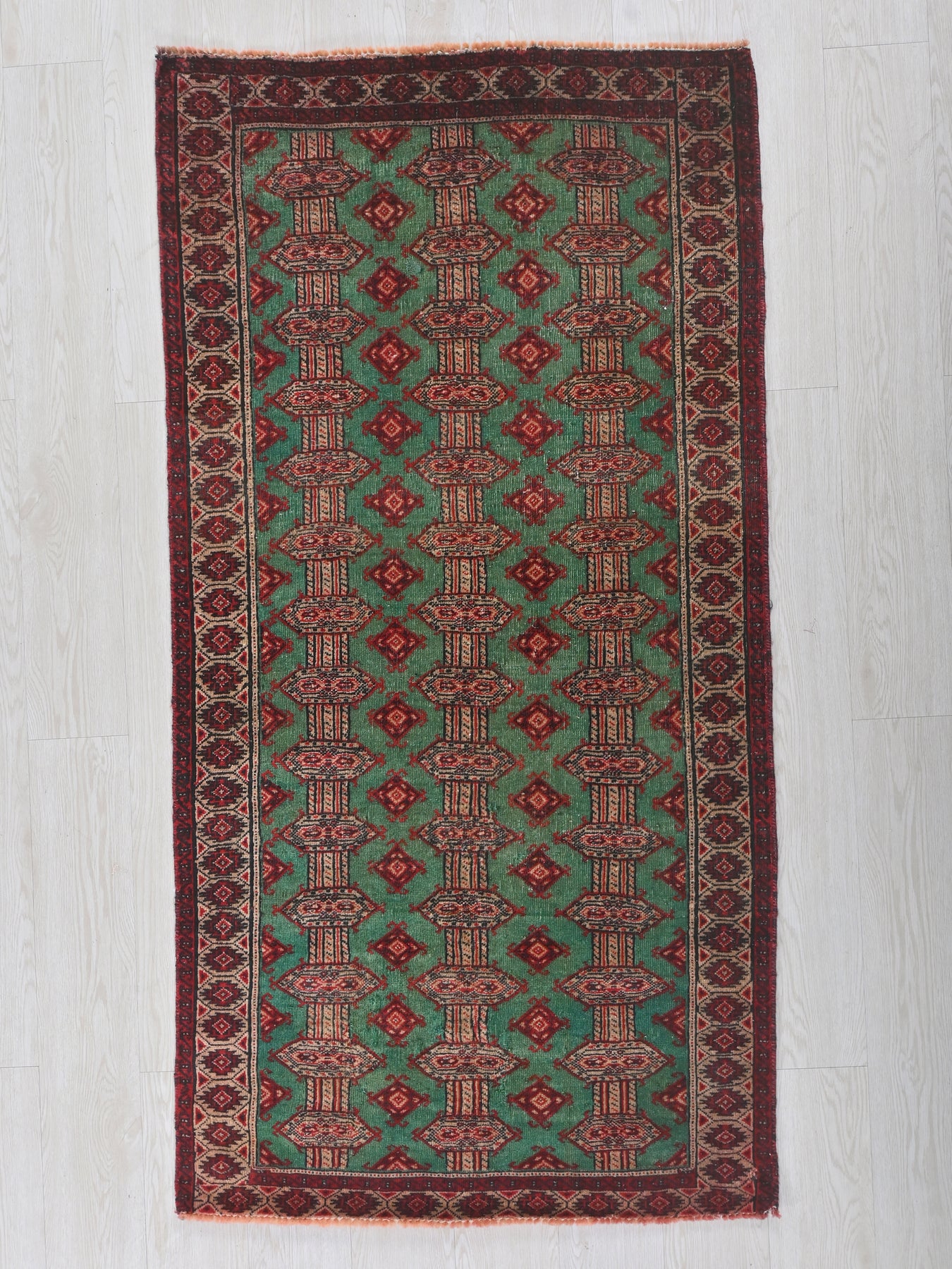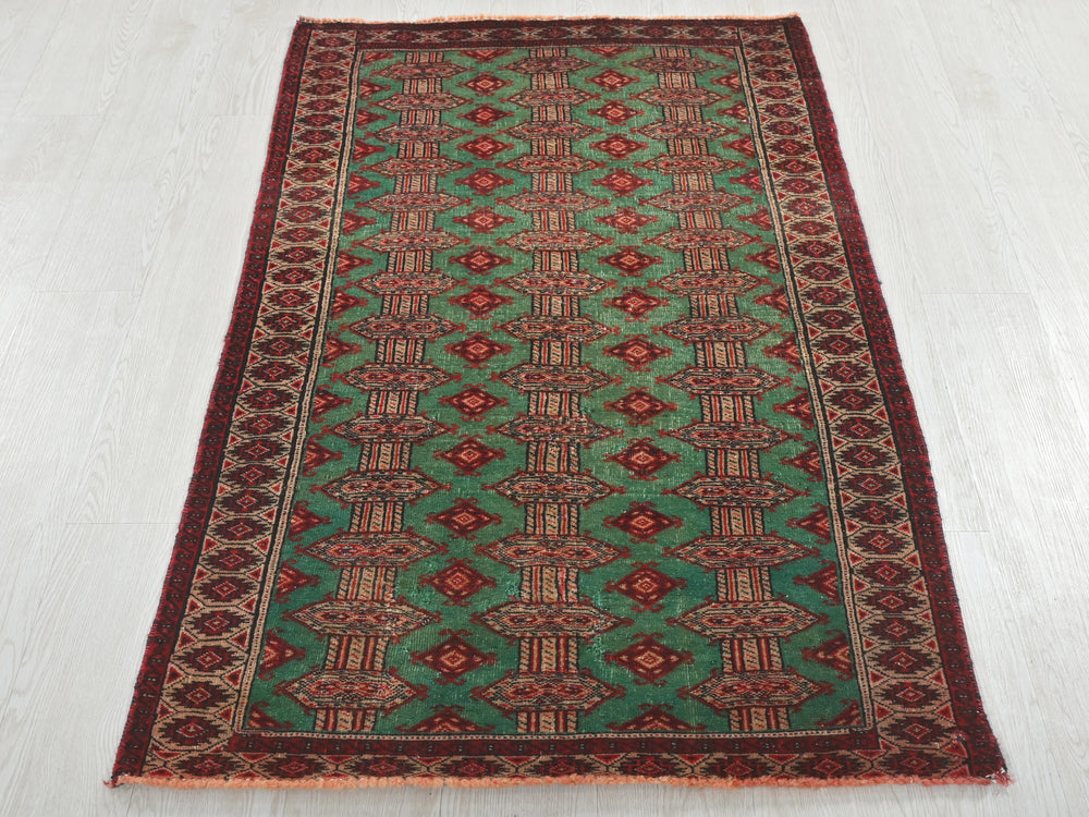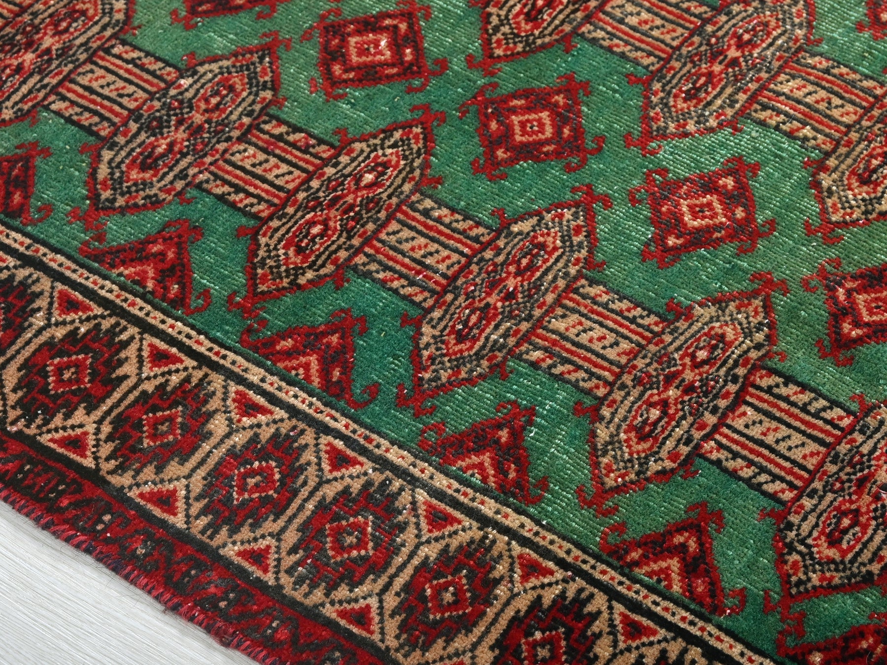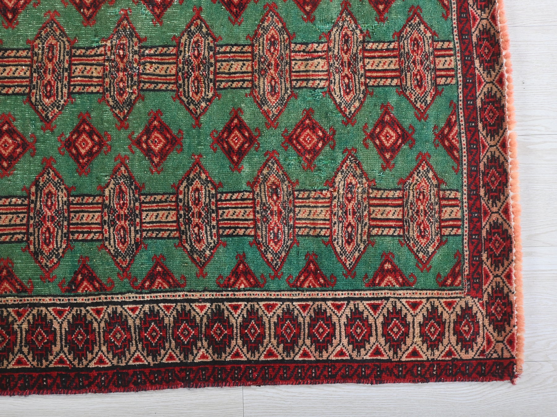 This is a hand-knotted, one-of-a-kind vintage rug. Due to the nature of this piece, there may be slight imperfections in its wear, shape, dimensions, and color. All of our rugs are professionally cleaned and repaired.