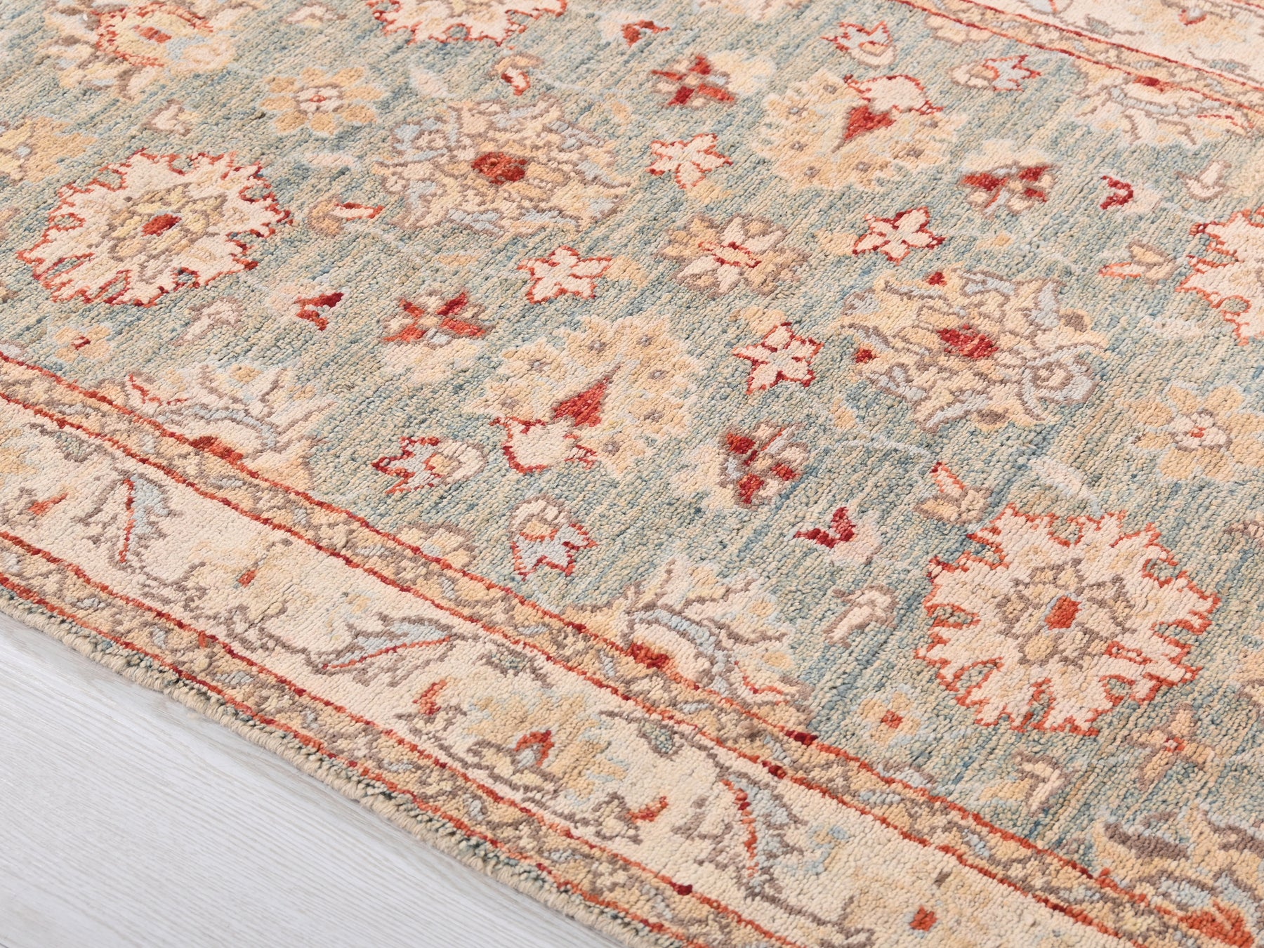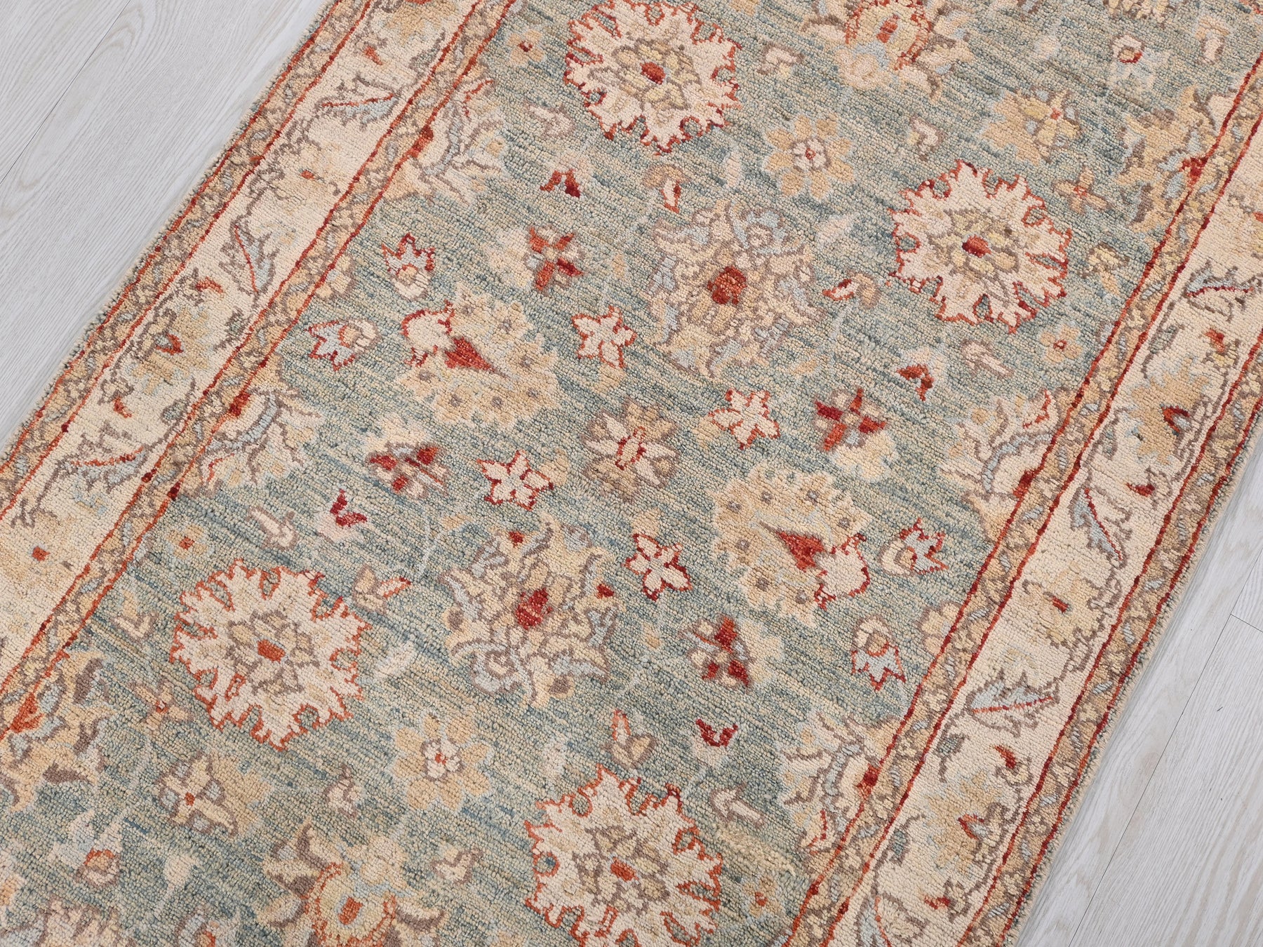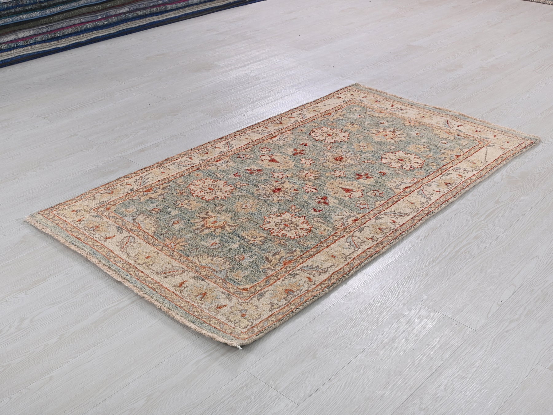 This is a hand-knotted, one-of-a-kind vintage rug. Due to the nature of this piece, there may be slight imperfections in its wear, shape, dimensions, and color. All of our rugs are professionally cleaned and repaired.