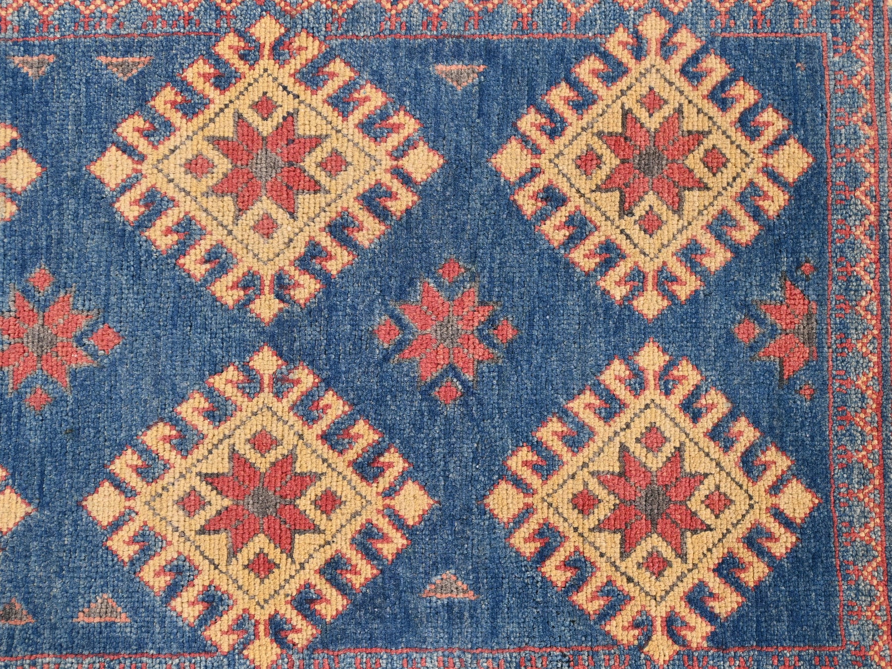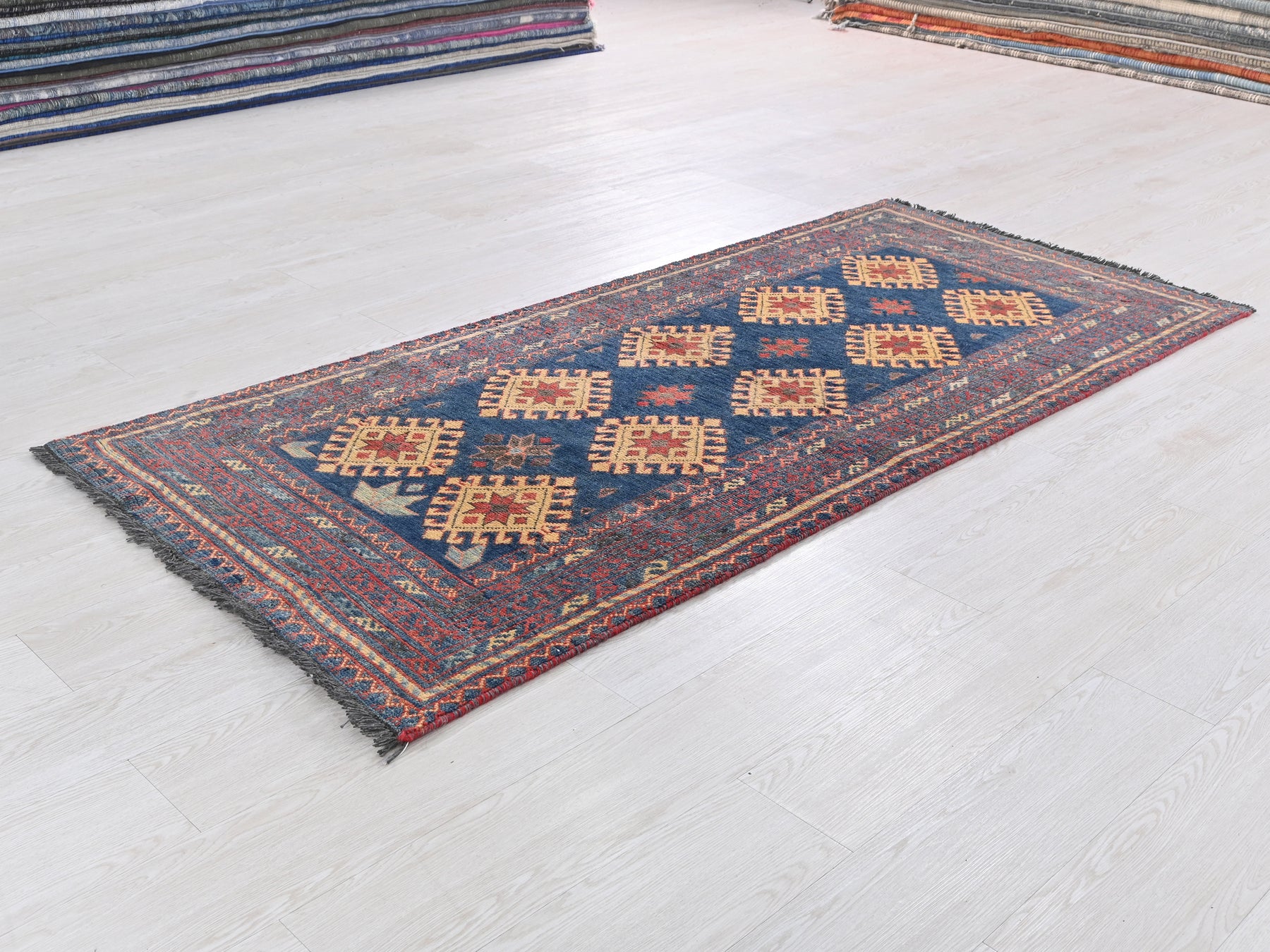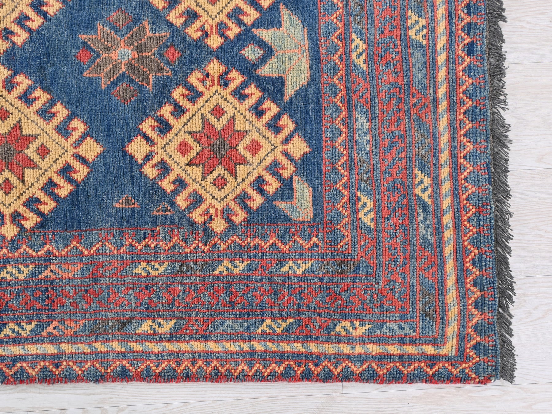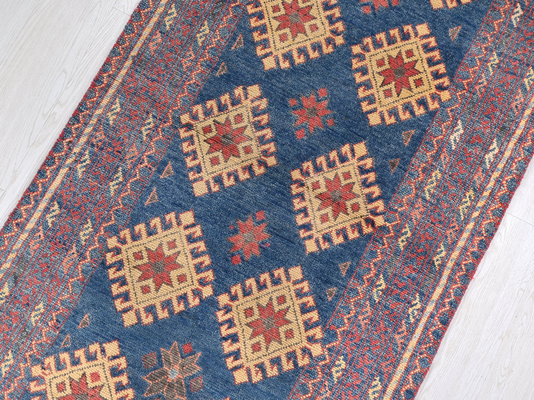 This is a hand-knotted, one-of-a-kind vintage rug. Due to the nature of this piece, there may be slight imperfections in its wear, shape, dimensions, and color. All of our rugs are professionally cleaned and repaired.