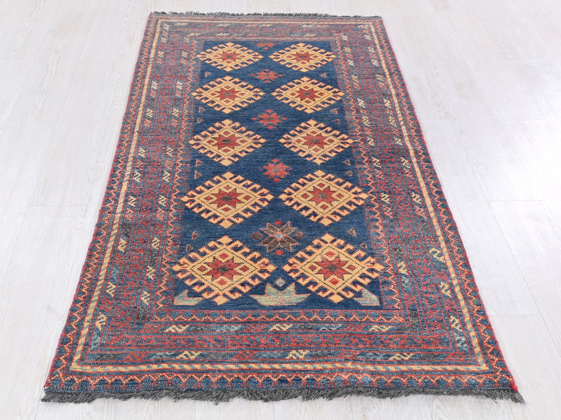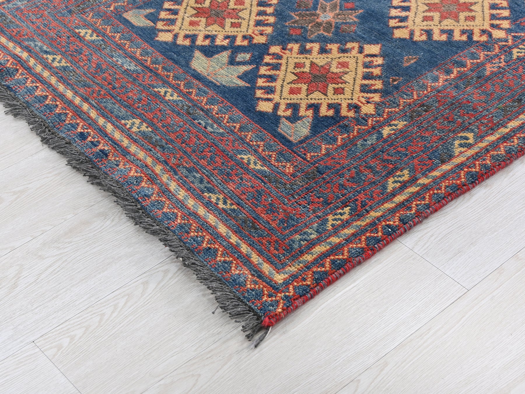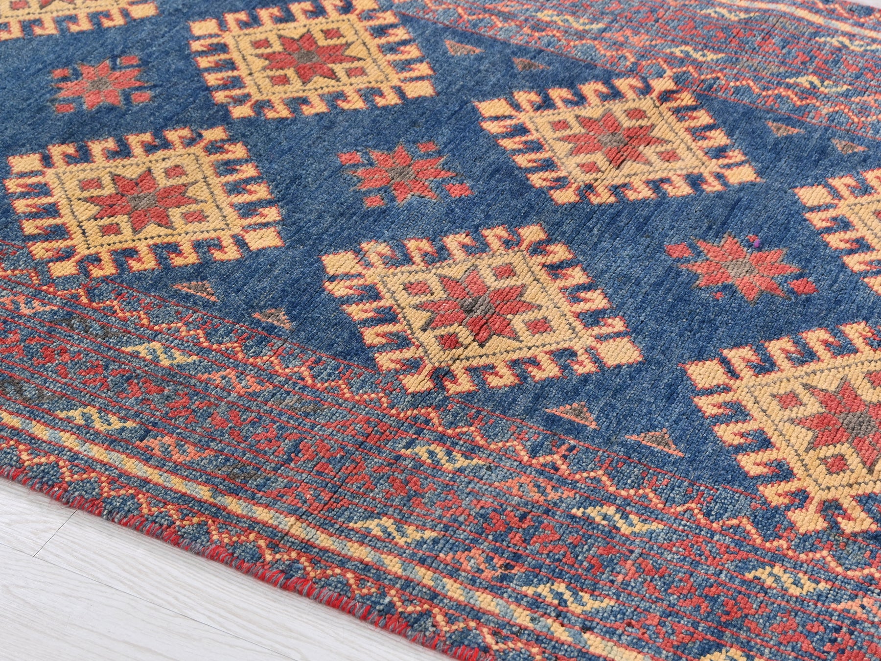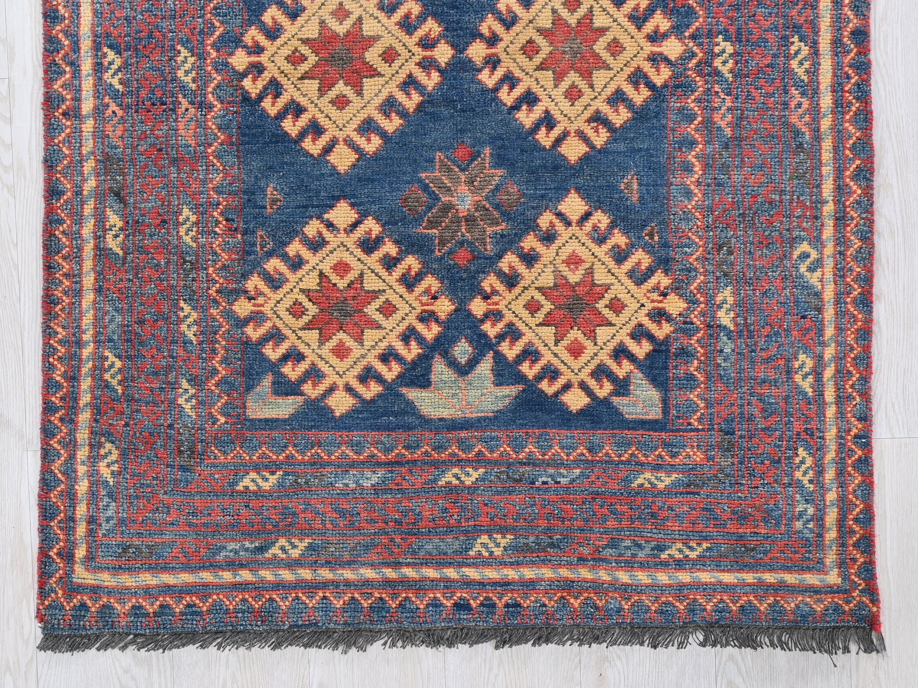 This is a hand-knotted, one-of-a-kind vintage rug. Due to the nature of this piece, there may be slight imperfections in its wear, shape, dimensions, and color. All of our rugs are professionally cleaned and repaired.