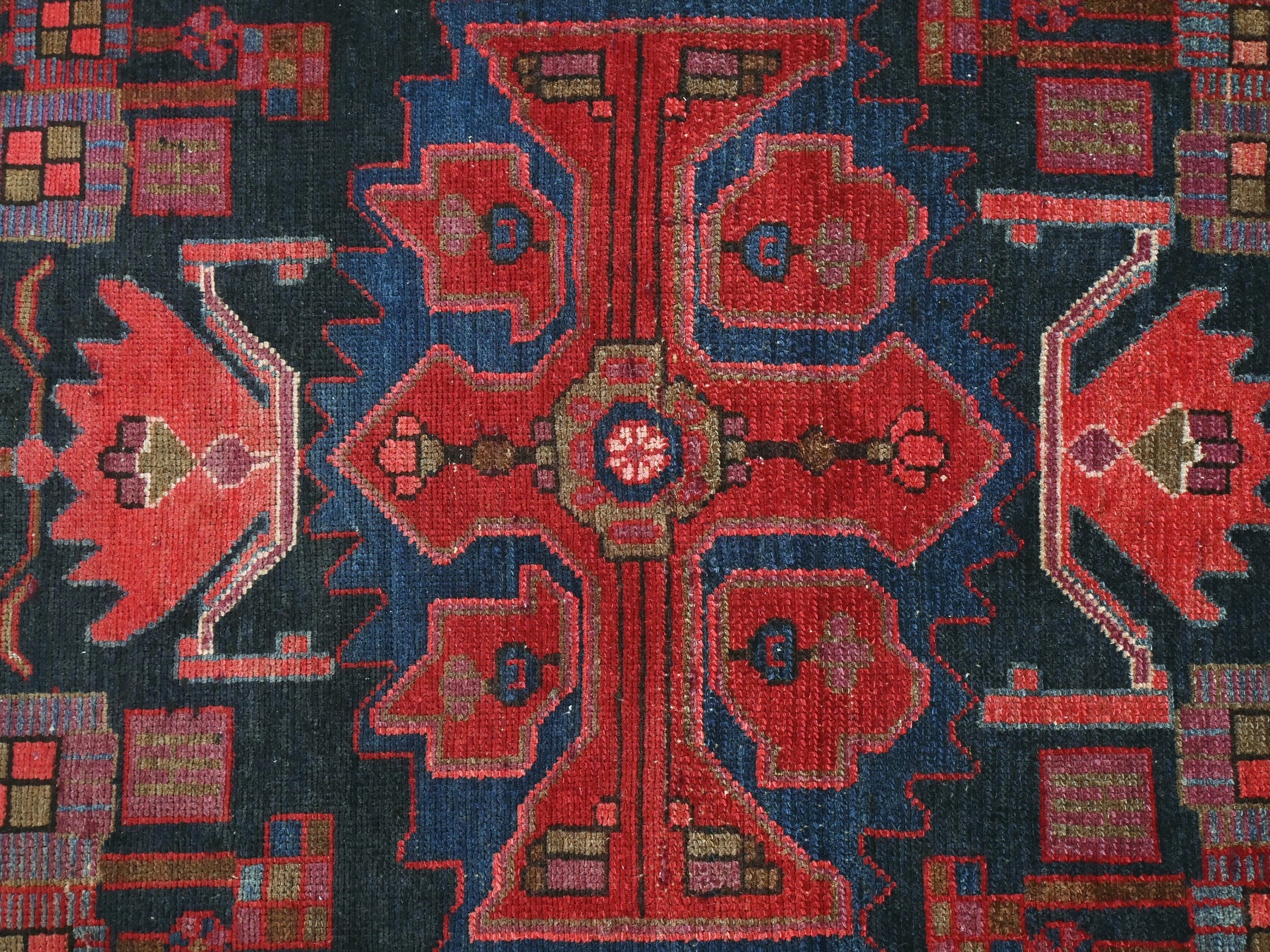This is a hand-knotted, one-of-a-kind vintage rug. Due to the nature of this piece, there may be slight imperfections in its wear, shape, dimensions, and color. All of our rugs are professionally cleaned and repaired.