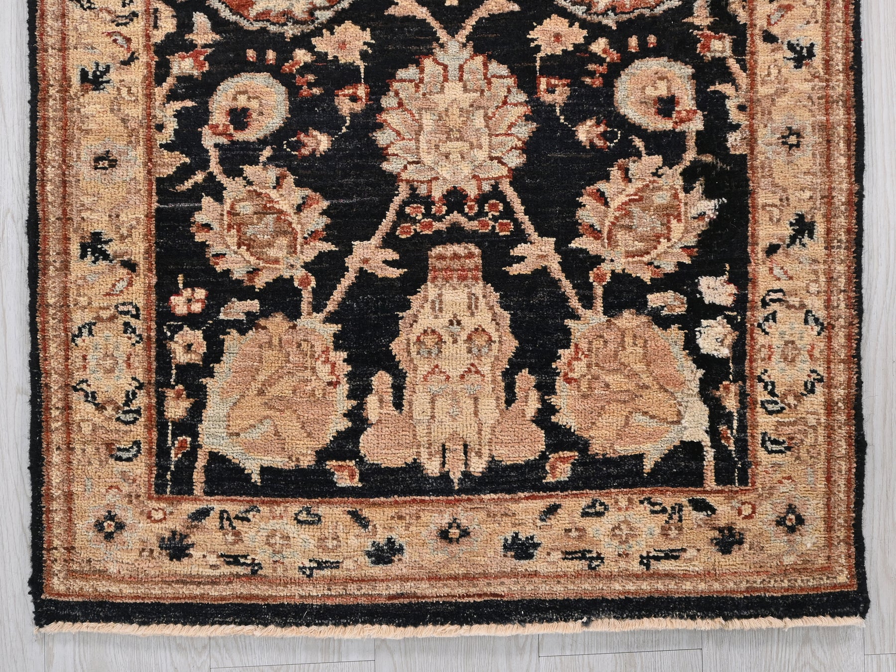 This is a hand-knotted, one-of-a-kind vintage rug. Due to the nature of this piece, there may be slight imperfections in its wear, shape, dimensions, and color. All of our rugs are professionally cleaned and repaired.