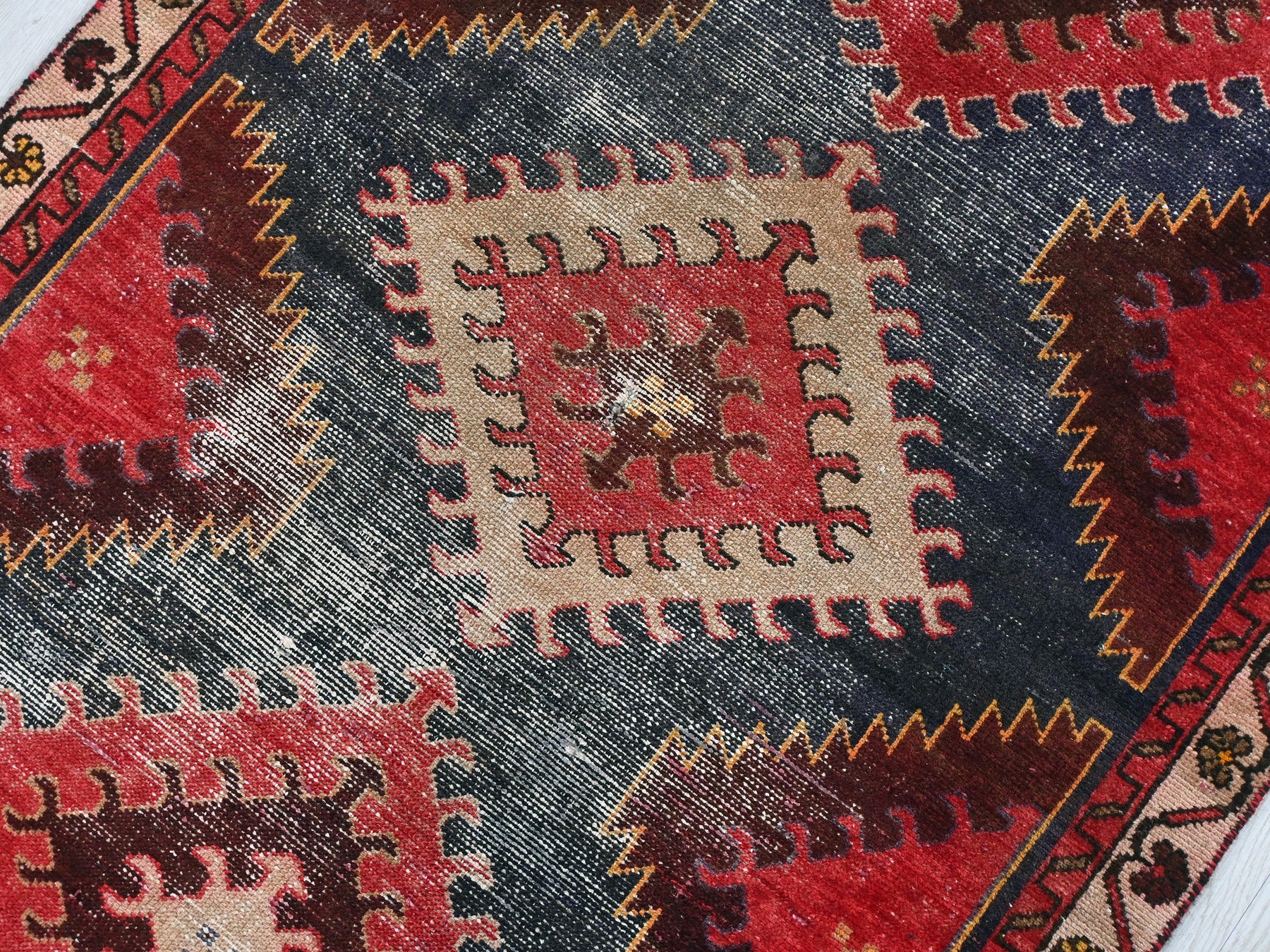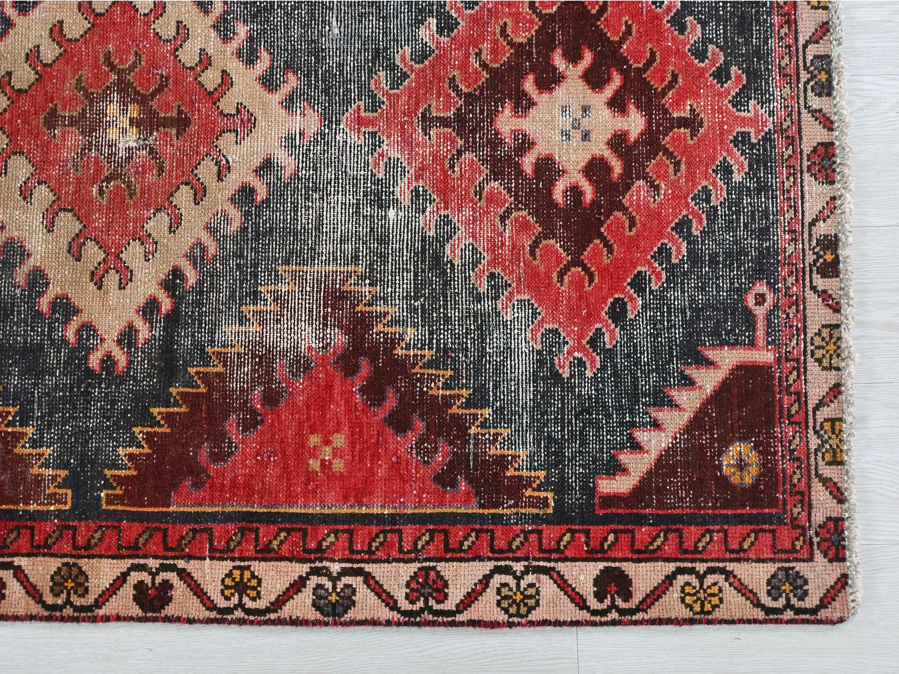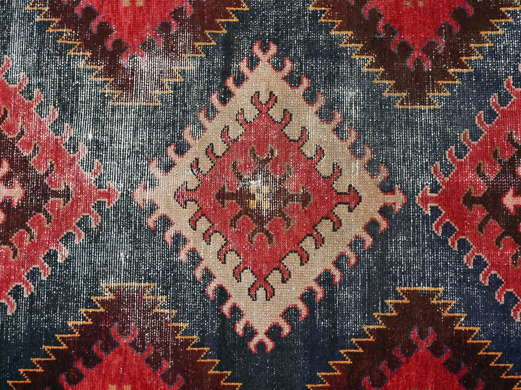 This is a hand-knotted, one-of-a-kind vintage rug. Due to the nature of this piece, there may be slight imperfections in its wear, shape, dimensions, and color. All of our rugs are professionally cleaned and repaired.