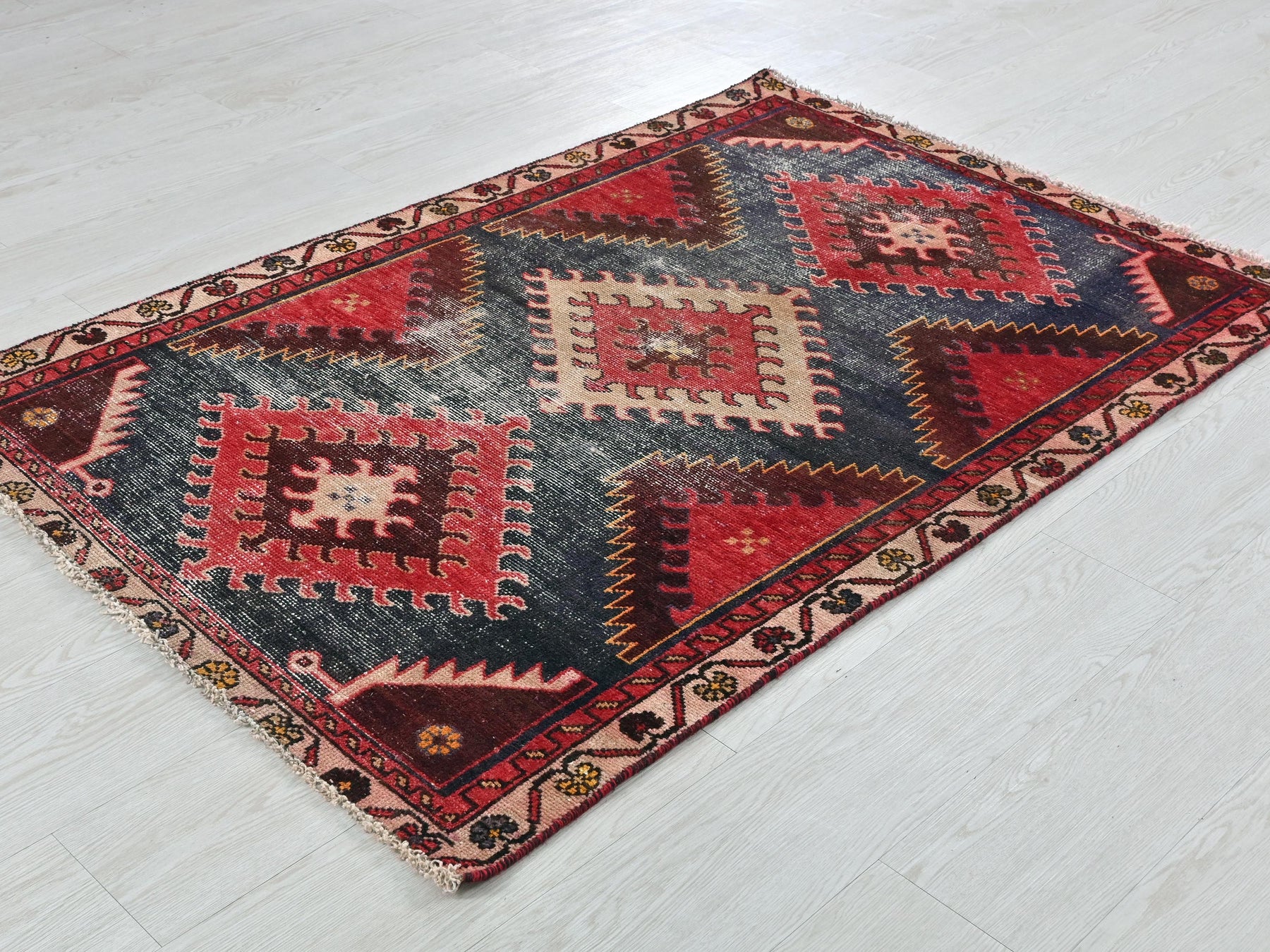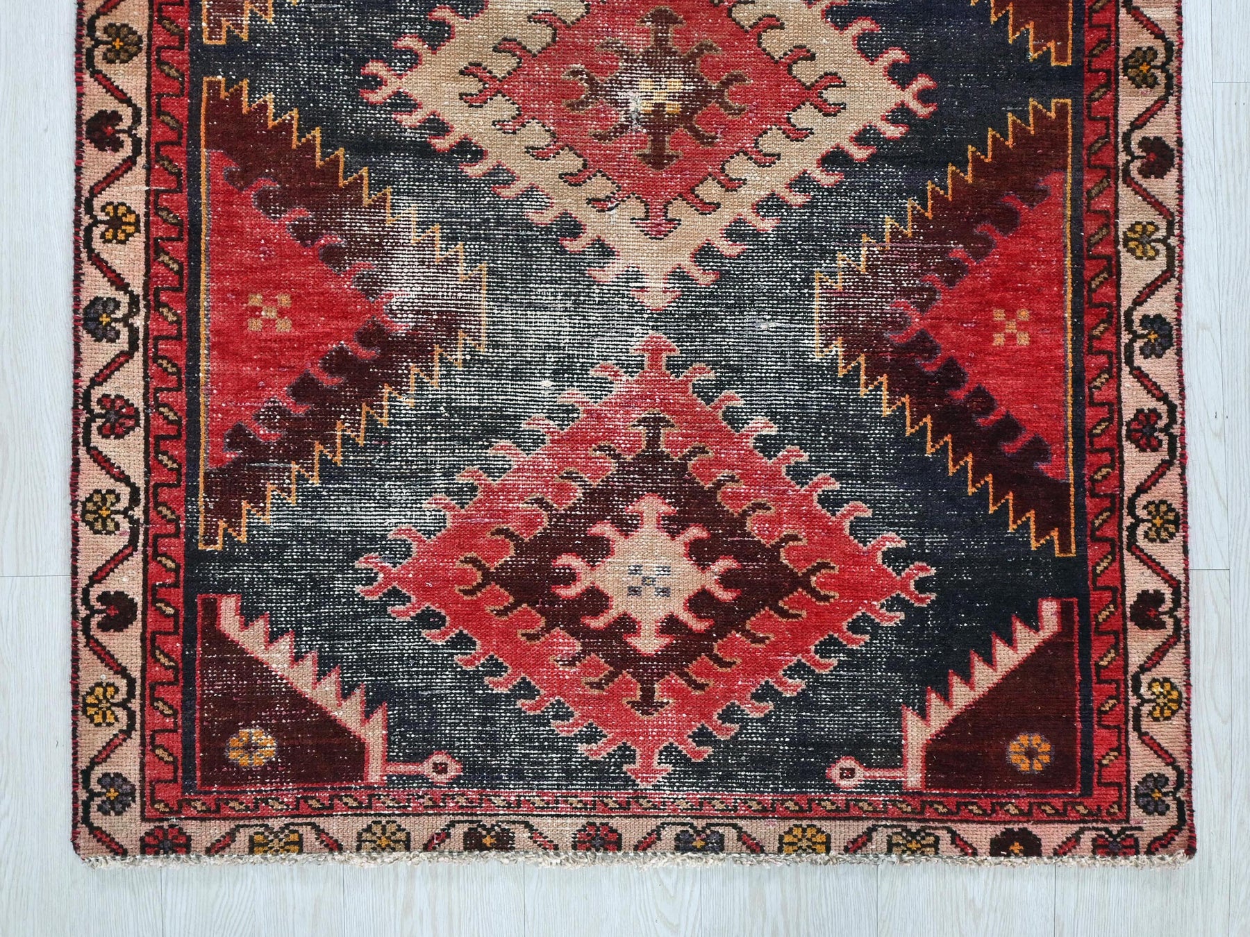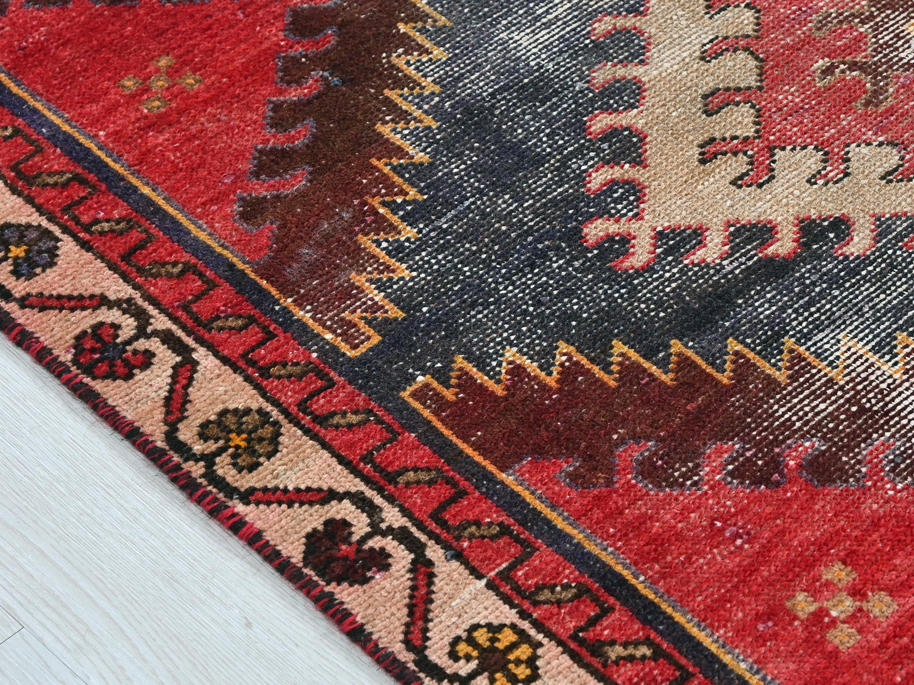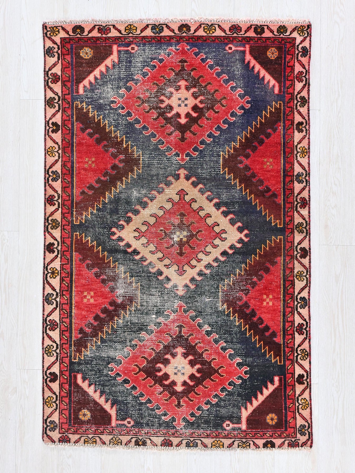 This is a hand-knotted, one-of-a-kind vintage rug. Due to the nature of this piece, there may be slight imperfections in its wear, shape, dimensions, and color. All of our rugs are professionally cleaned and repaired.