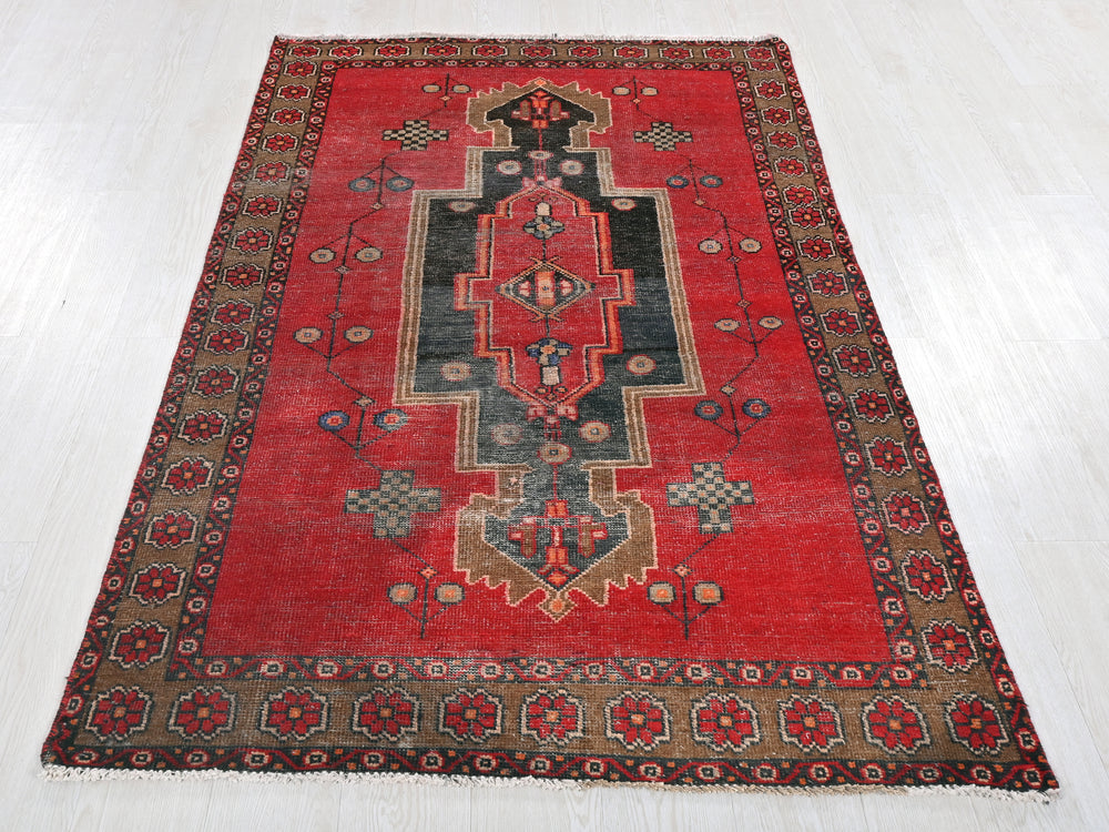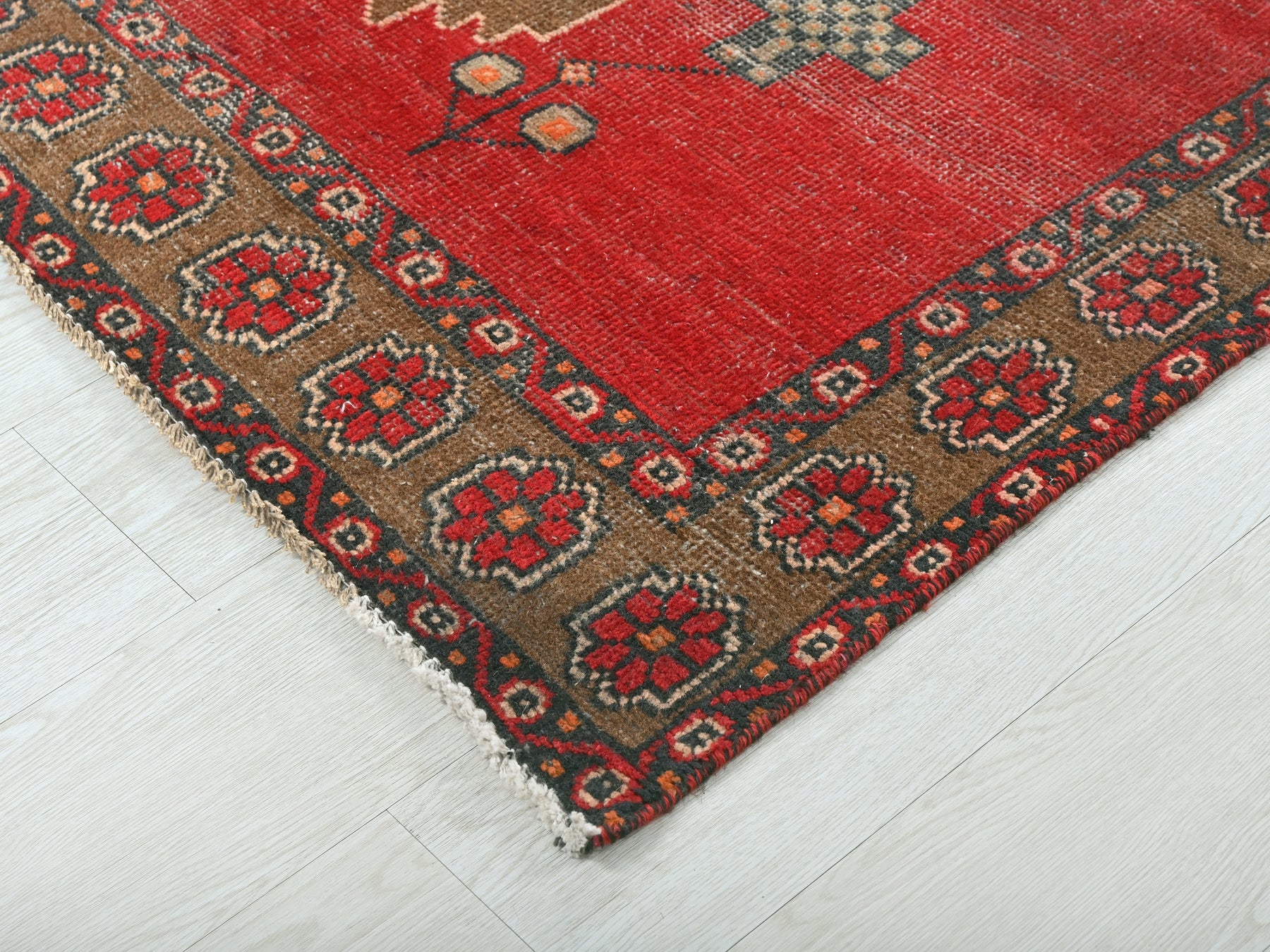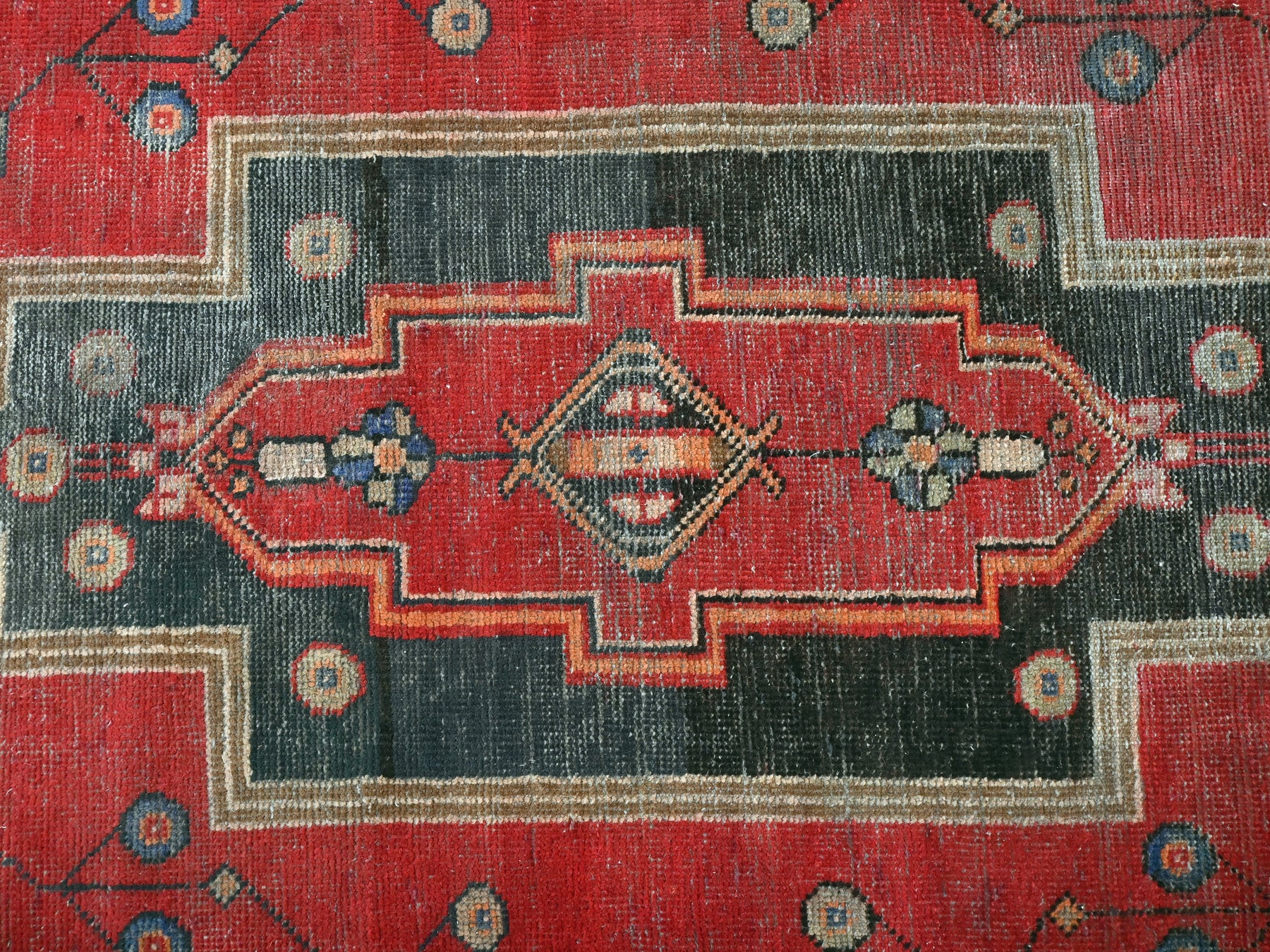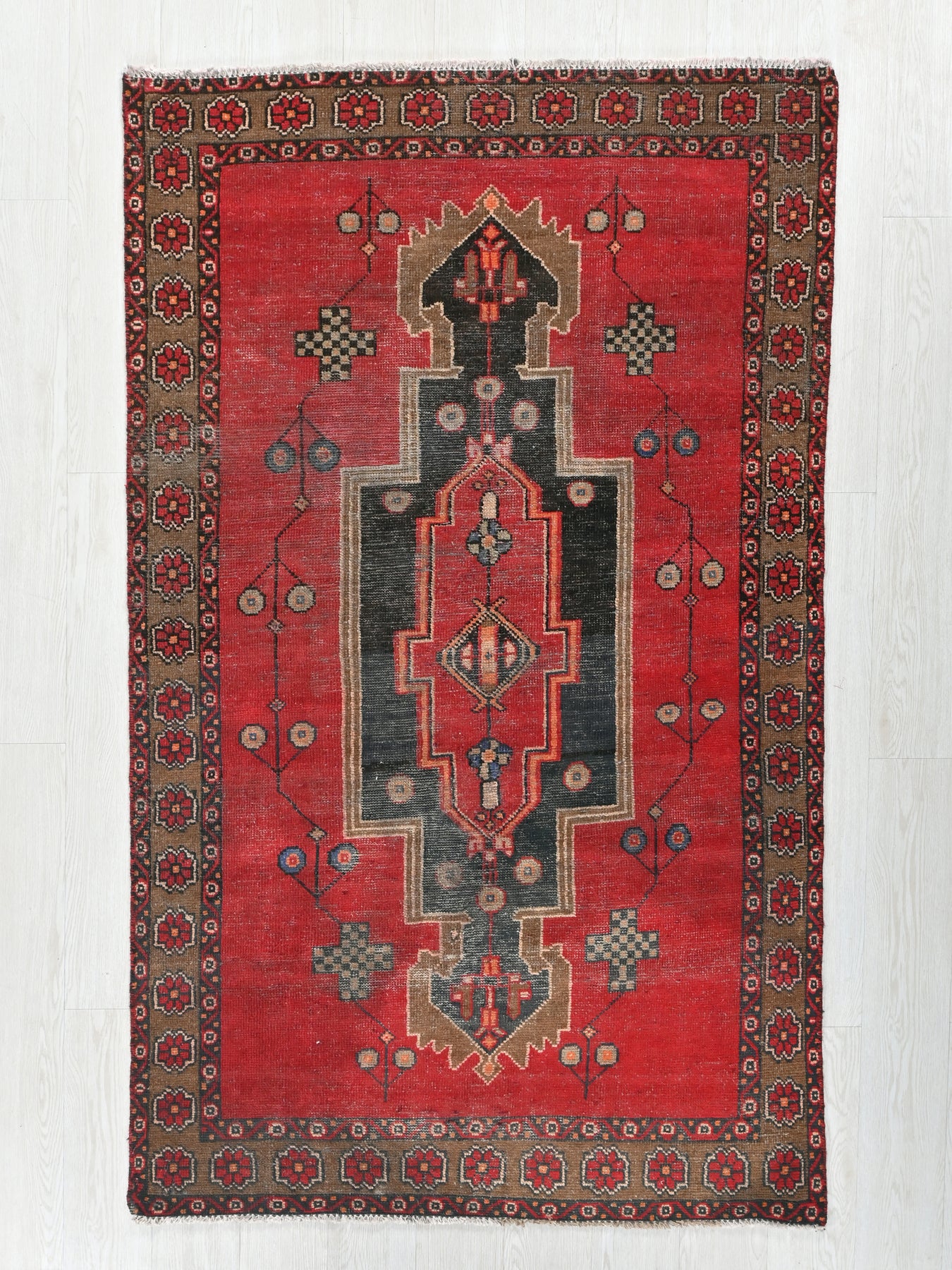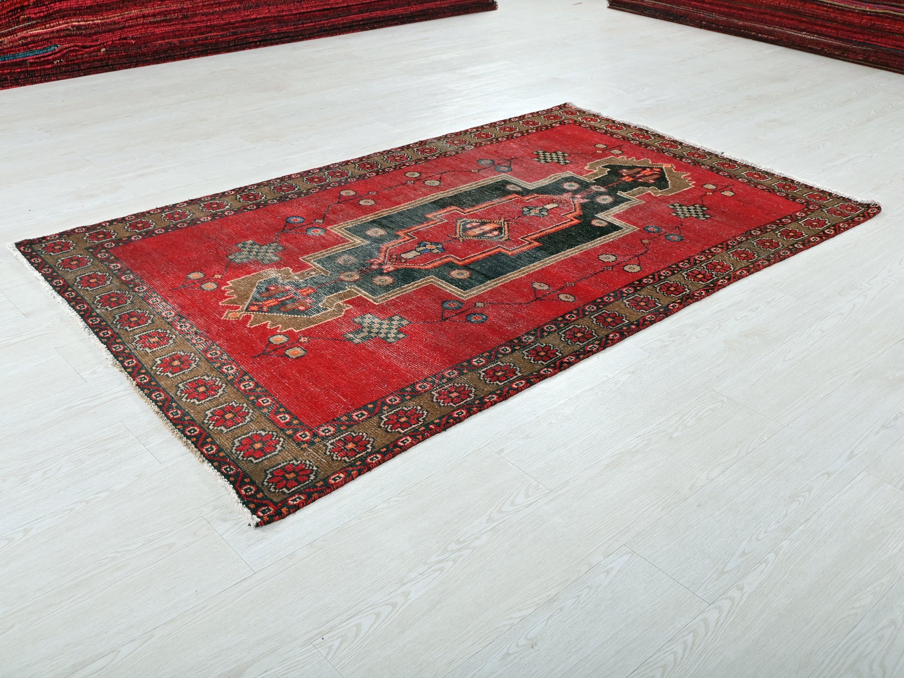 This is a hand-knotted, one-of-a-kind vintage rug. Due to the nature of this piece, there may be slight imperfections in its wear, shape, dimensions, and color. All of our rugs are professionally cleaned and repaired.