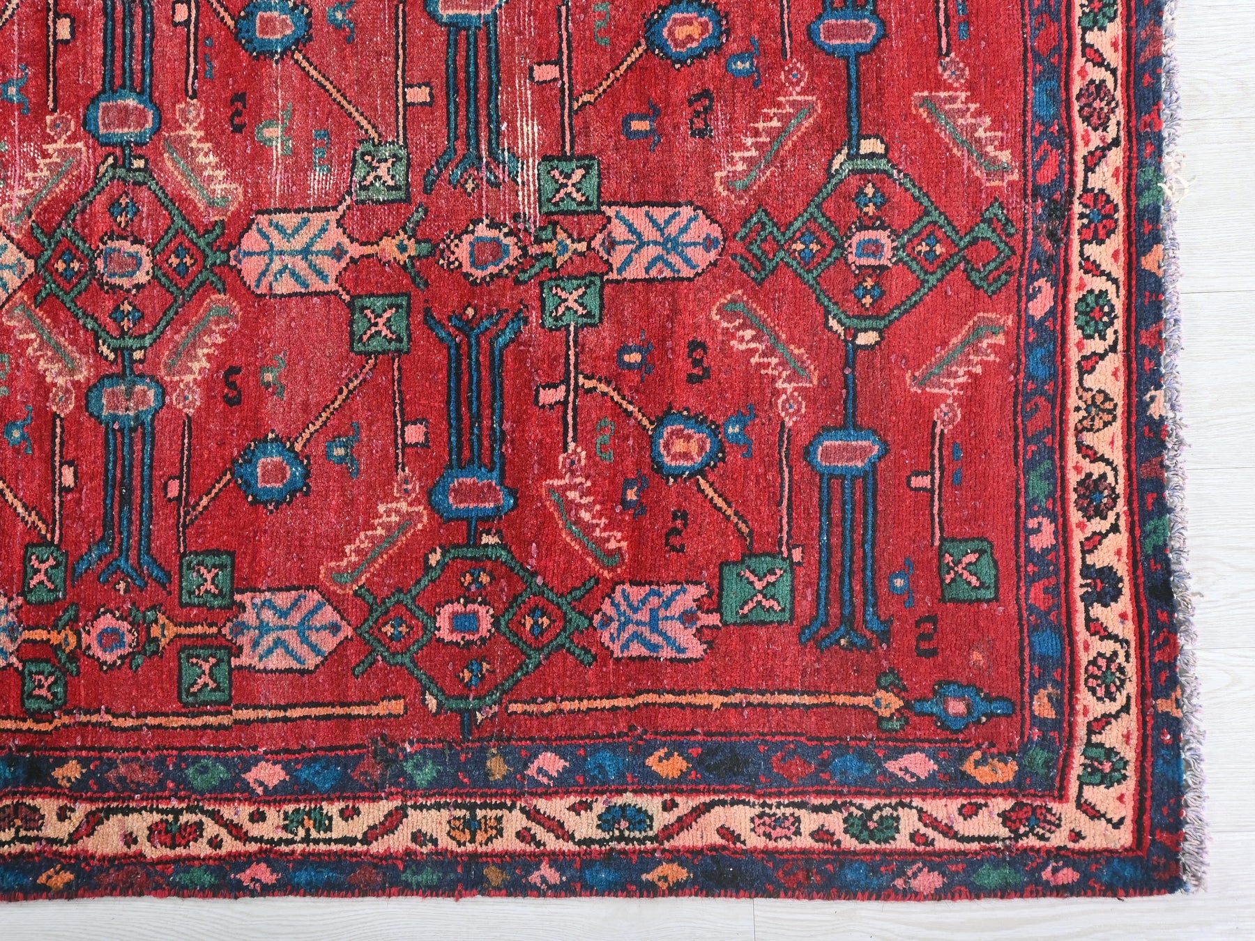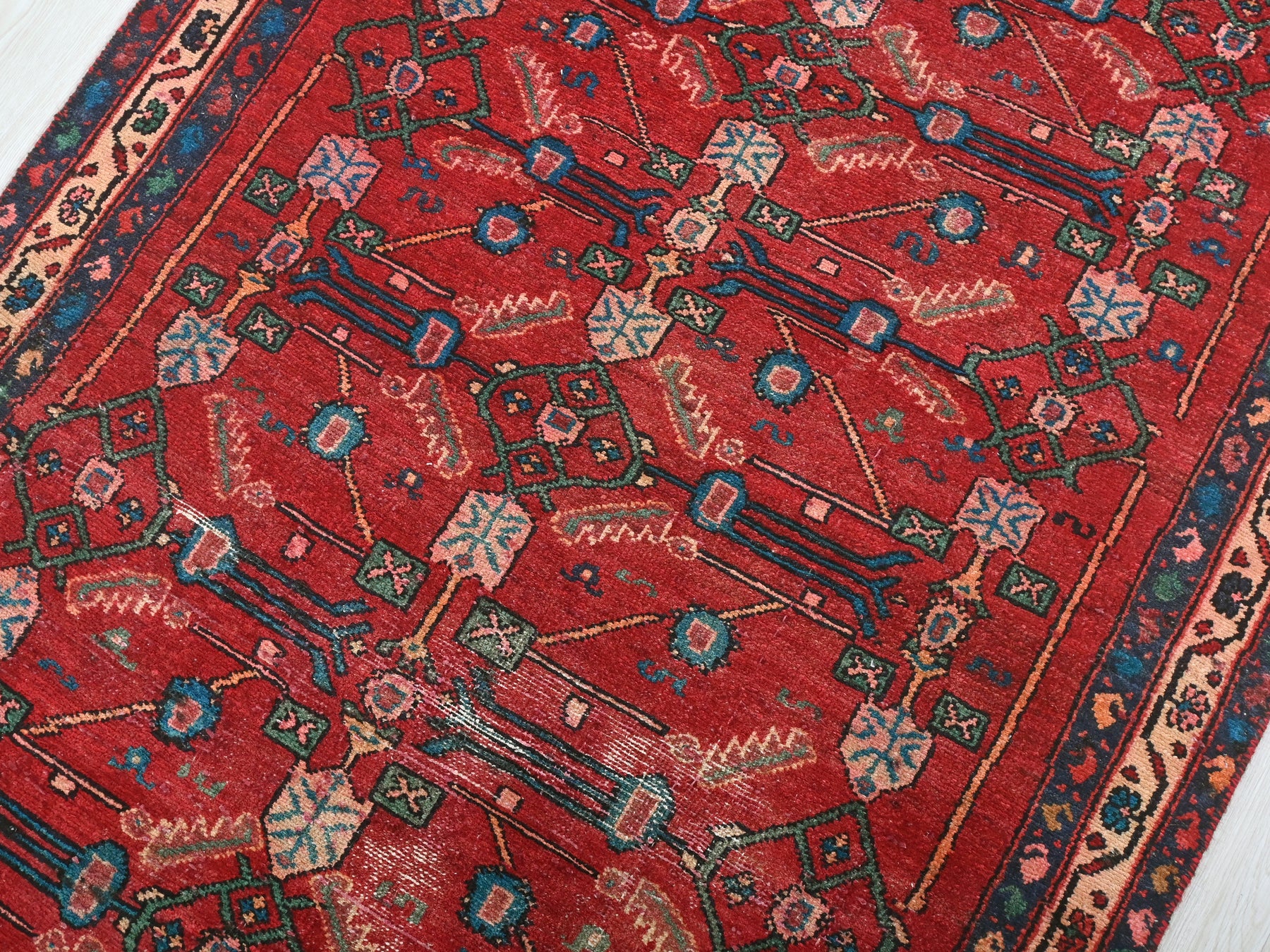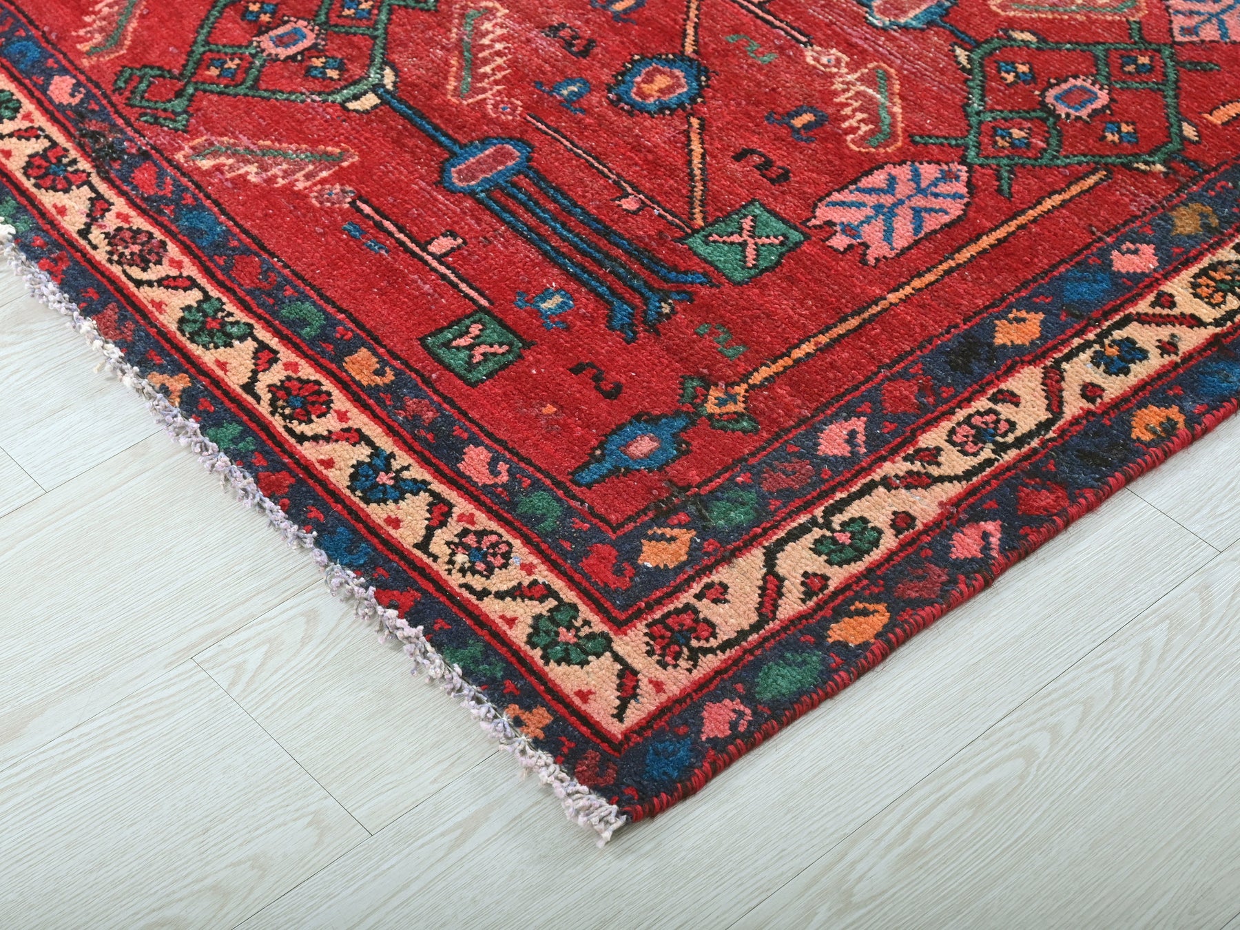 This is a hand-knotted, one-of-a-kind vintage rug. Due to the nature of this piece, there may be slight imperfections in its wear, shape, dimensions, and color. All of our rugs are professionally cleaned and repaired.