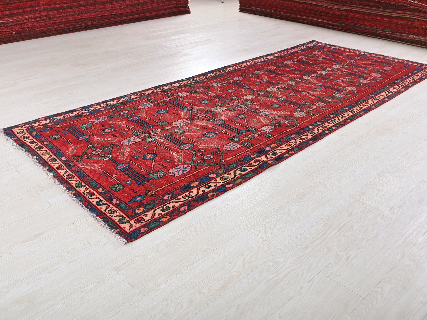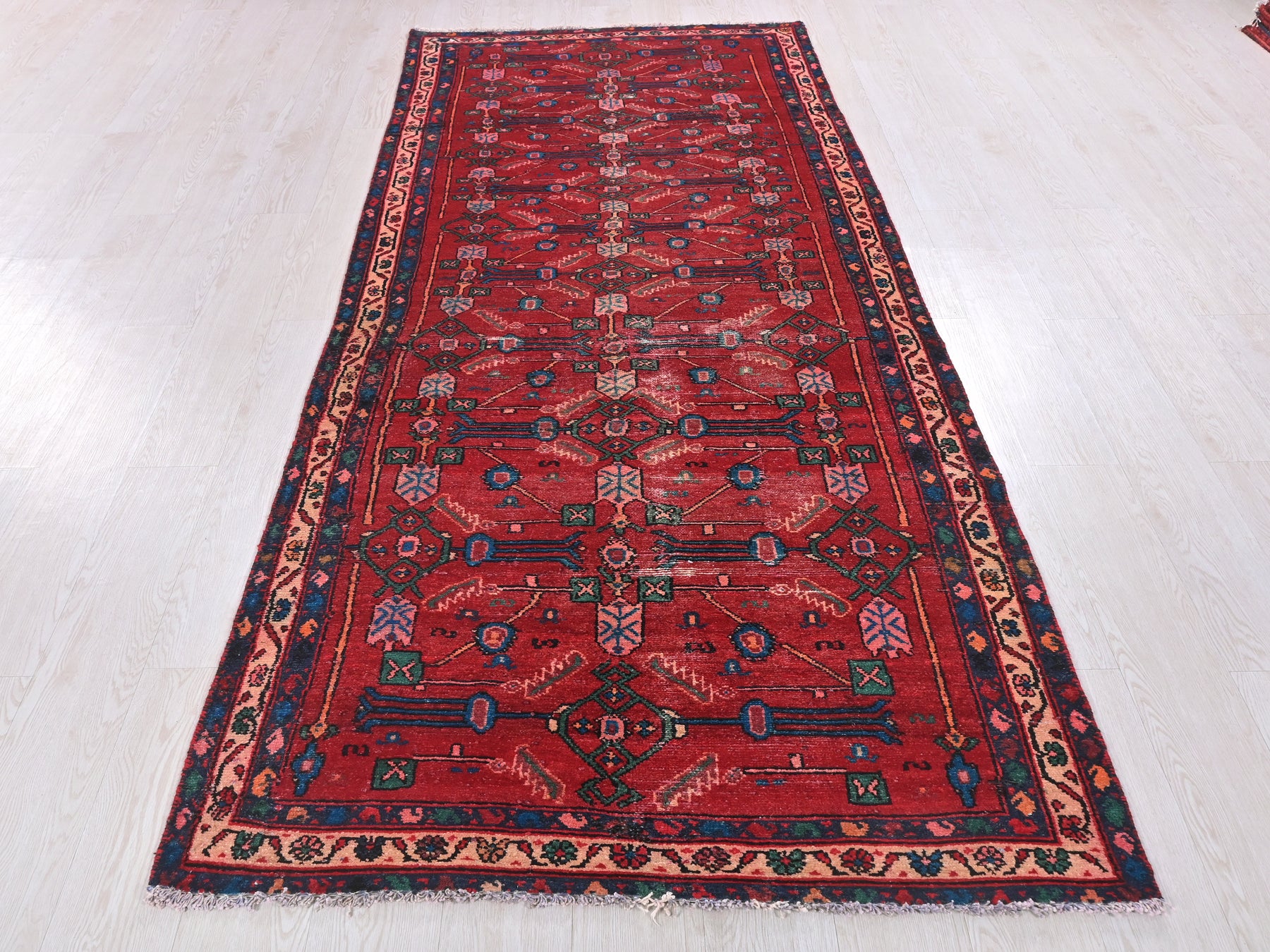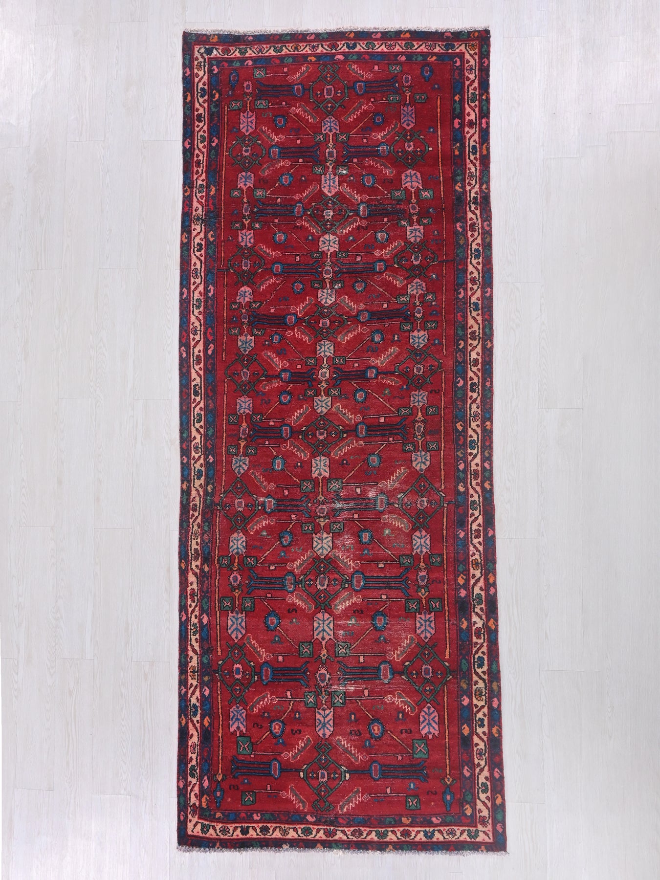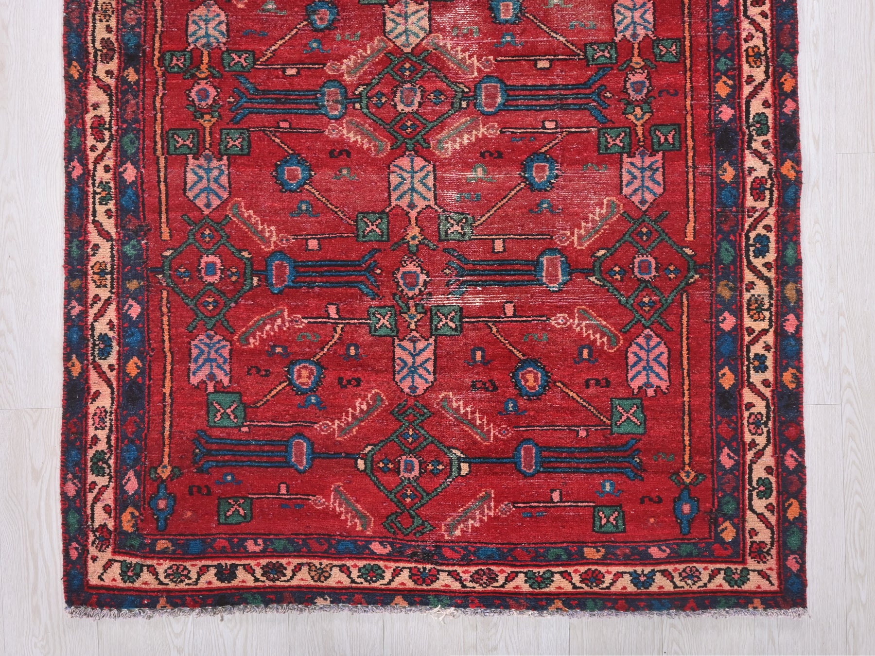 This is a hand-knotted, one-of-a-kind vintage rug. Due to the nature of this piece, there may be slight imperfections in its wear, shape, dimensions, and color. All of our rugs are professionally cleaned and repaired.