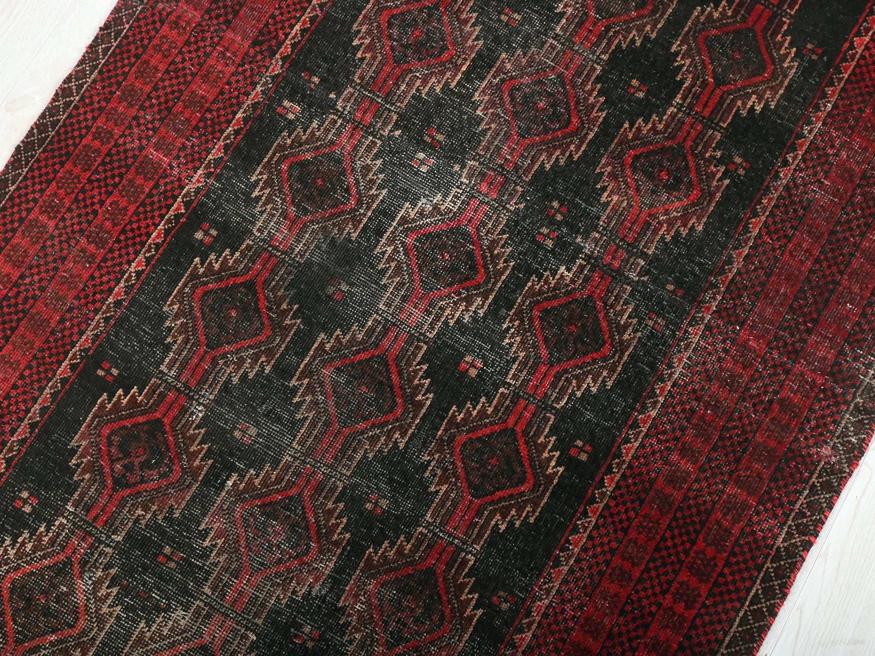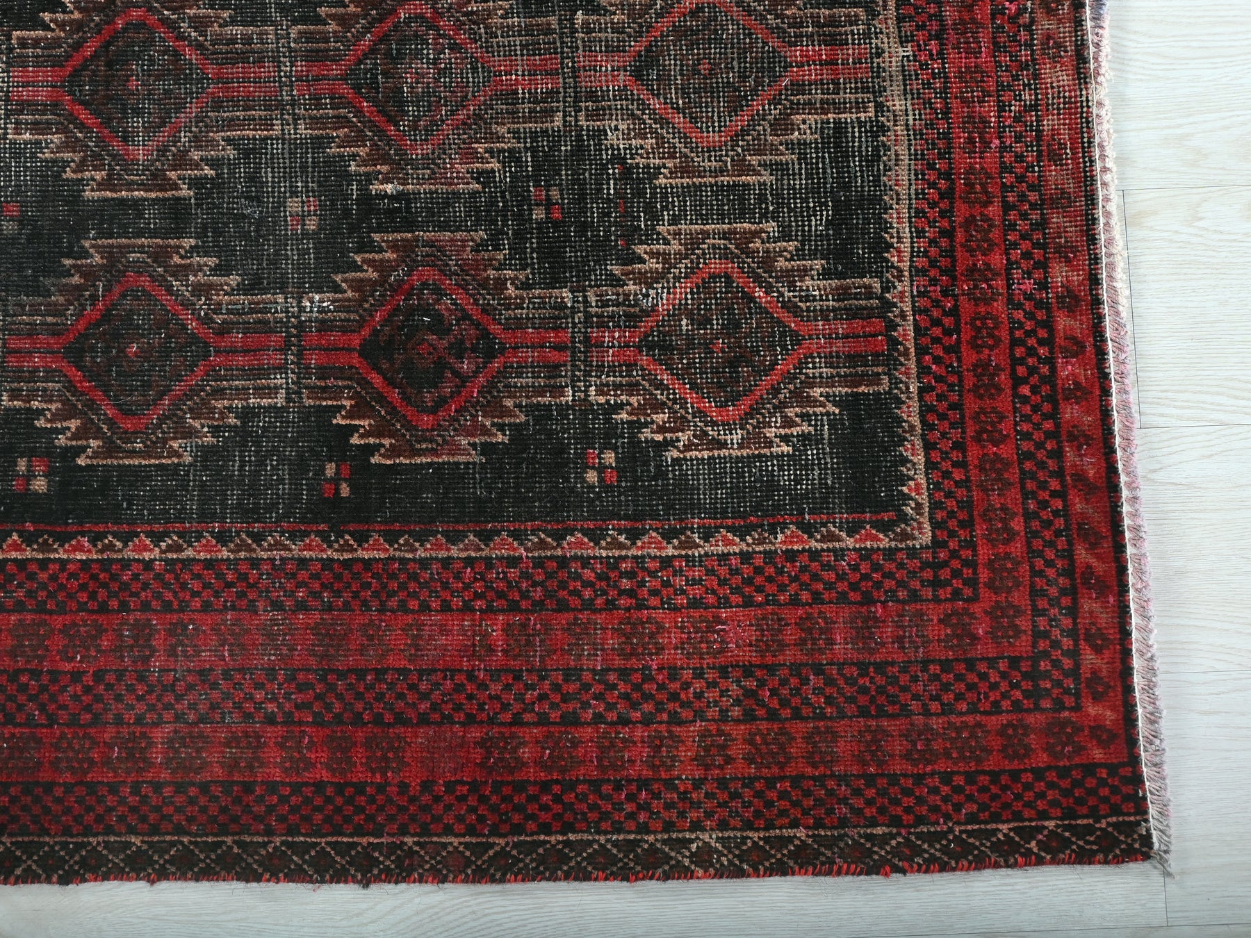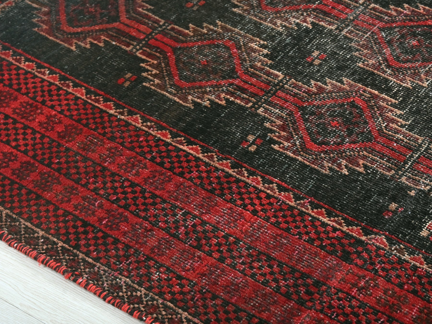 This is a hand-knotted, one-of-a-kind vintage rug. Due to the nature of this piece, there may be slight imperfections in its wear, shape, dimensions, and color. All of our rugs are professionally cleaned and repaired.