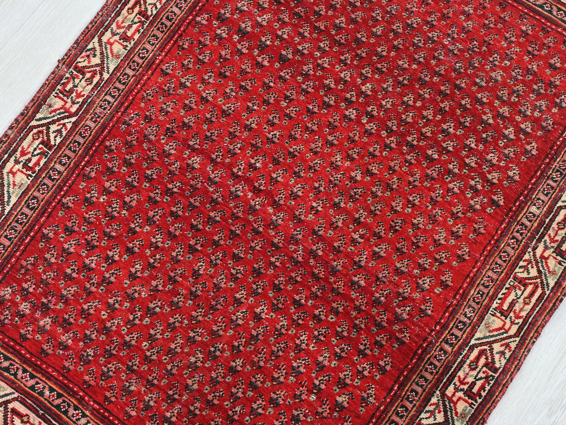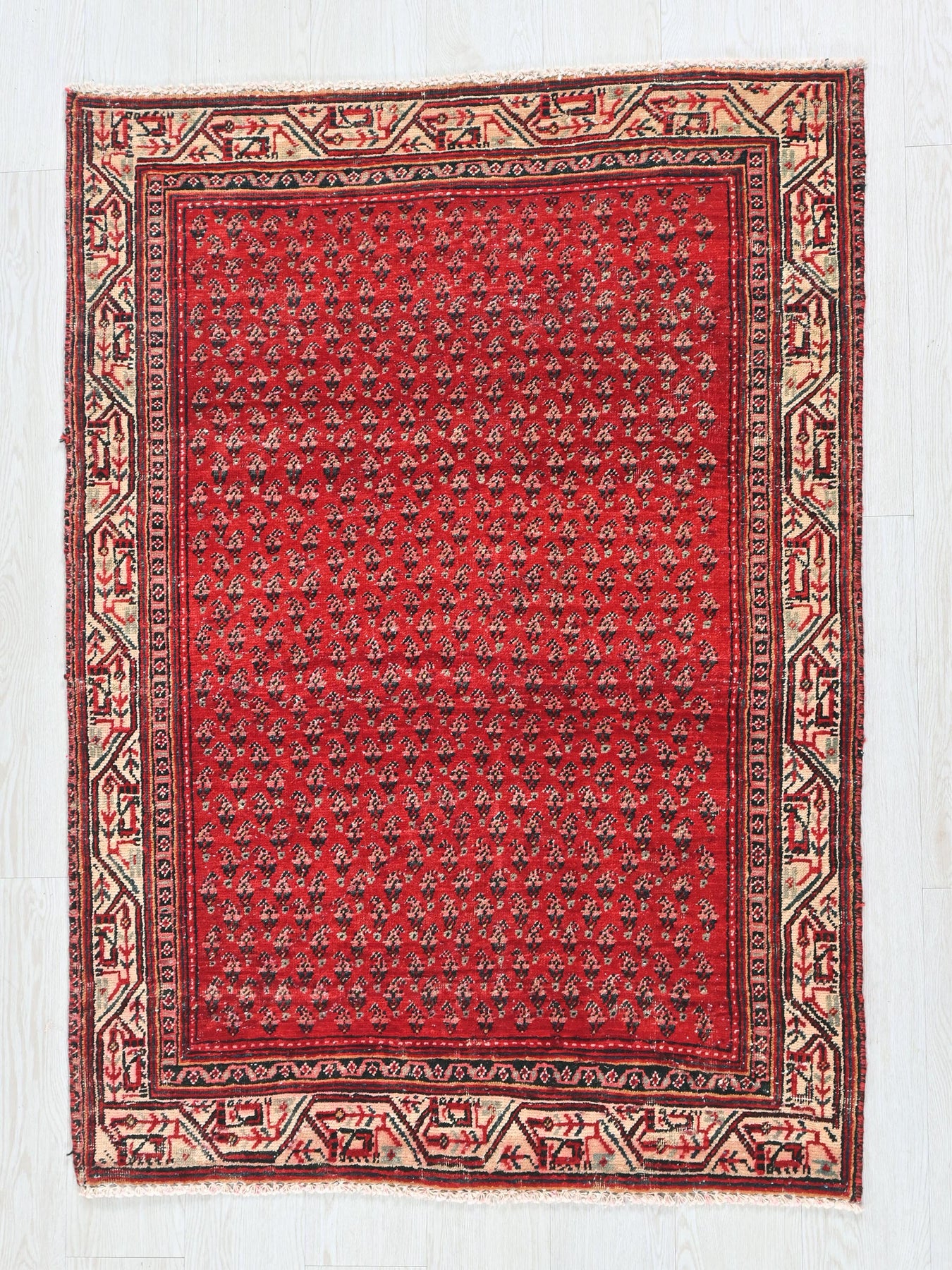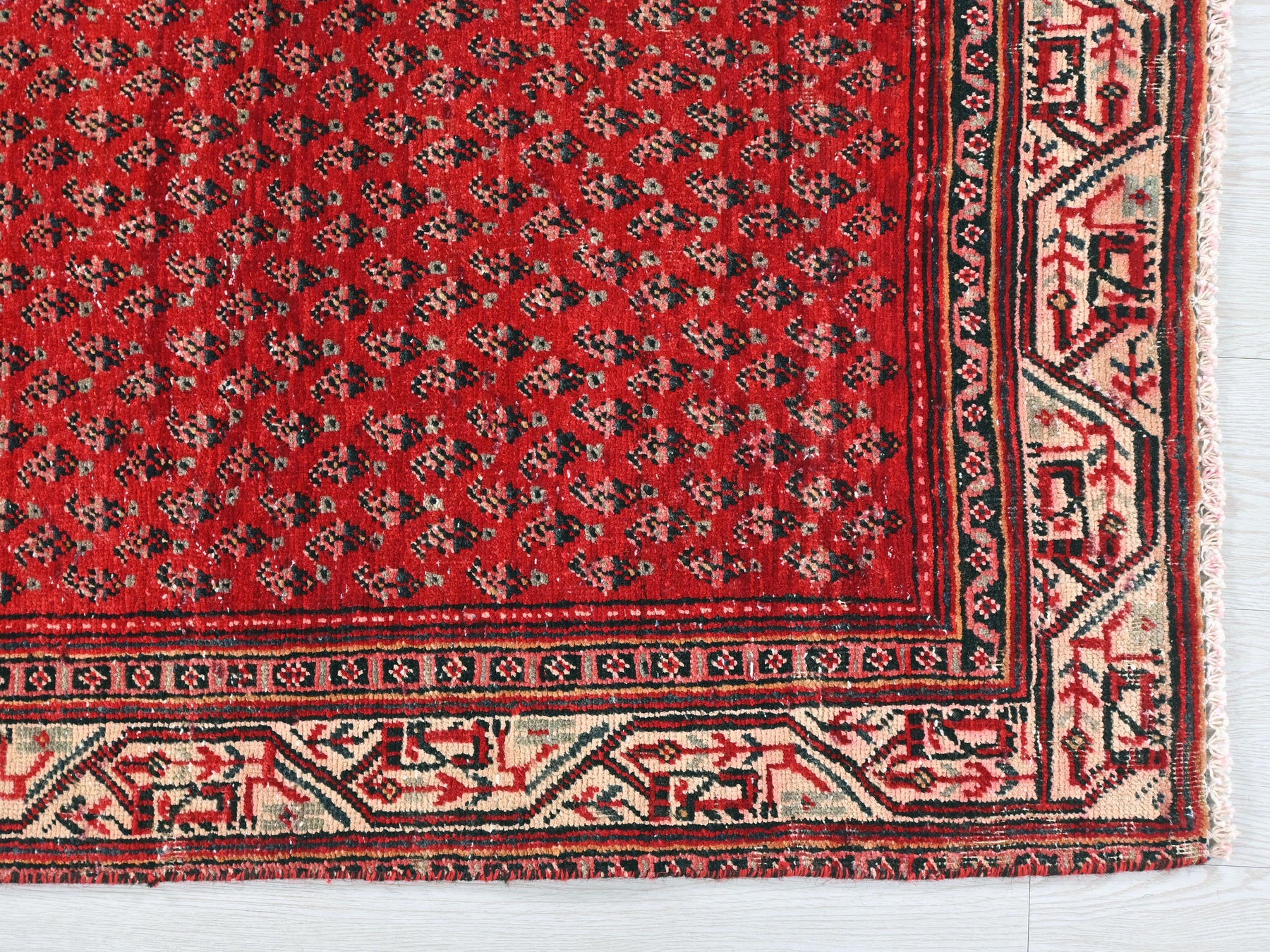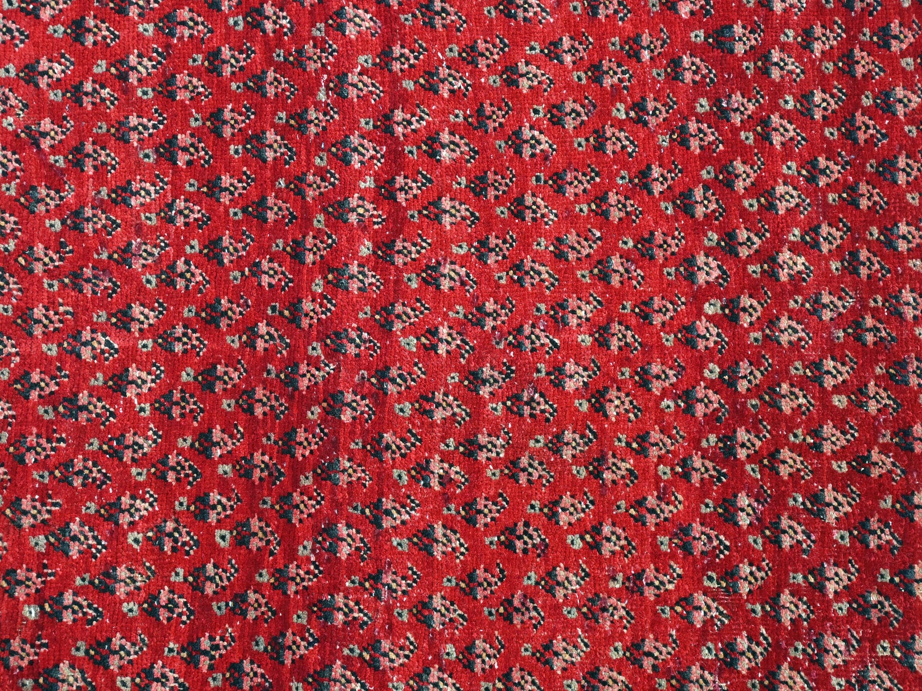 This is a hand-knotted, one-of-a-kind vintage rug. Due to the nature of this piece, there may be slight imperfections in its wear, shape, dimensions, and color. All of our rugs are professionally cleaned and repaired.