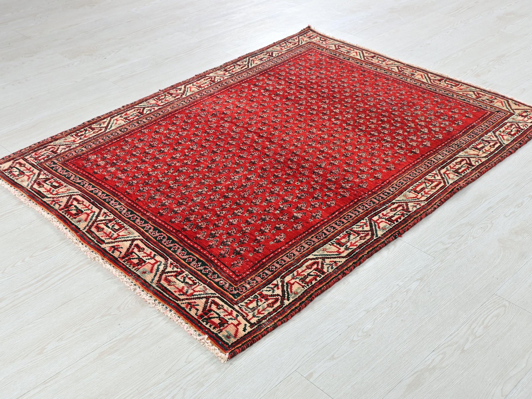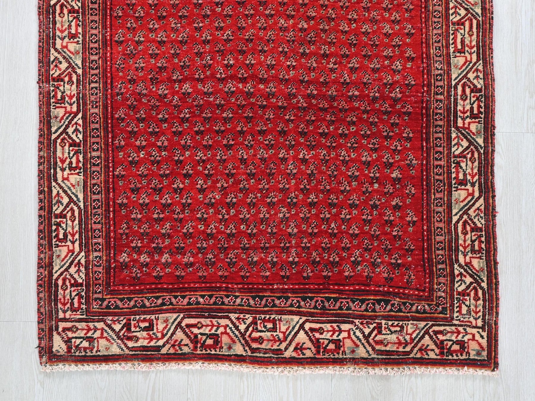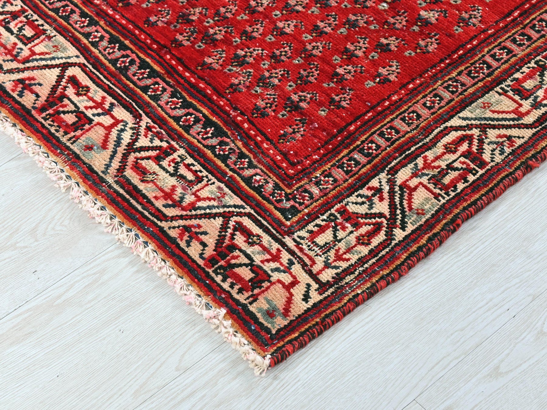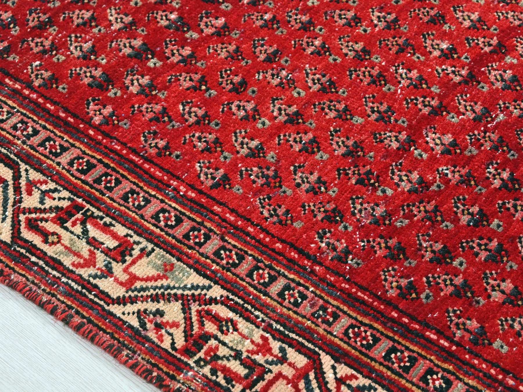 This is a hand-knotted, one-of-a-kind vintage rug. Due to the nature of this piece, there may be slight imperfections in its wear, shape, dimensions, and color. All of our rugs are professionally cleaned and repaired.
