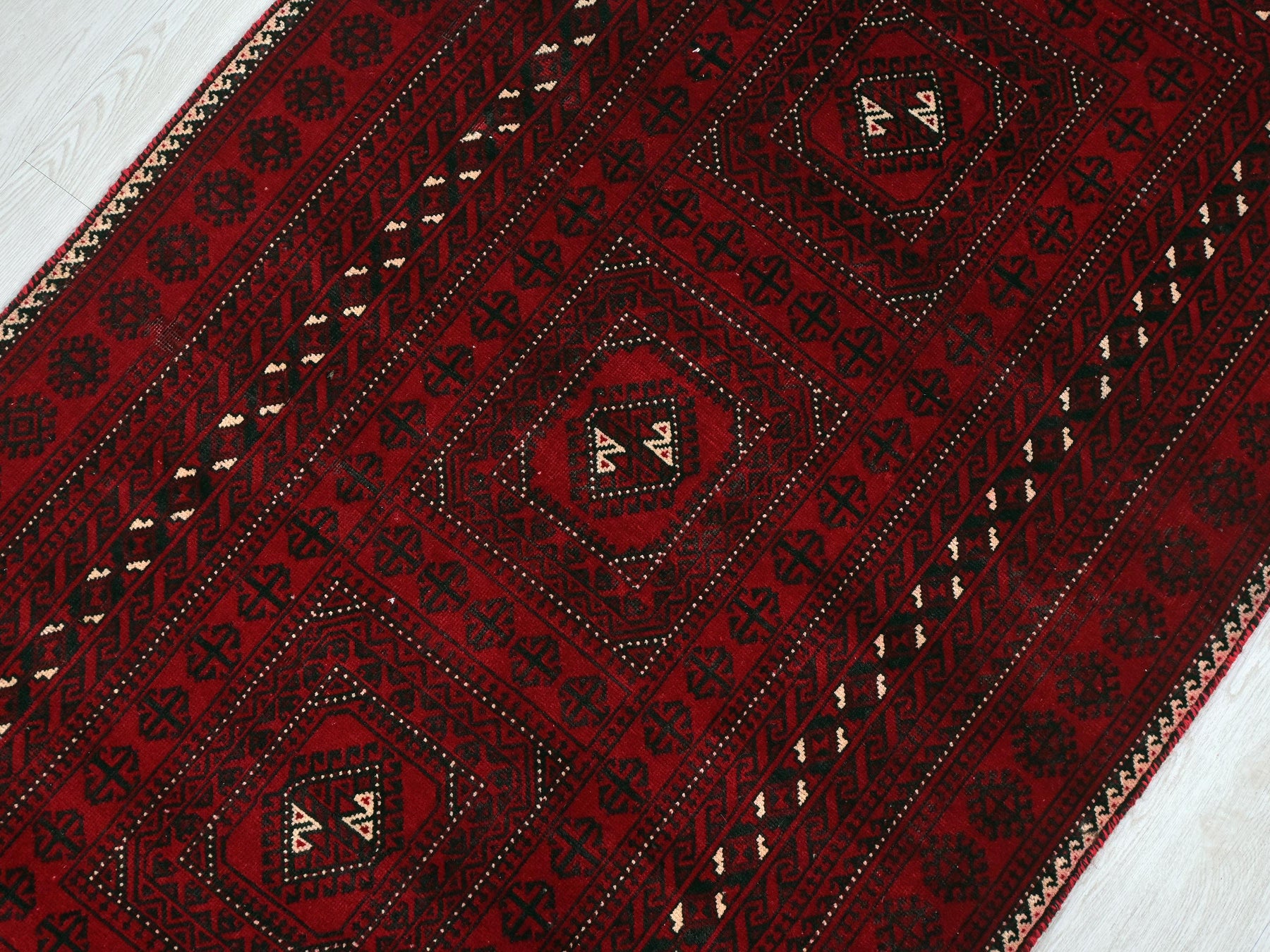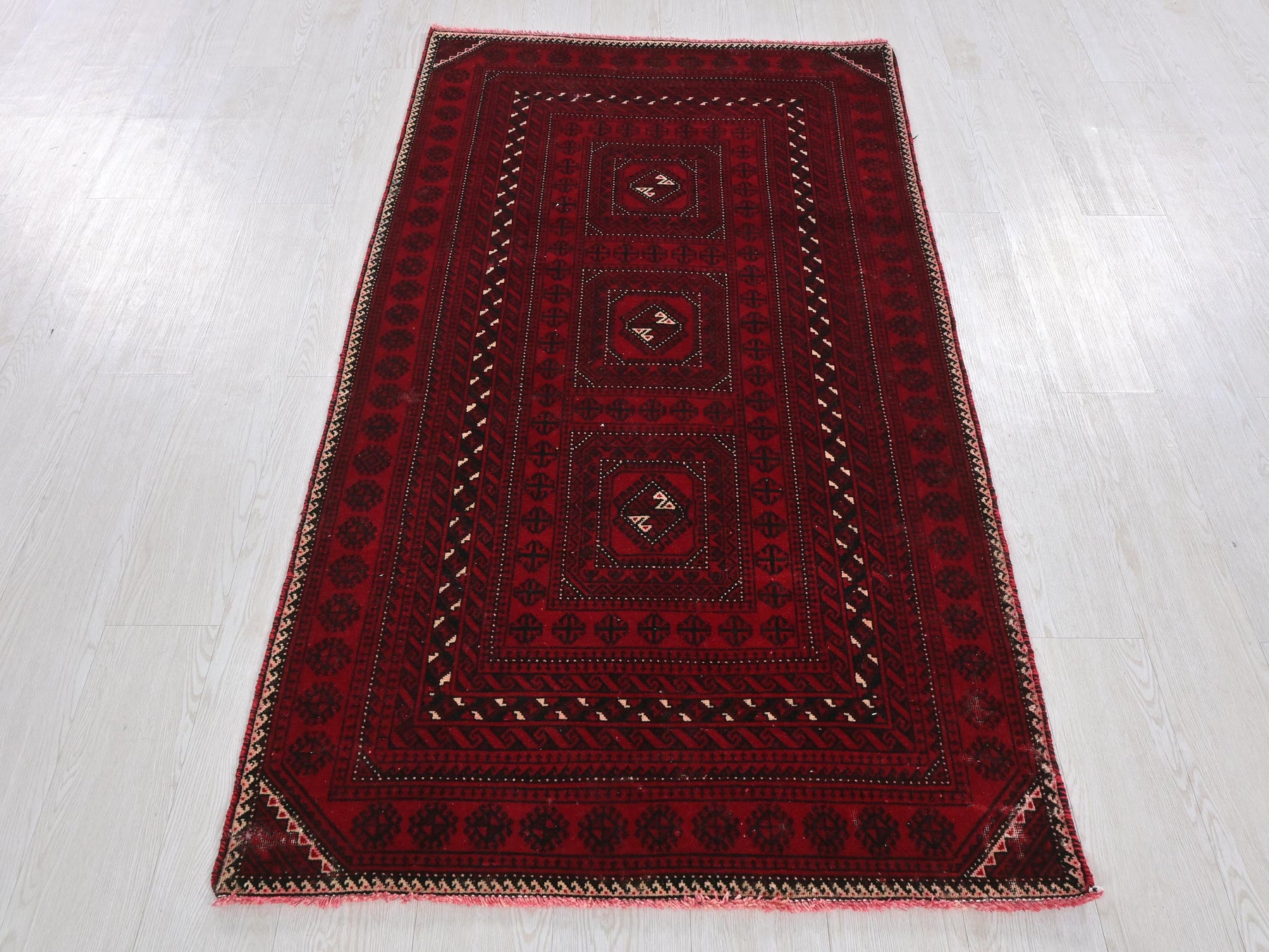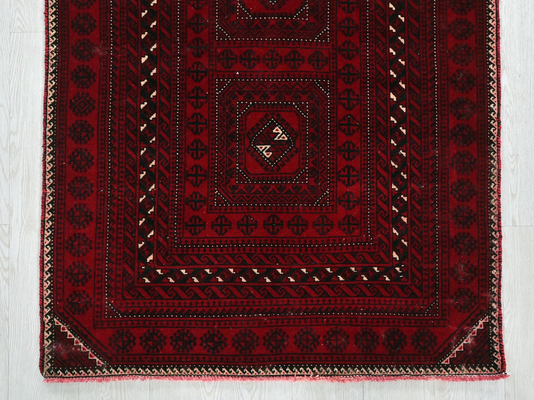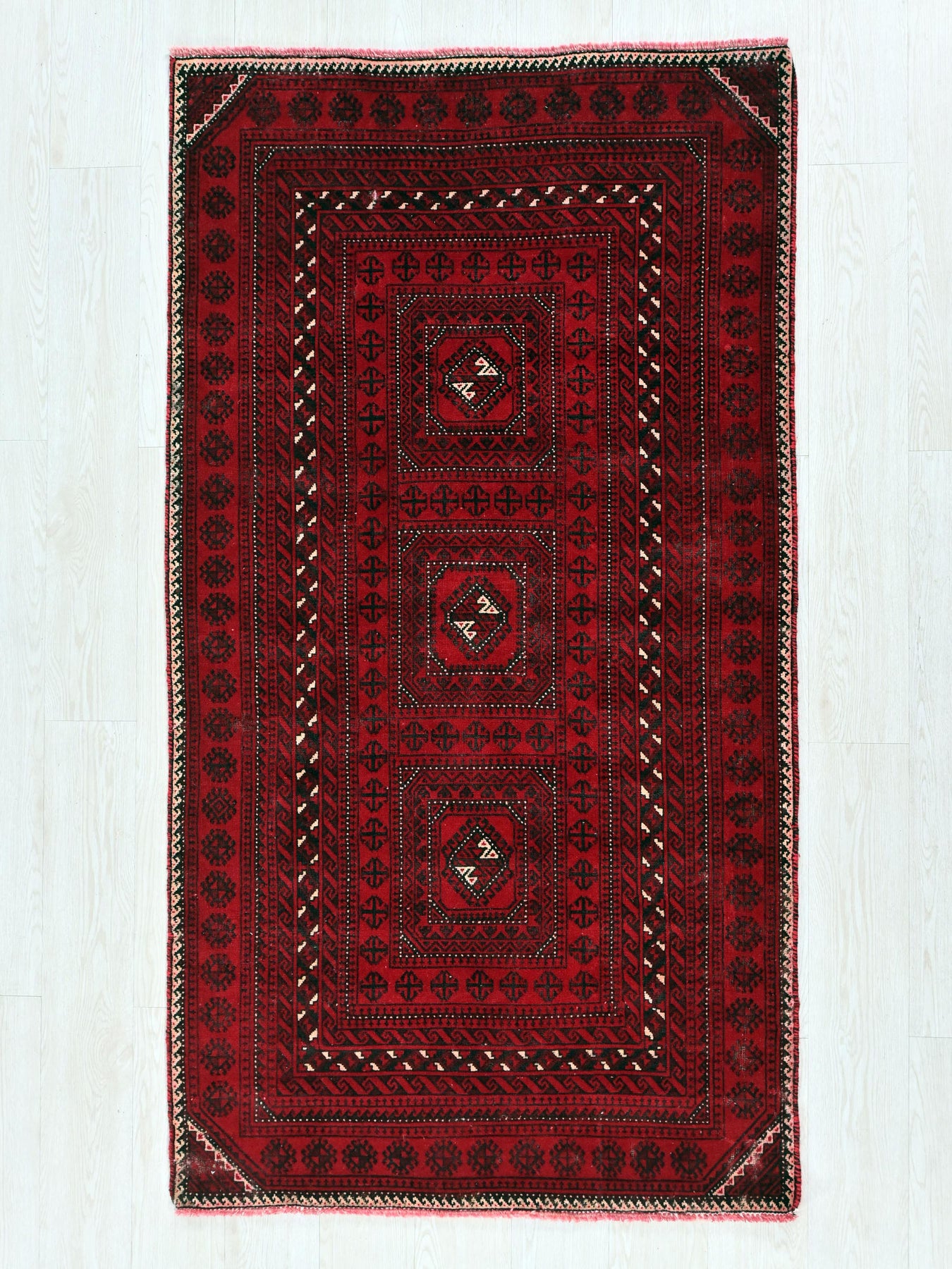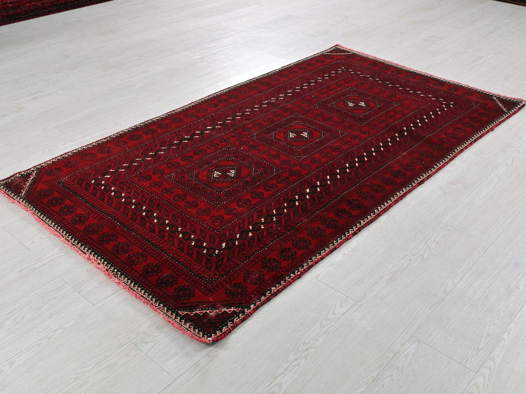 This is a hand-knotted, one-of-a-kind vintage rug. Due to the nature of this piece, there may be slight imperfections in its wear, shape, dimensions, and color. All of our rugs are professionally cleaned and repaired.