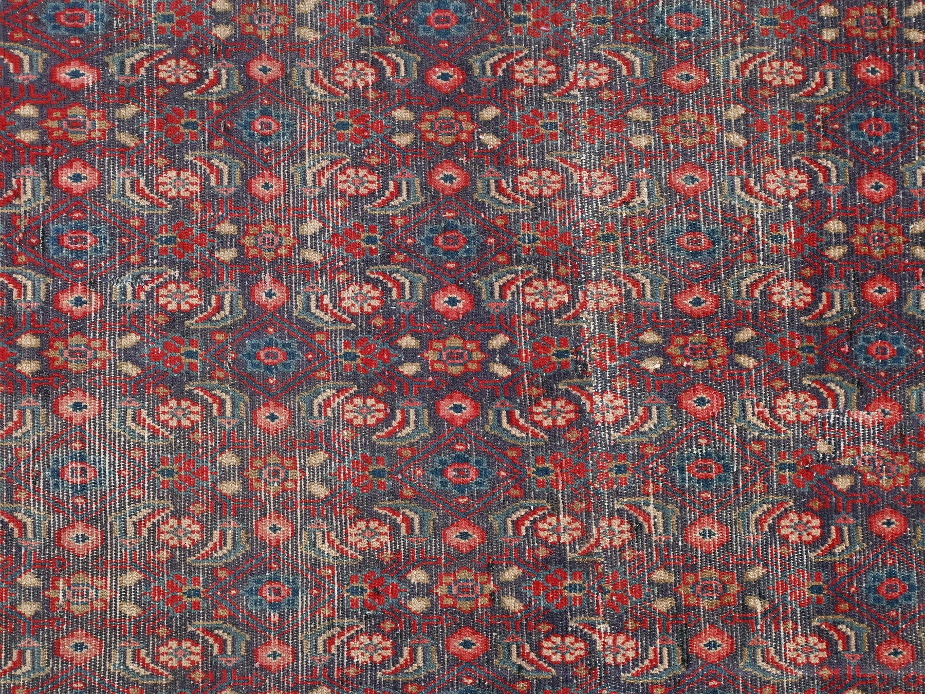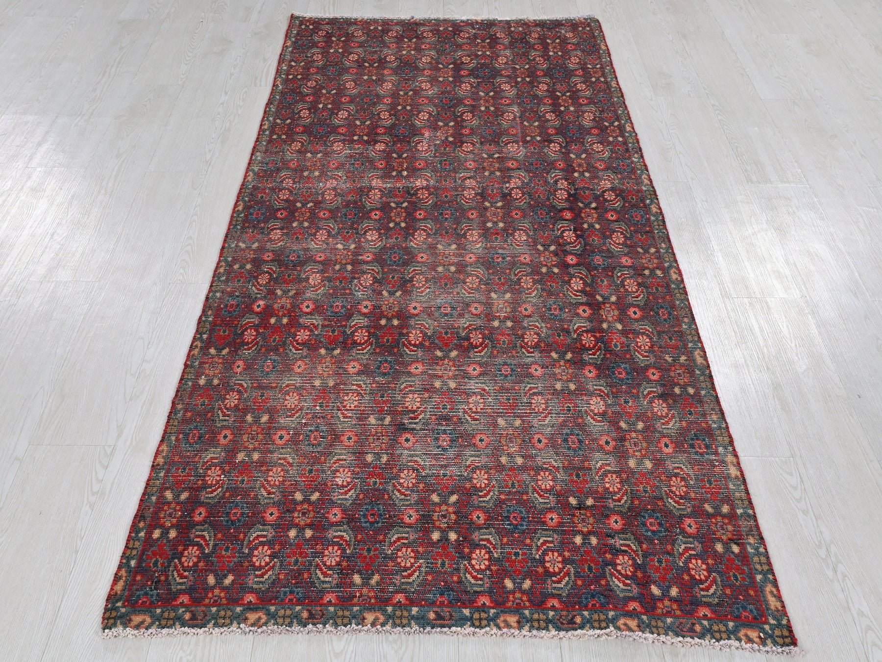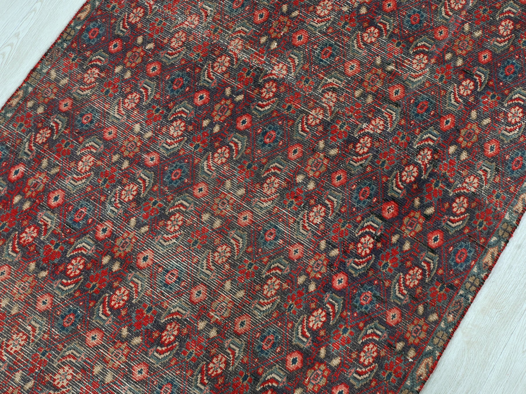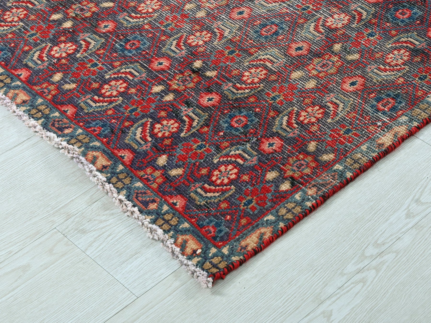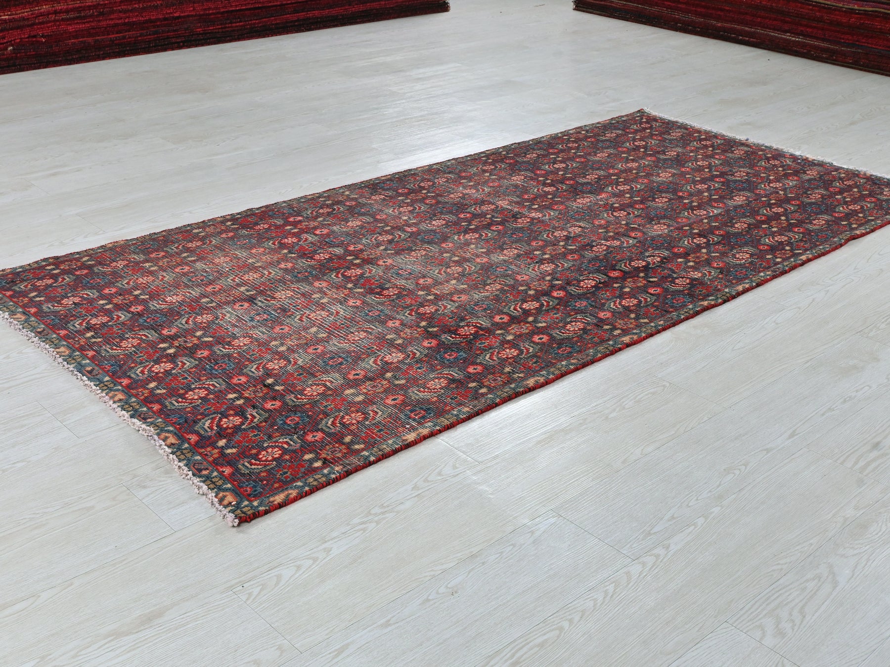 This is a hand-knotted, one-of-a-kind vintage rug. Due to the nature of this piece, there may be slight imperfections in its wear, shape, dimensions, and color. All of our rugs are professionally cleaned and repaired.