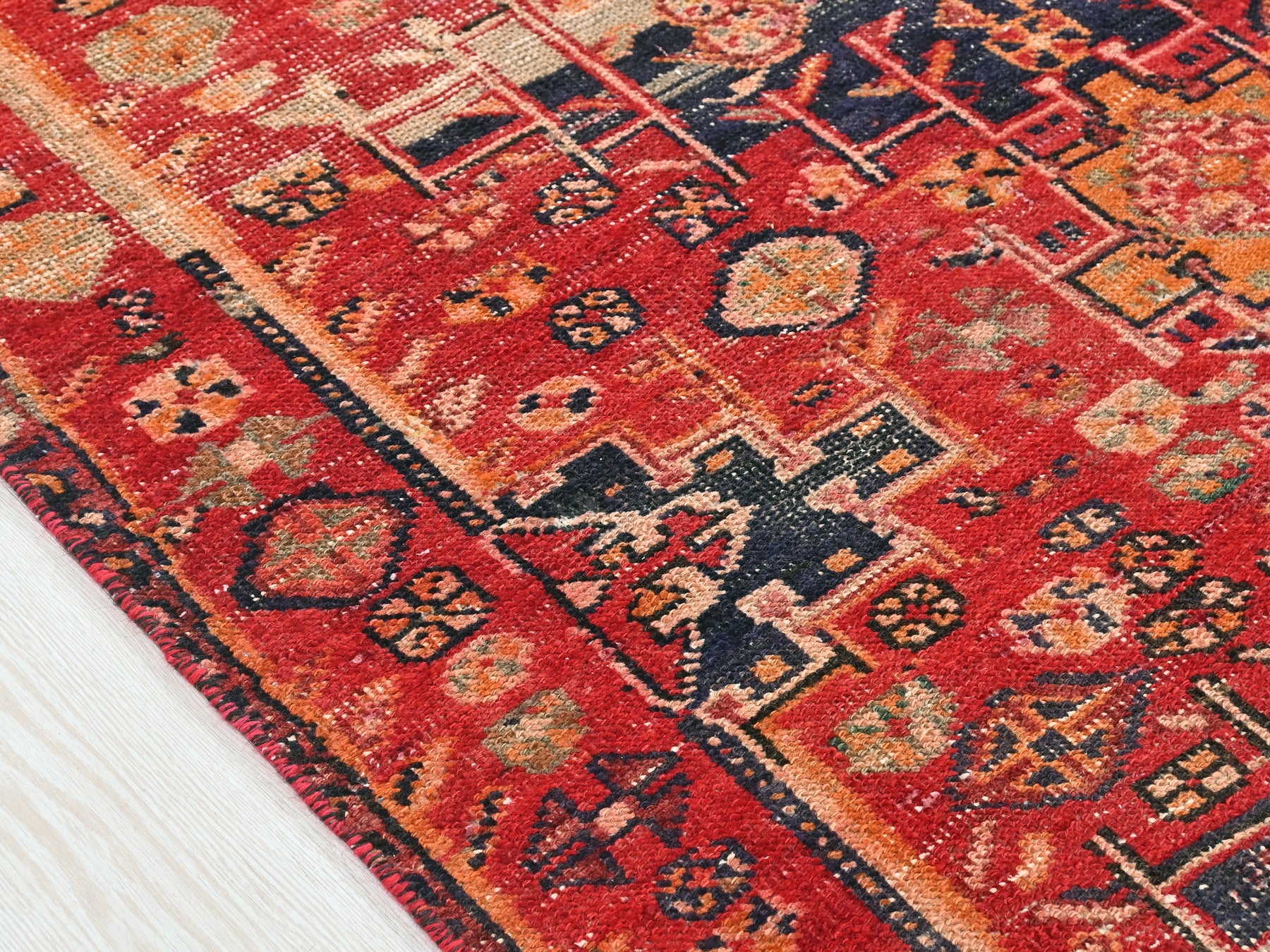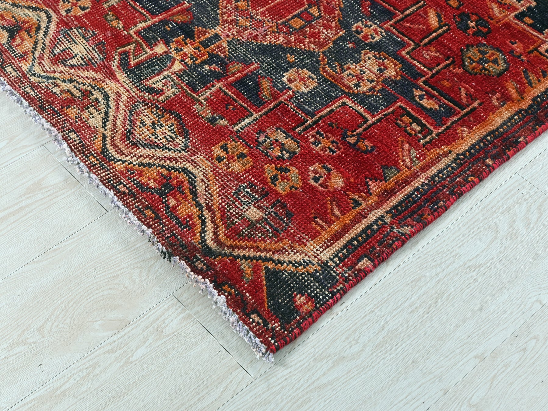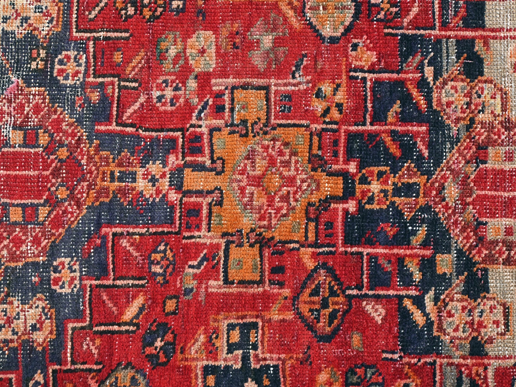 This is a hand-knotted, one-of-a-kind vintage rug. Due to the nature of this piece, there may be slight imperfections in its wear, shape, dimensions, and color. All of our rugs are professionally cleaned and repaired.