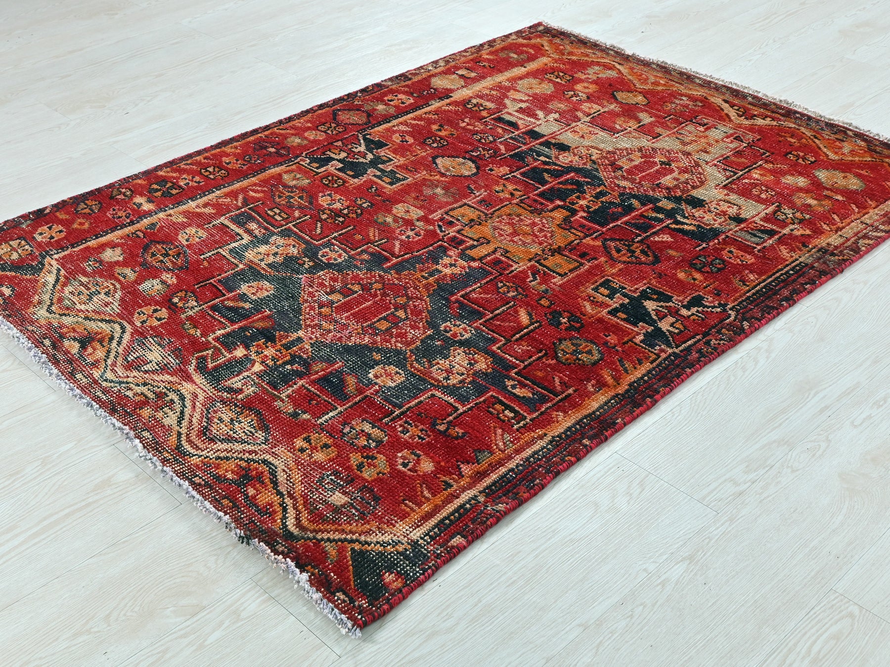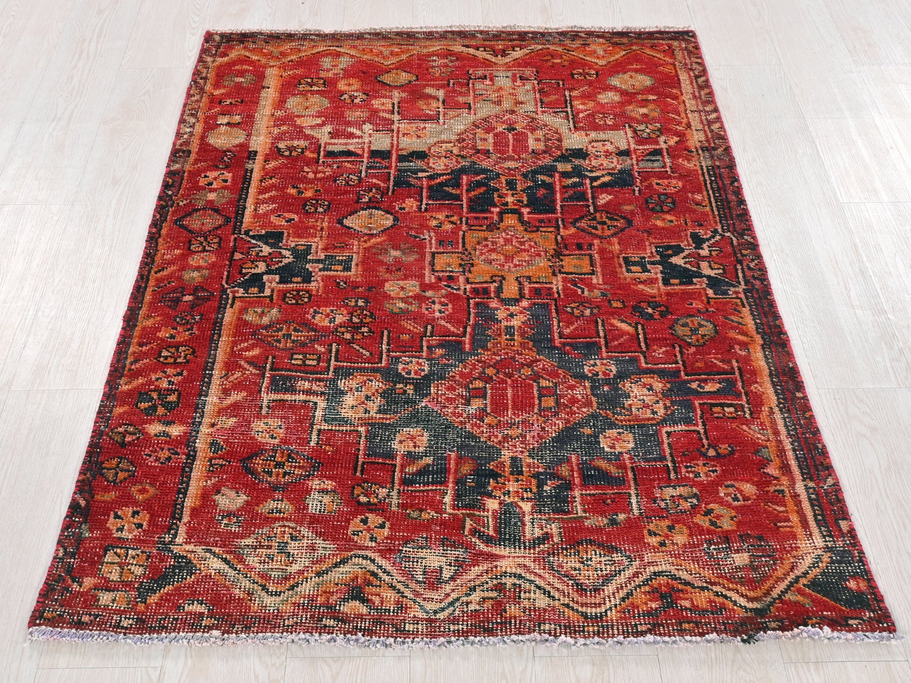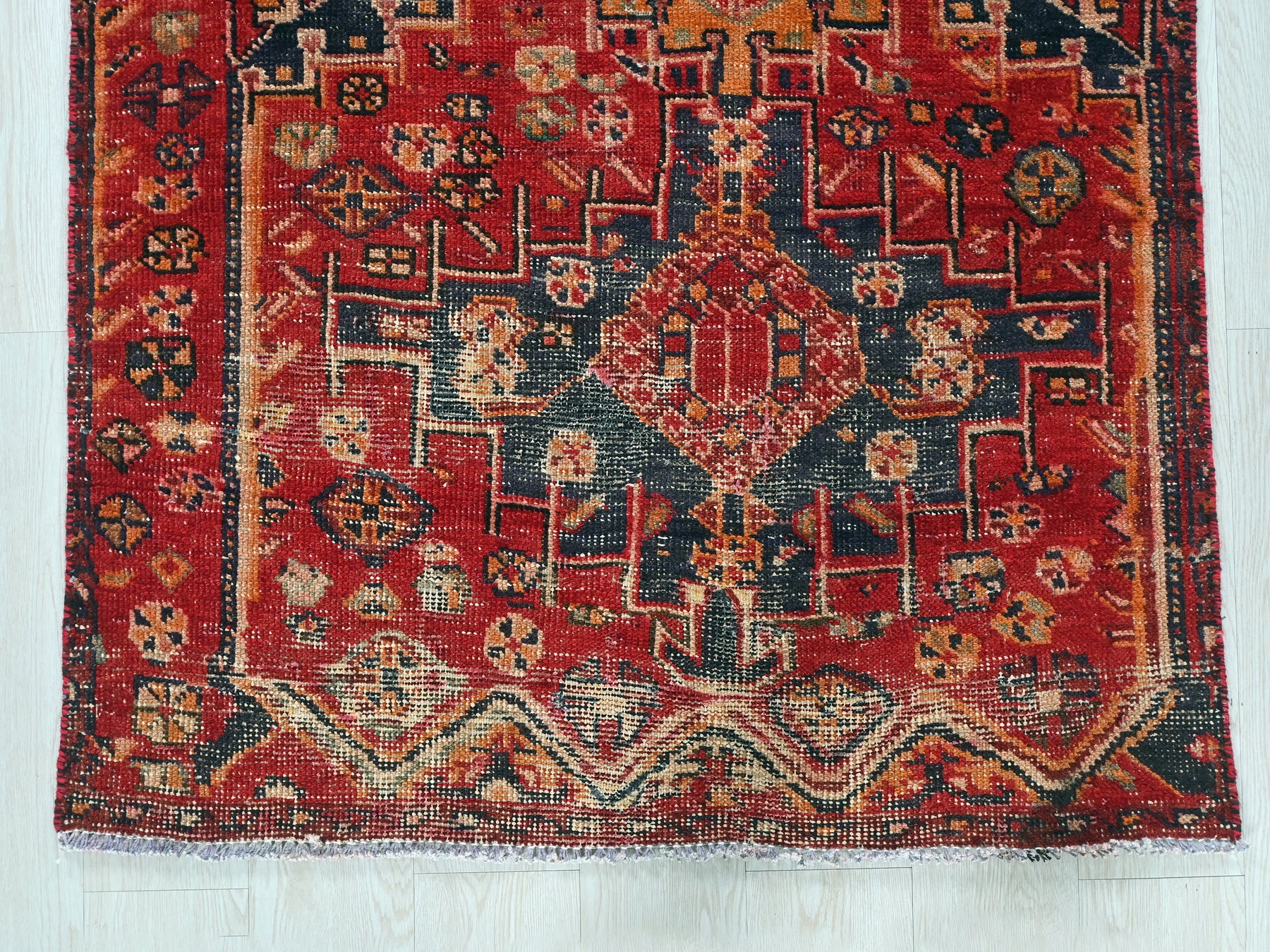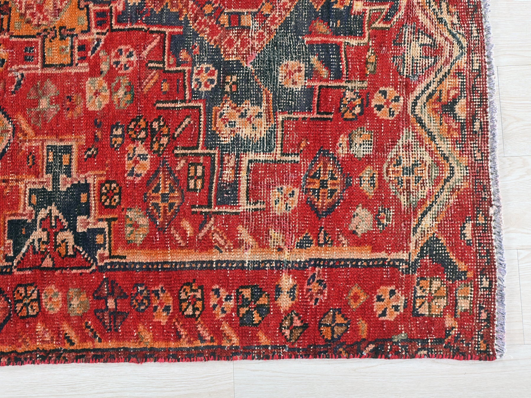 This is a hand-knotted, one-of-a-kind vintage rug. Due to the nature of this piece, there may be slight imperfections in its wear, shape, dimensions, and color. All of our rugs are professionally cleaned and repaired.
