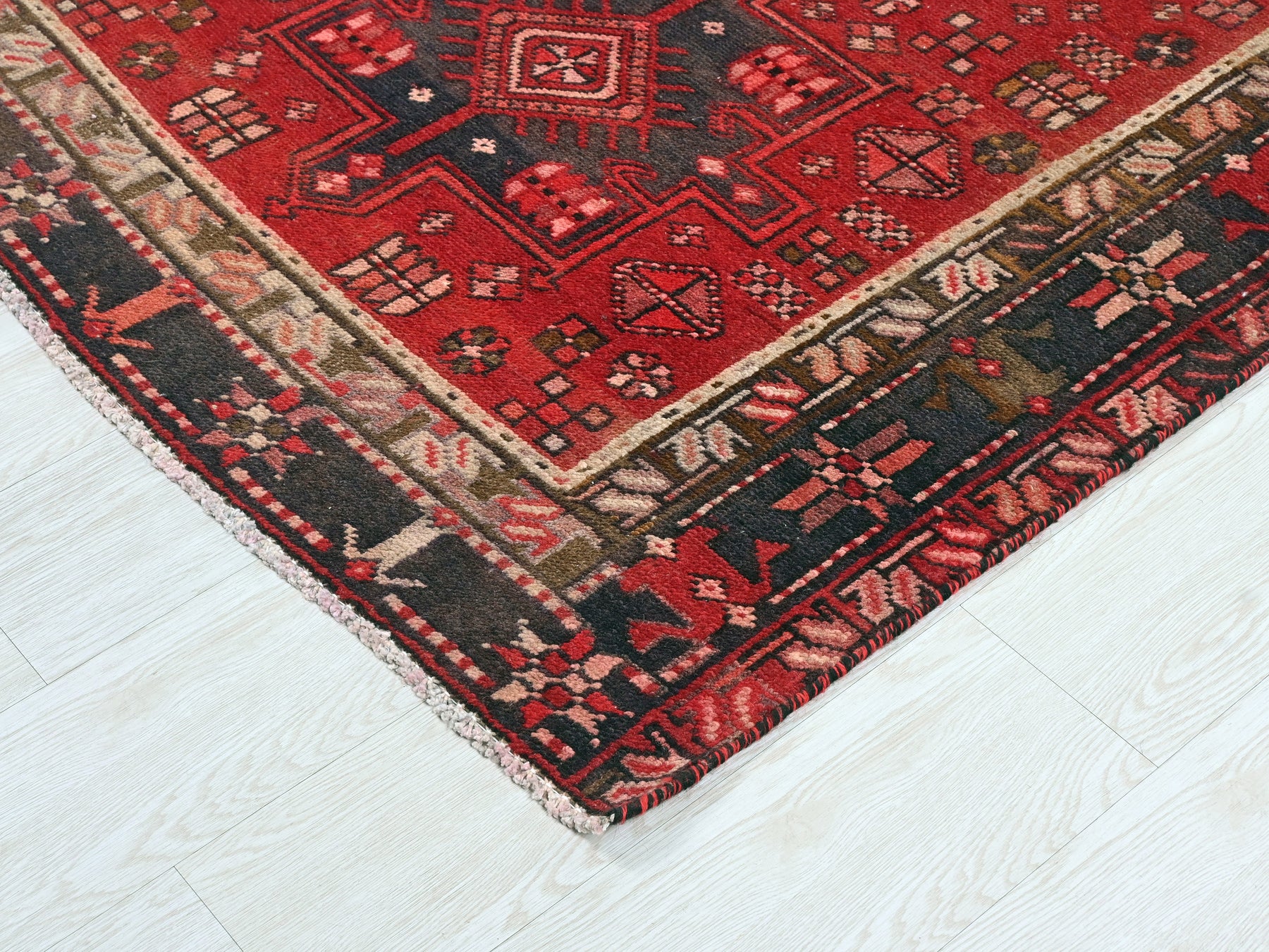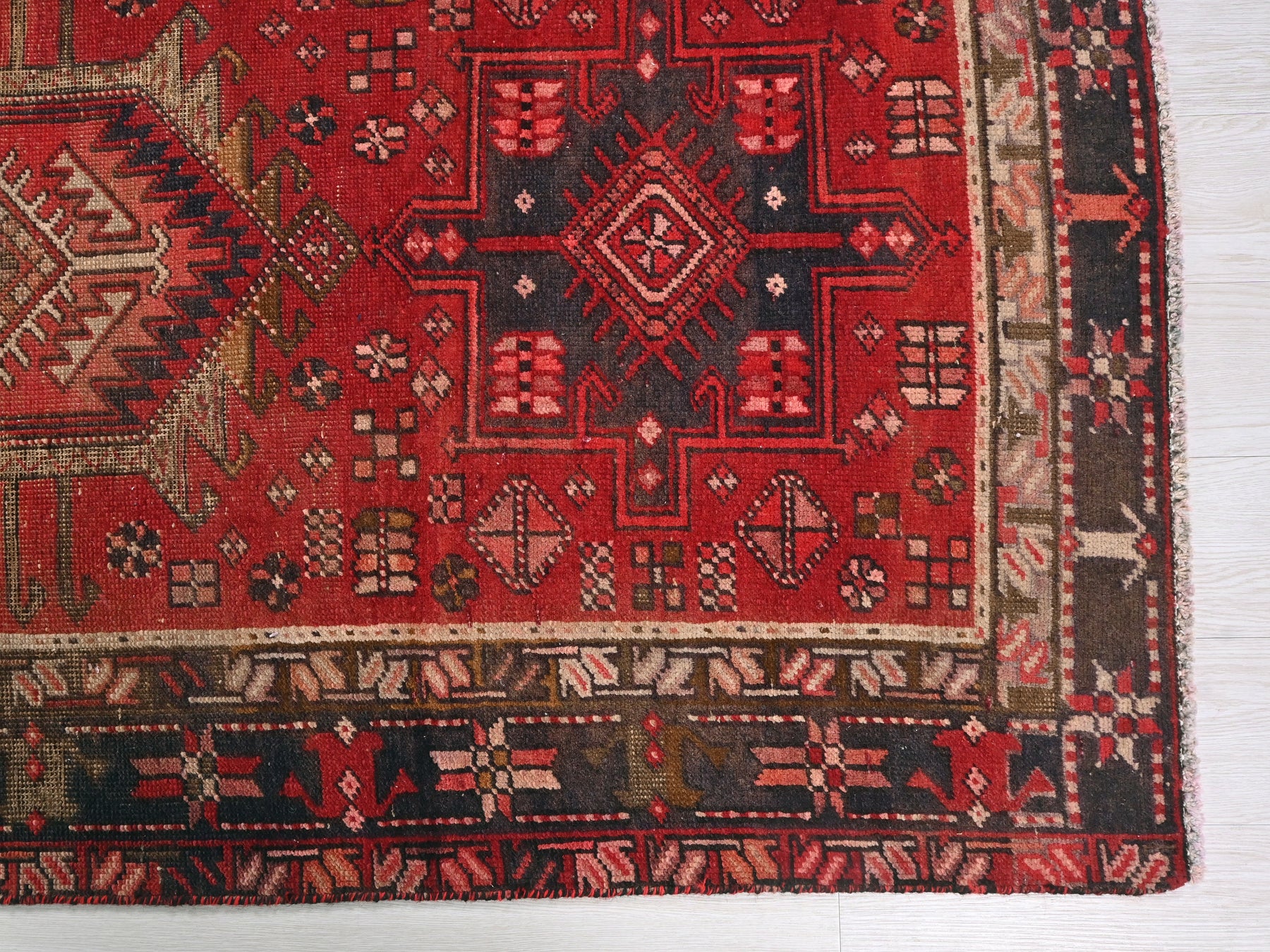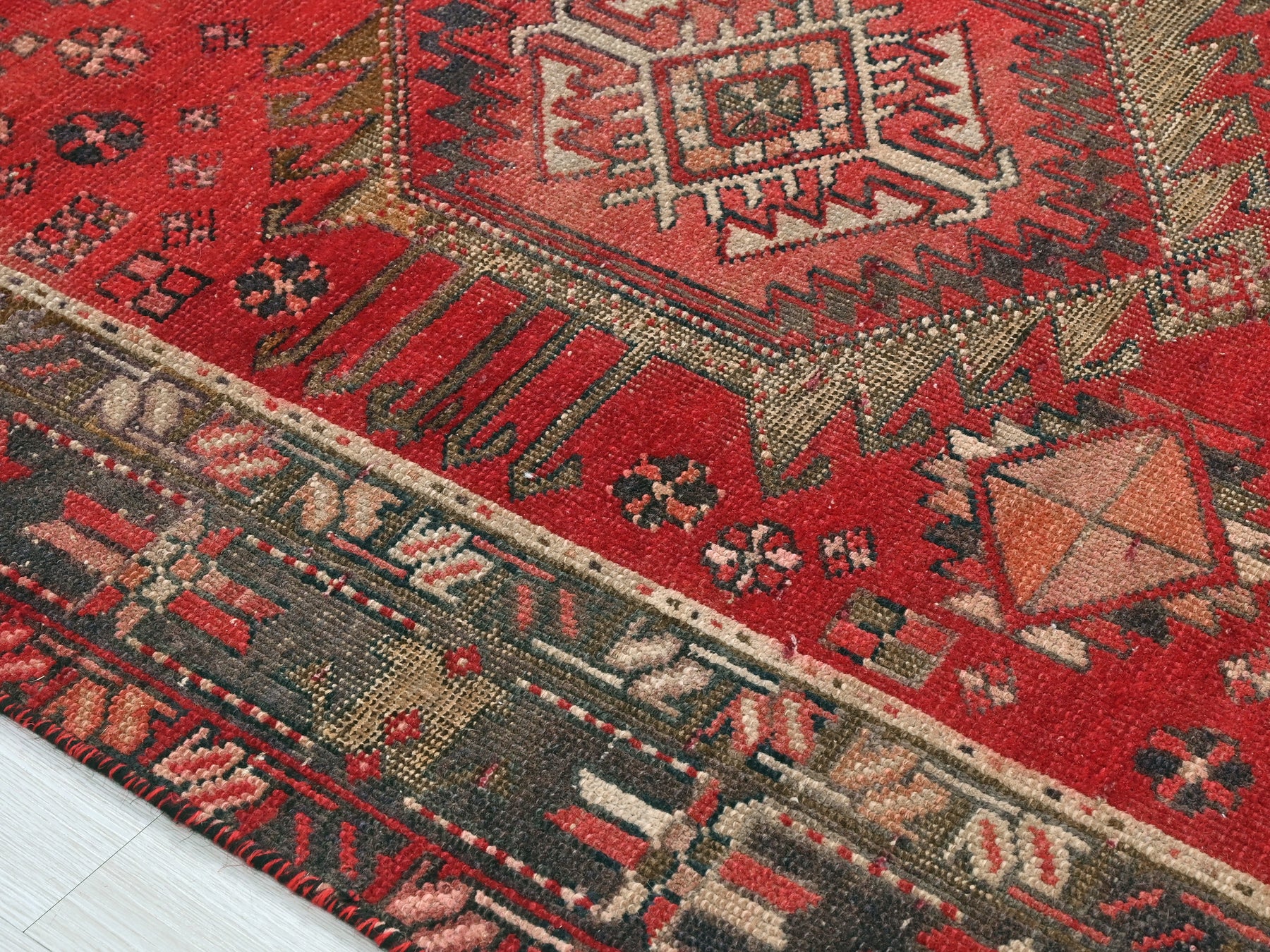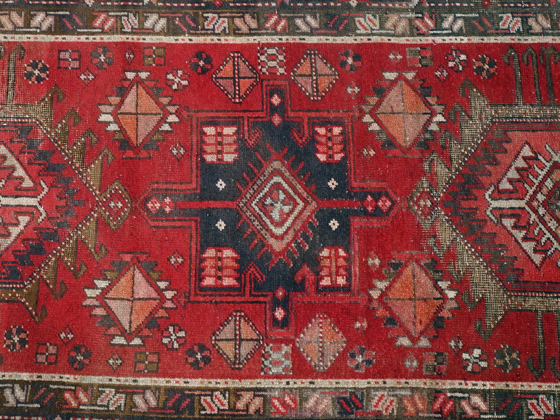 This is a hand-knotted, one-of-a-kind vintage rug. Due to the nature of this piece, there may be slight imperfections in its wear, shape, dimensions, and color. All of our rugs are professionally cleaned and repaired.