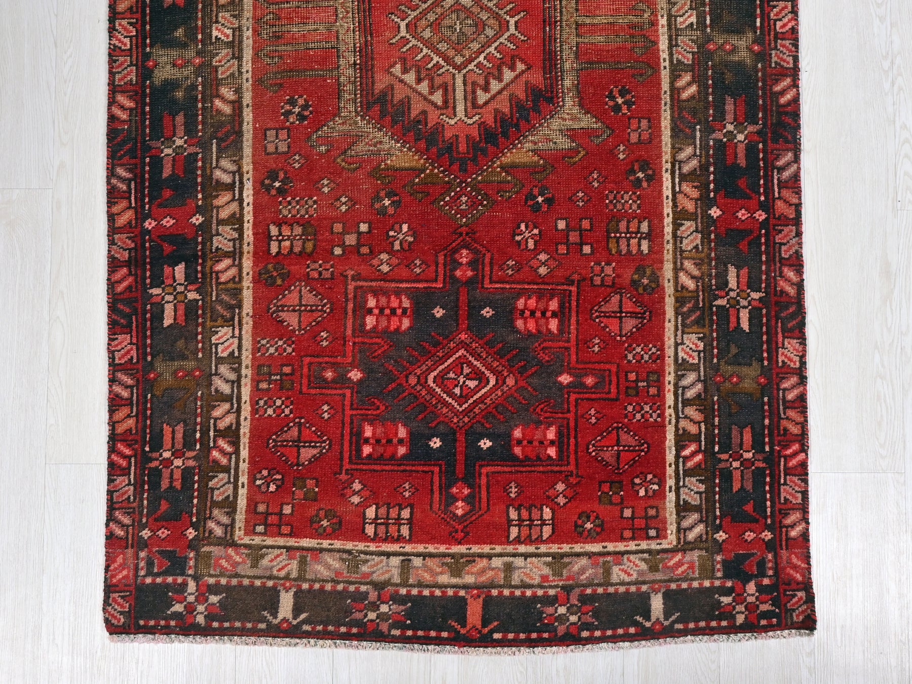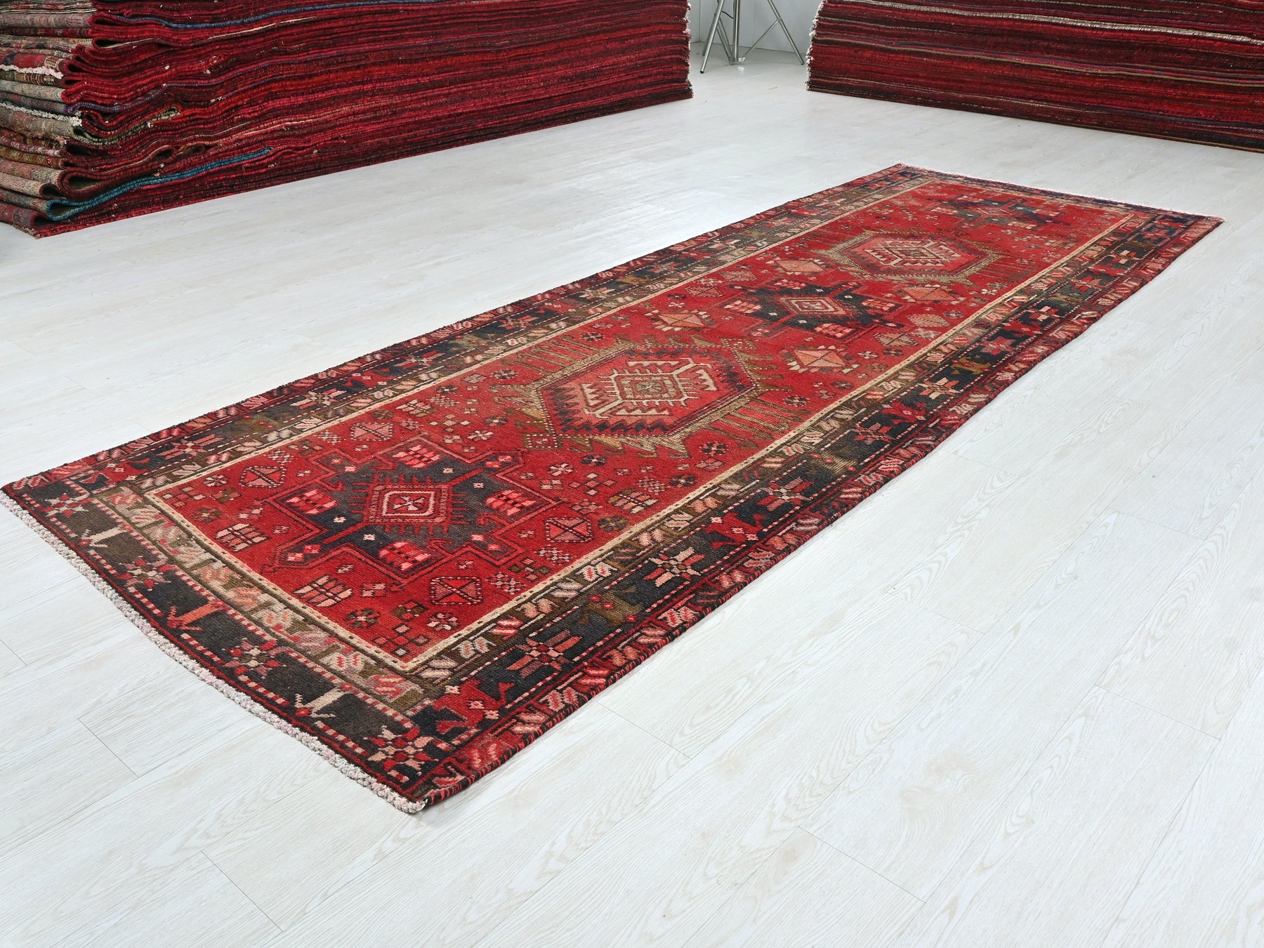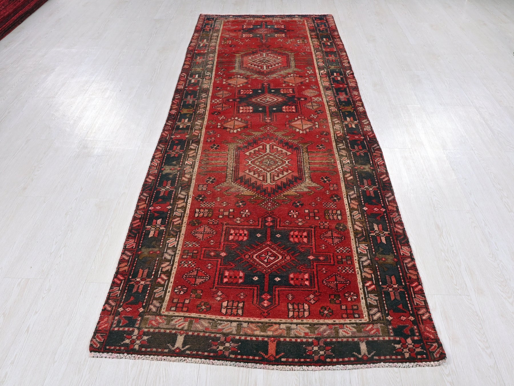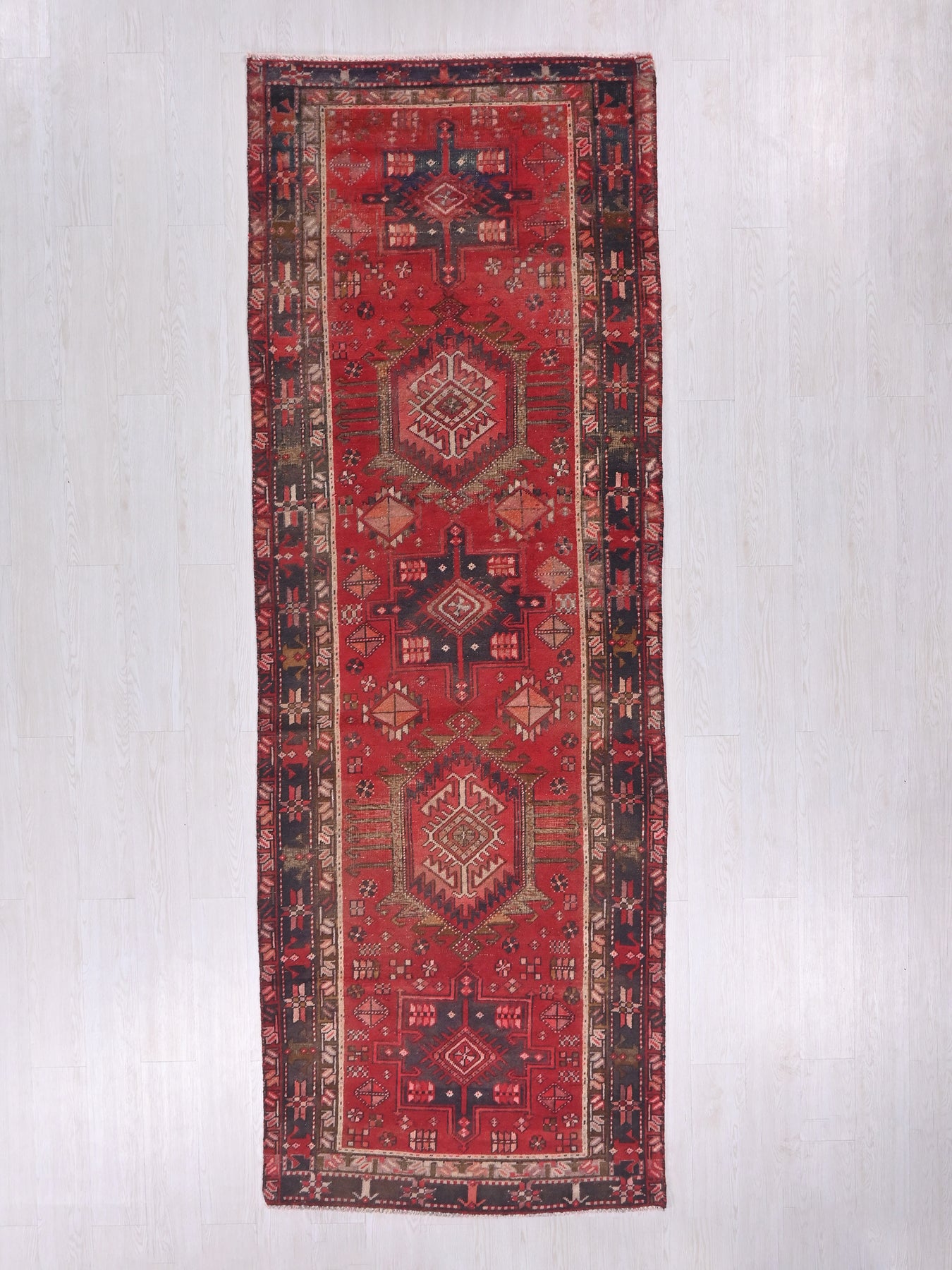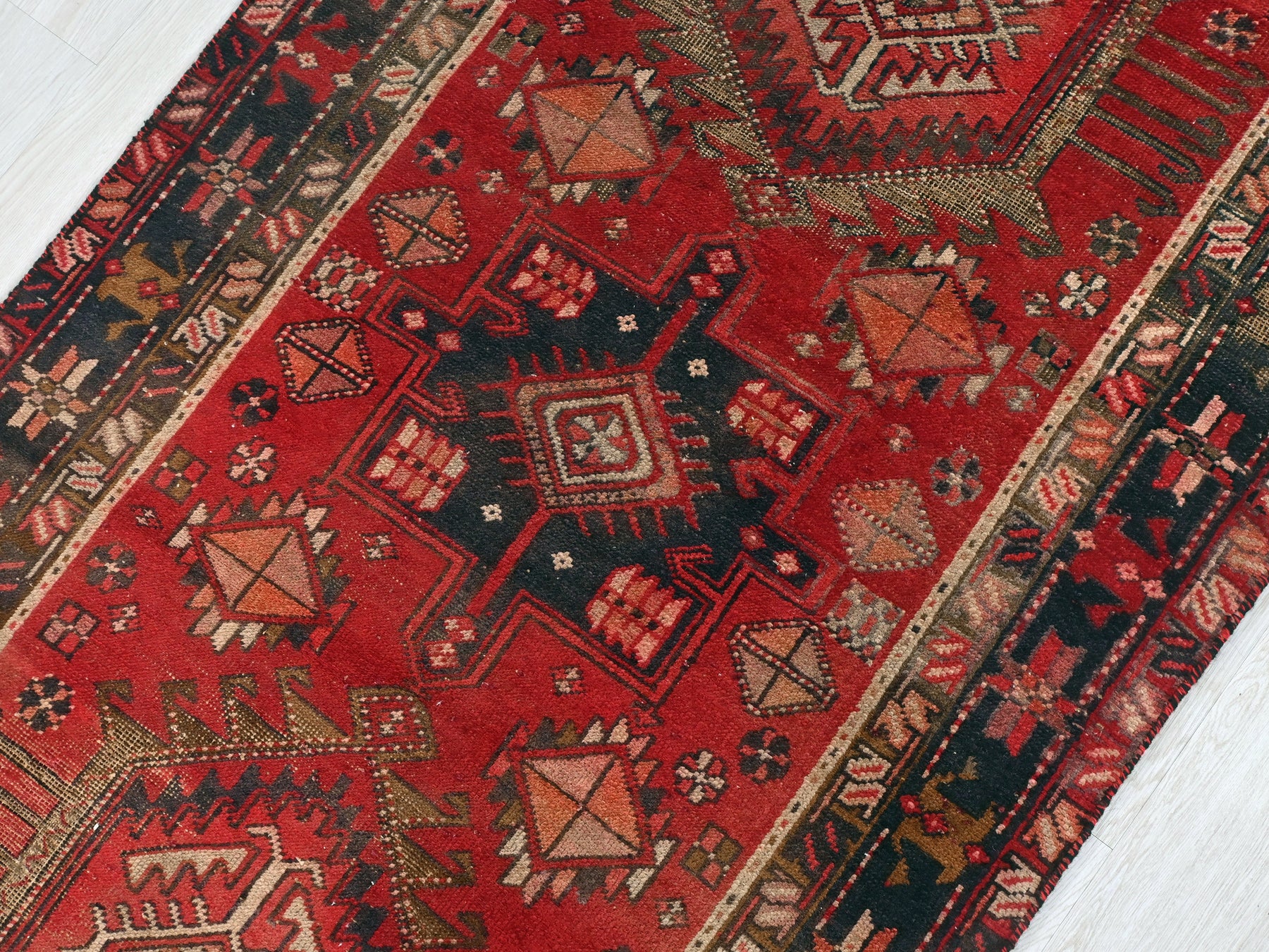 This is a hand-knotted, one-of-a-kind vintage rug. Due to the nature of this piece, there may be slight imperfections in its wear, shape, dimensions, and color. All of our rugs are professionally cleaned and repaired.