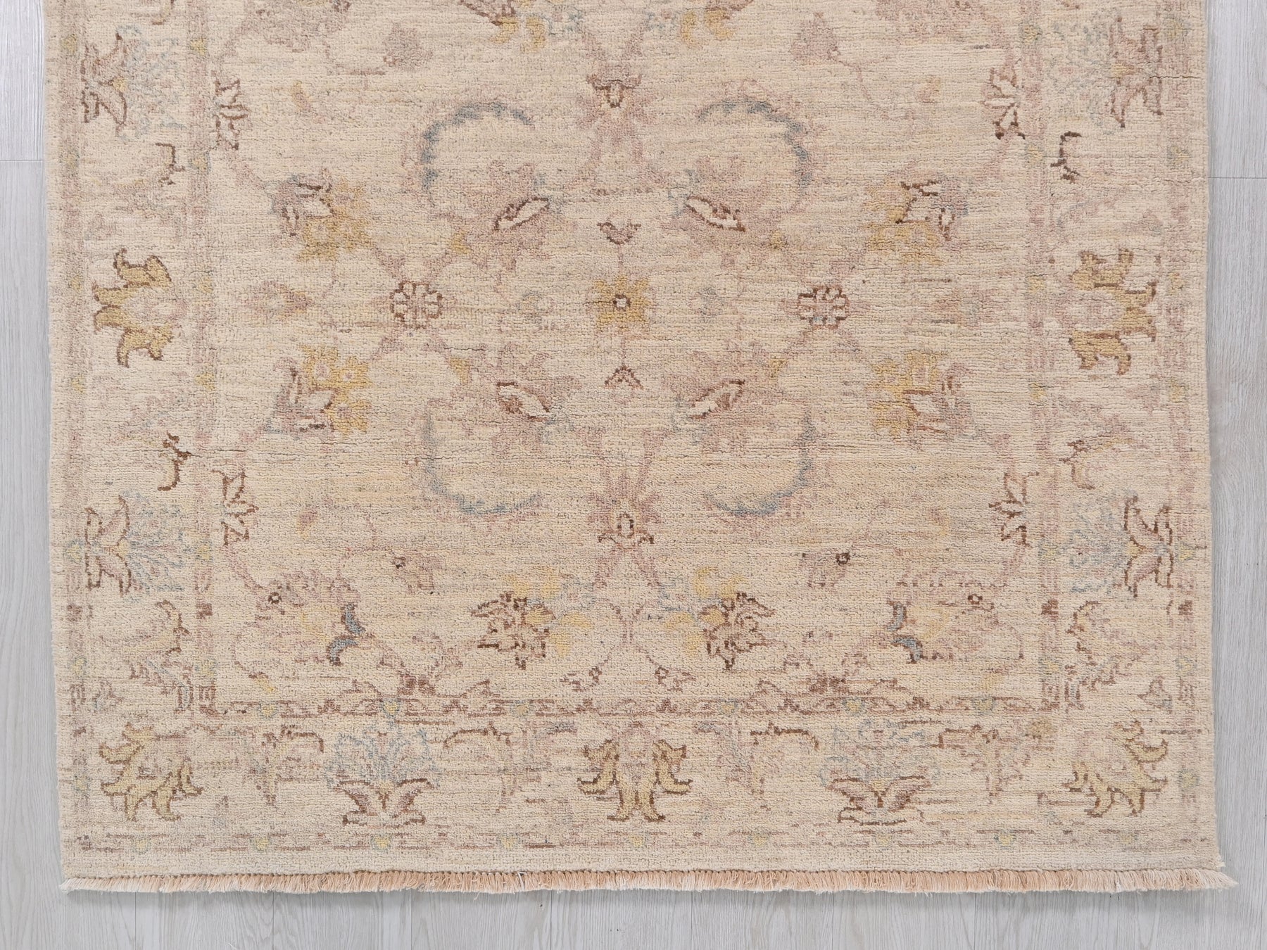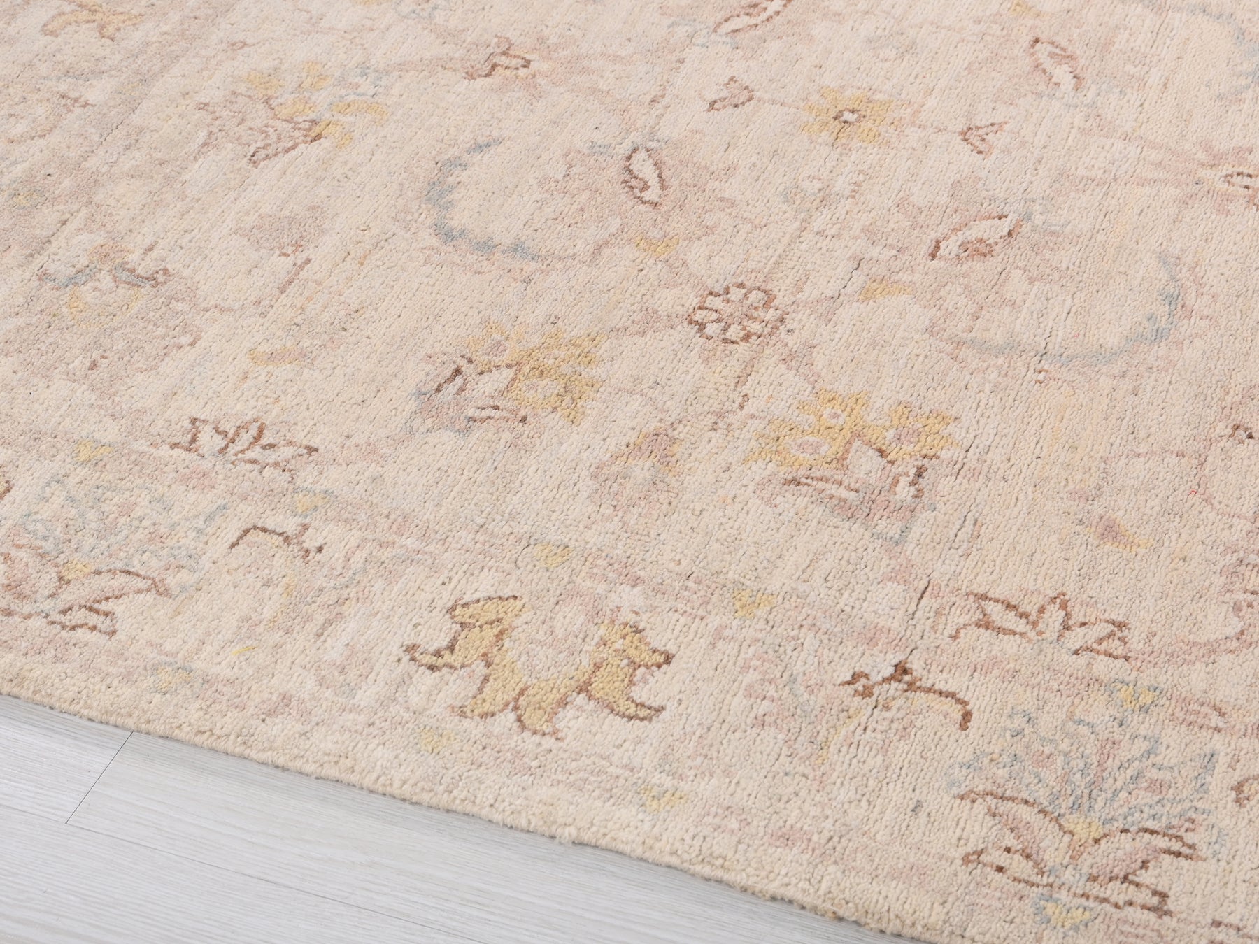 This is a hand-knotted, one-of-a-kind vintage rug. Due to the nature of this piece, there may be slight imperfections in its wear, shape, dimensions, and color. All of our rugs are professionally cleaned and repaired.