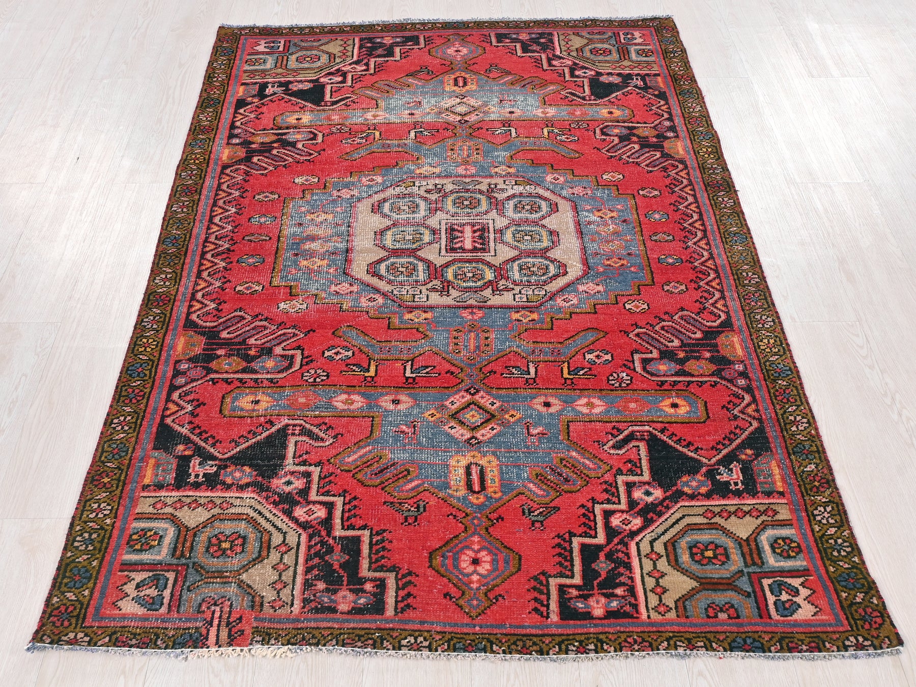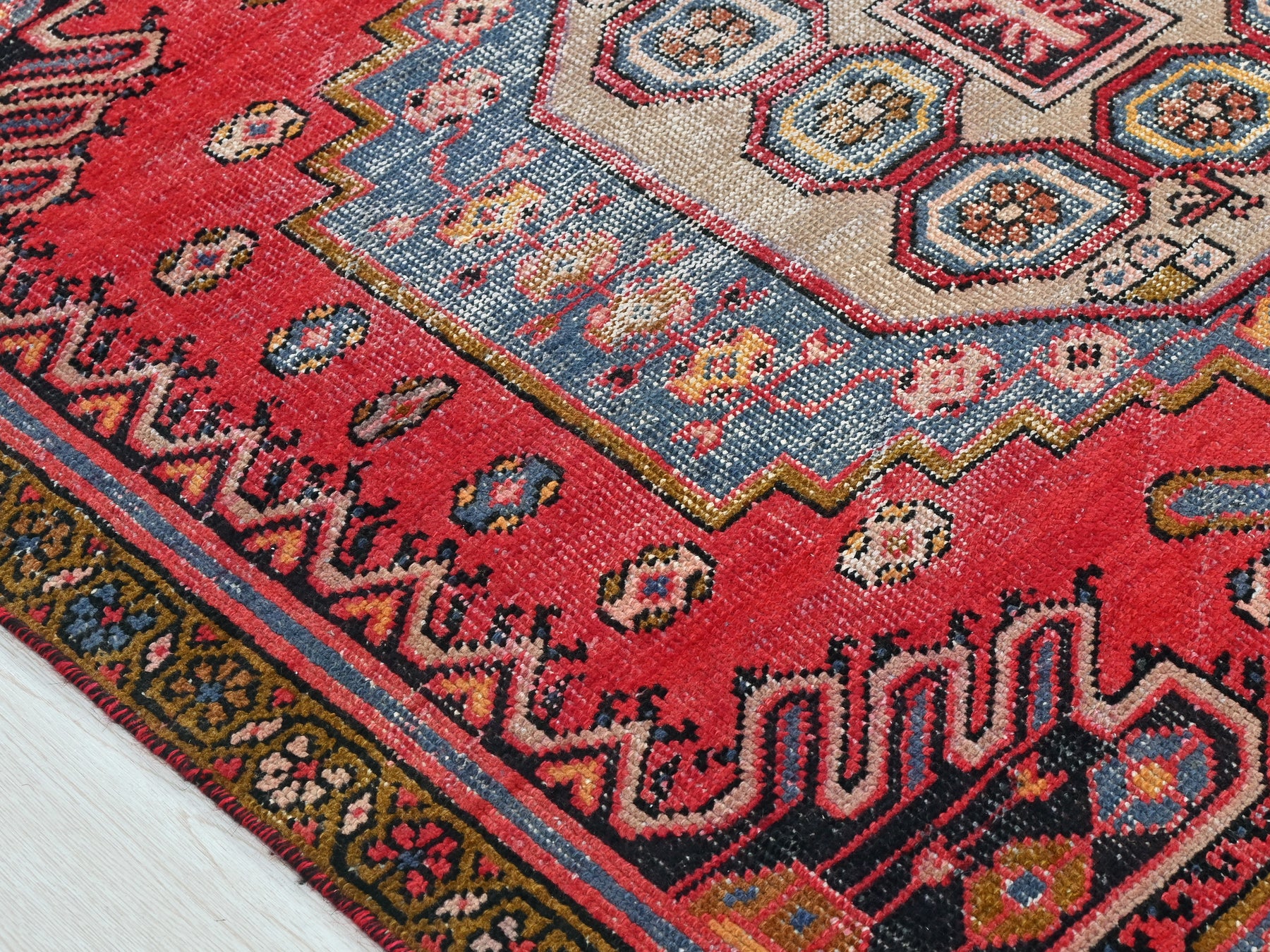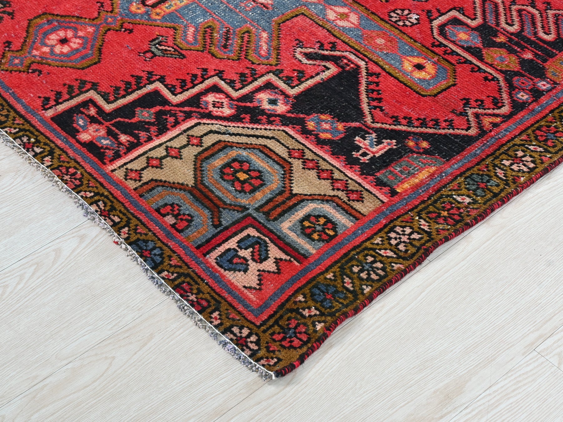 This is a hand-knotted, one-of-a-kind vintage rug. Due to the nature of this piece, there may be slight imperfections in its wear, shape, dimensions, and color. All of our rugs are professionally cleaned and repaired.