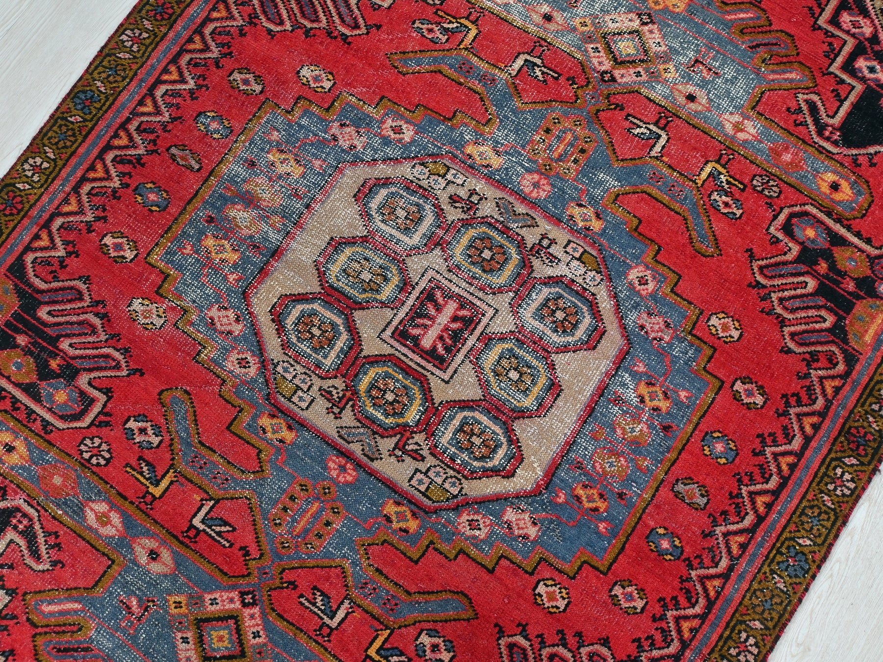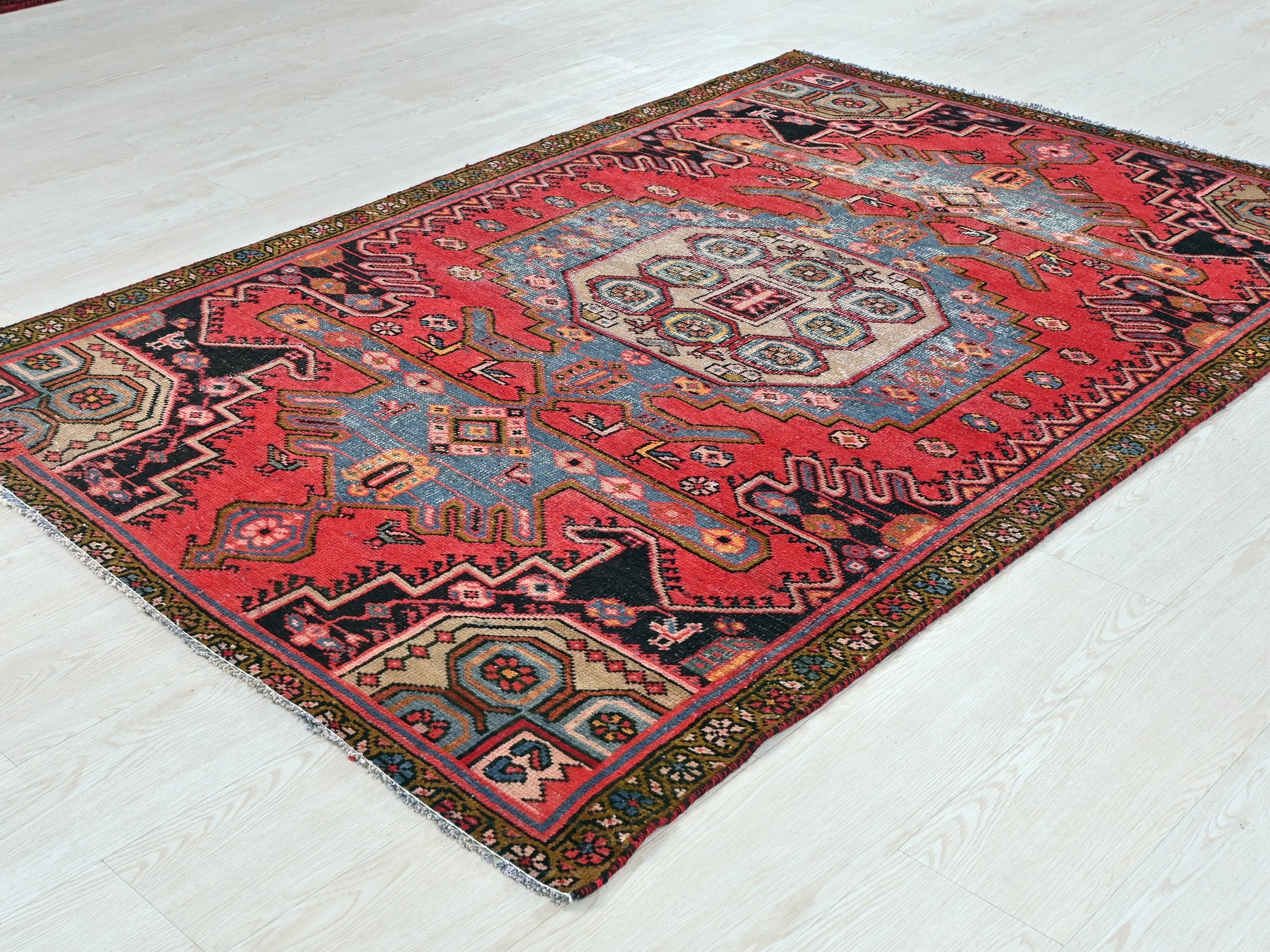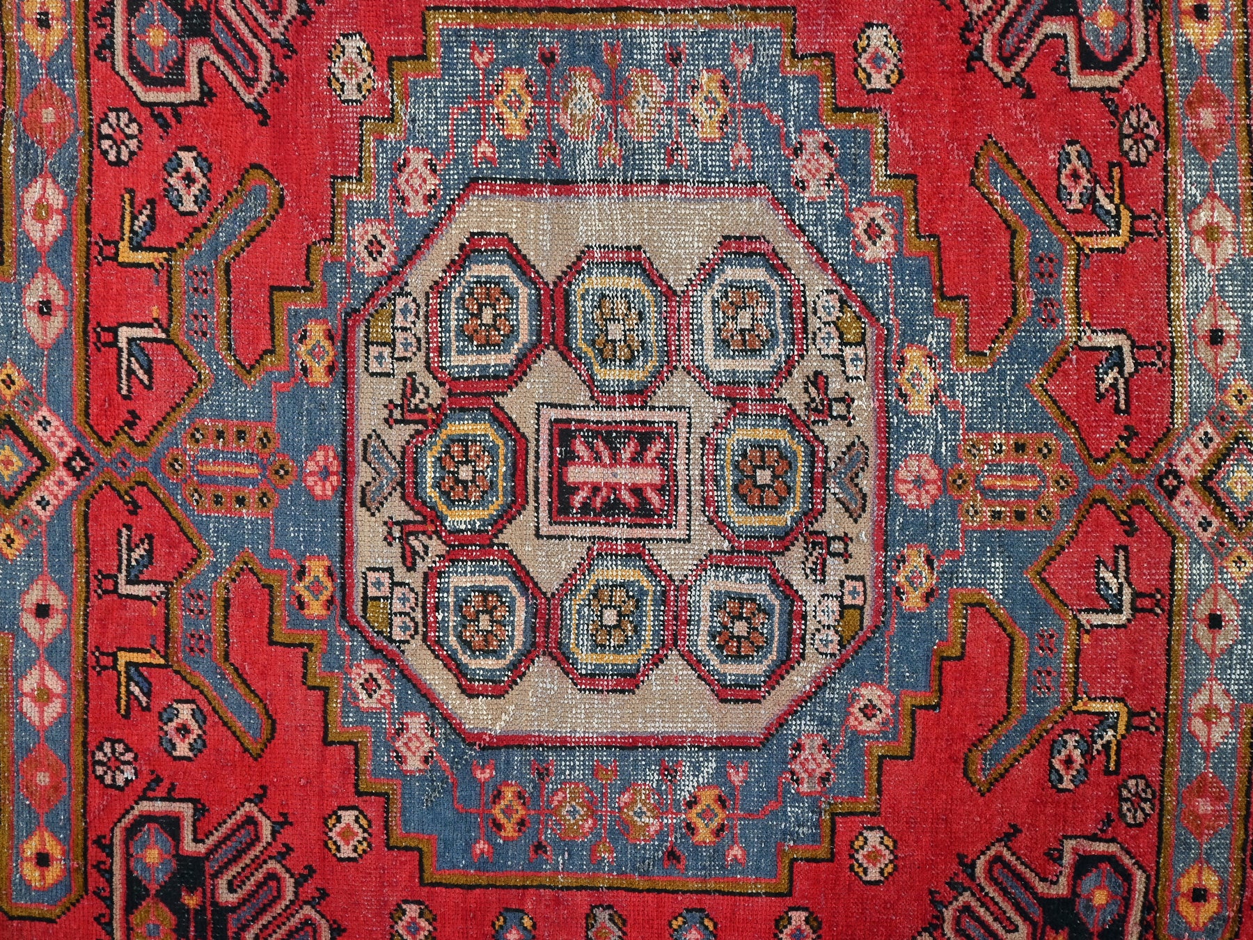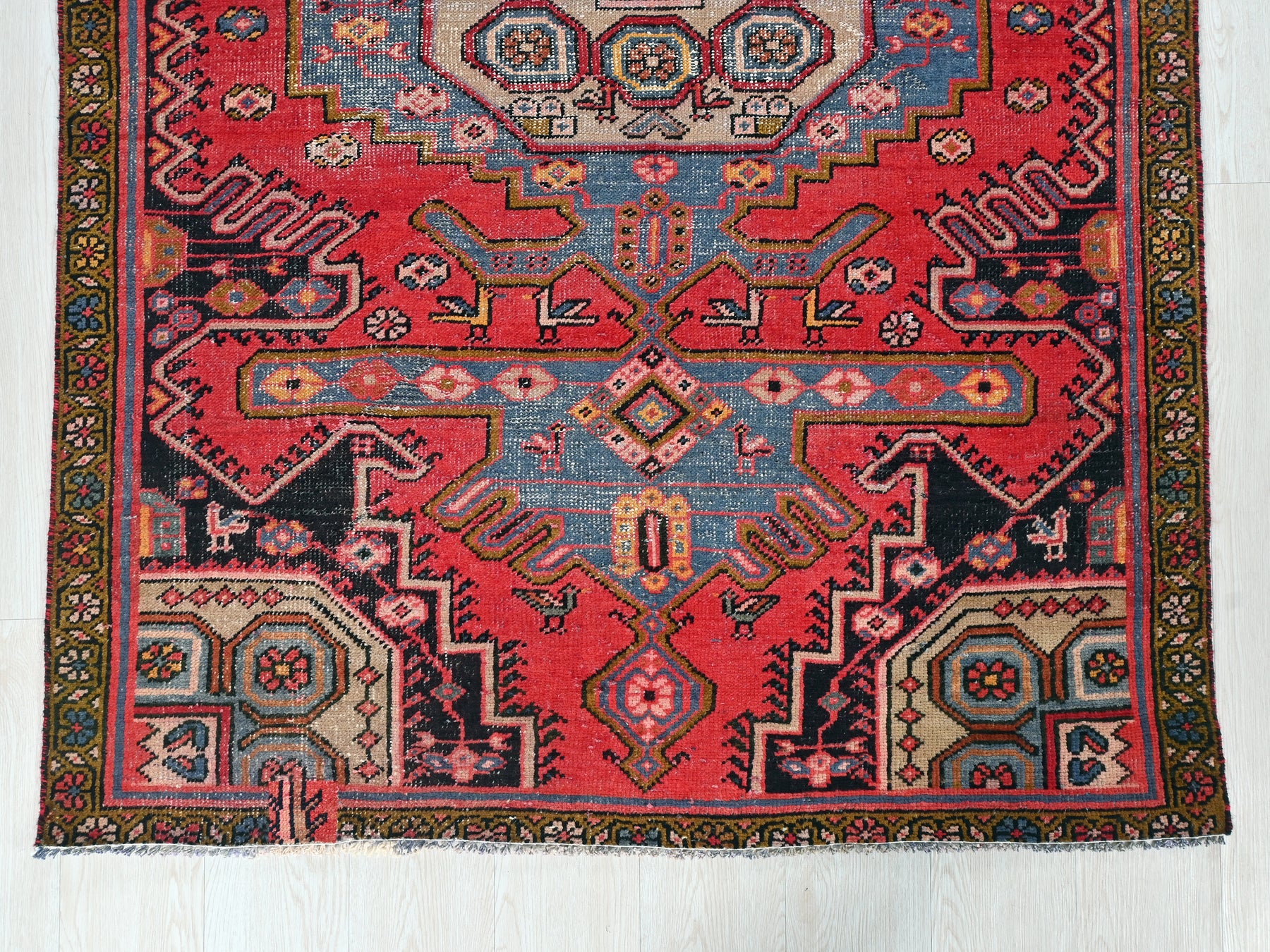 This is a hand-knotted, one-of-a-kind vintage rug. Due to the nature of this piece, there may be slight imperfections in its wear, shape, dimensions, and color. All of our rugs are professionally cleaned and repaired.