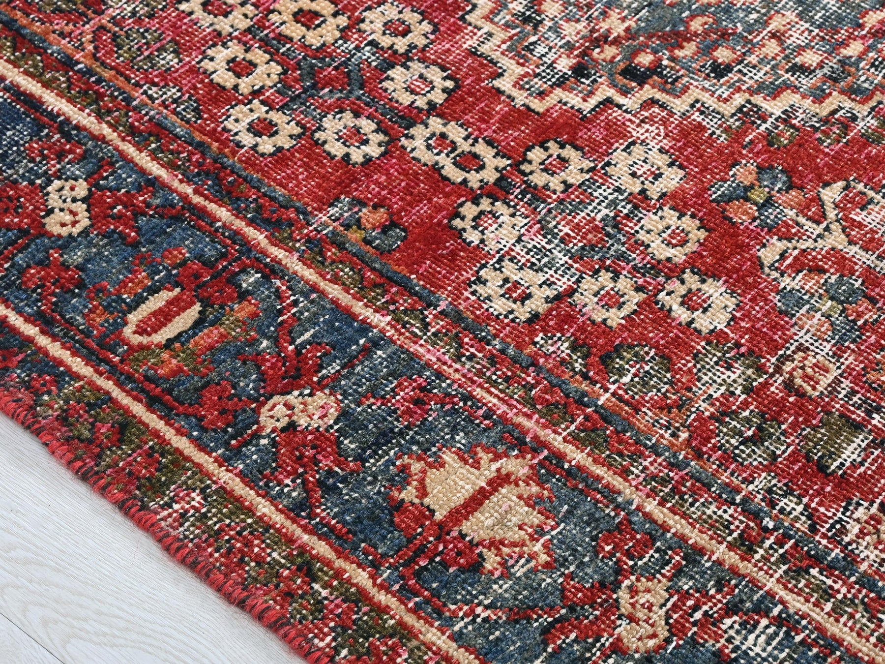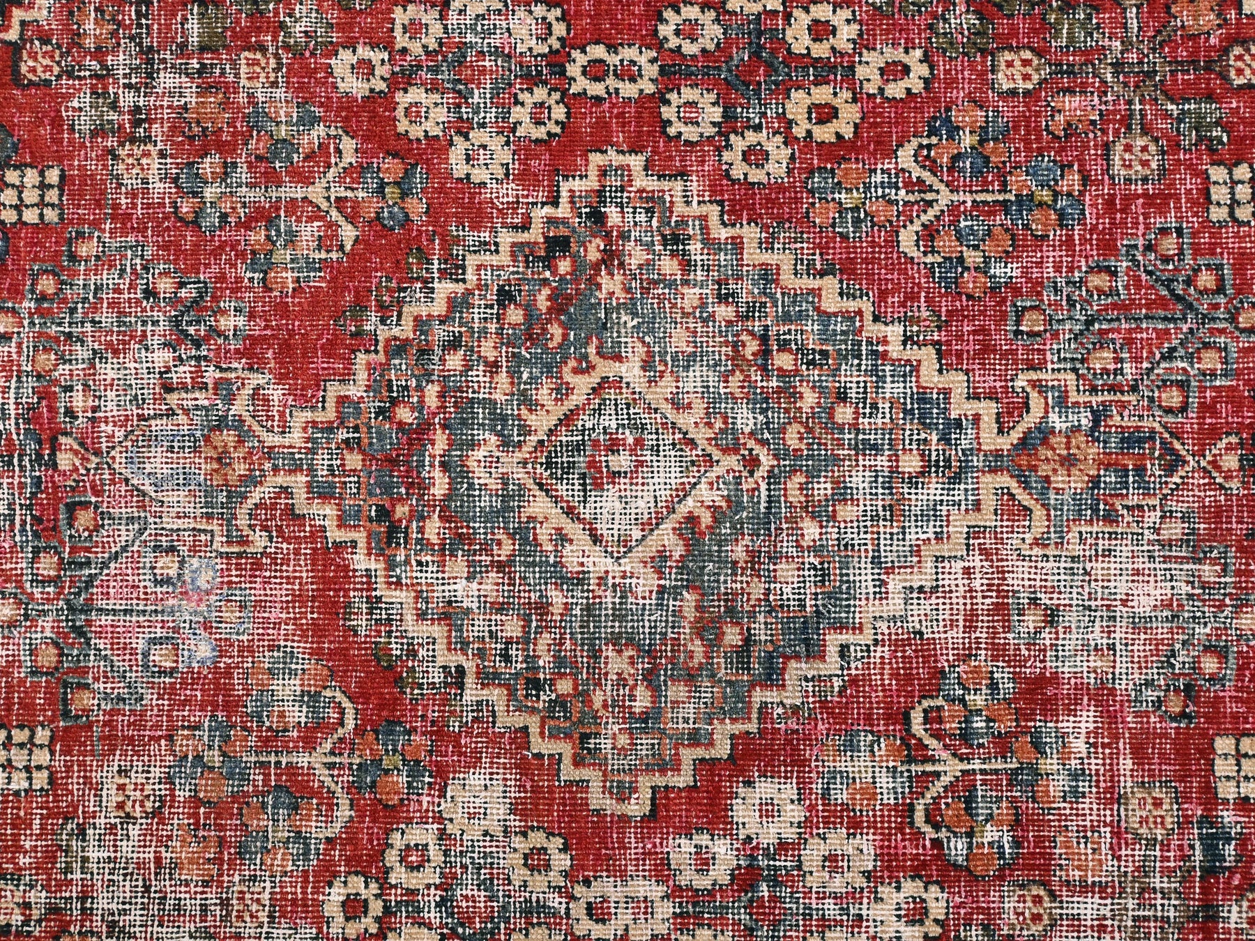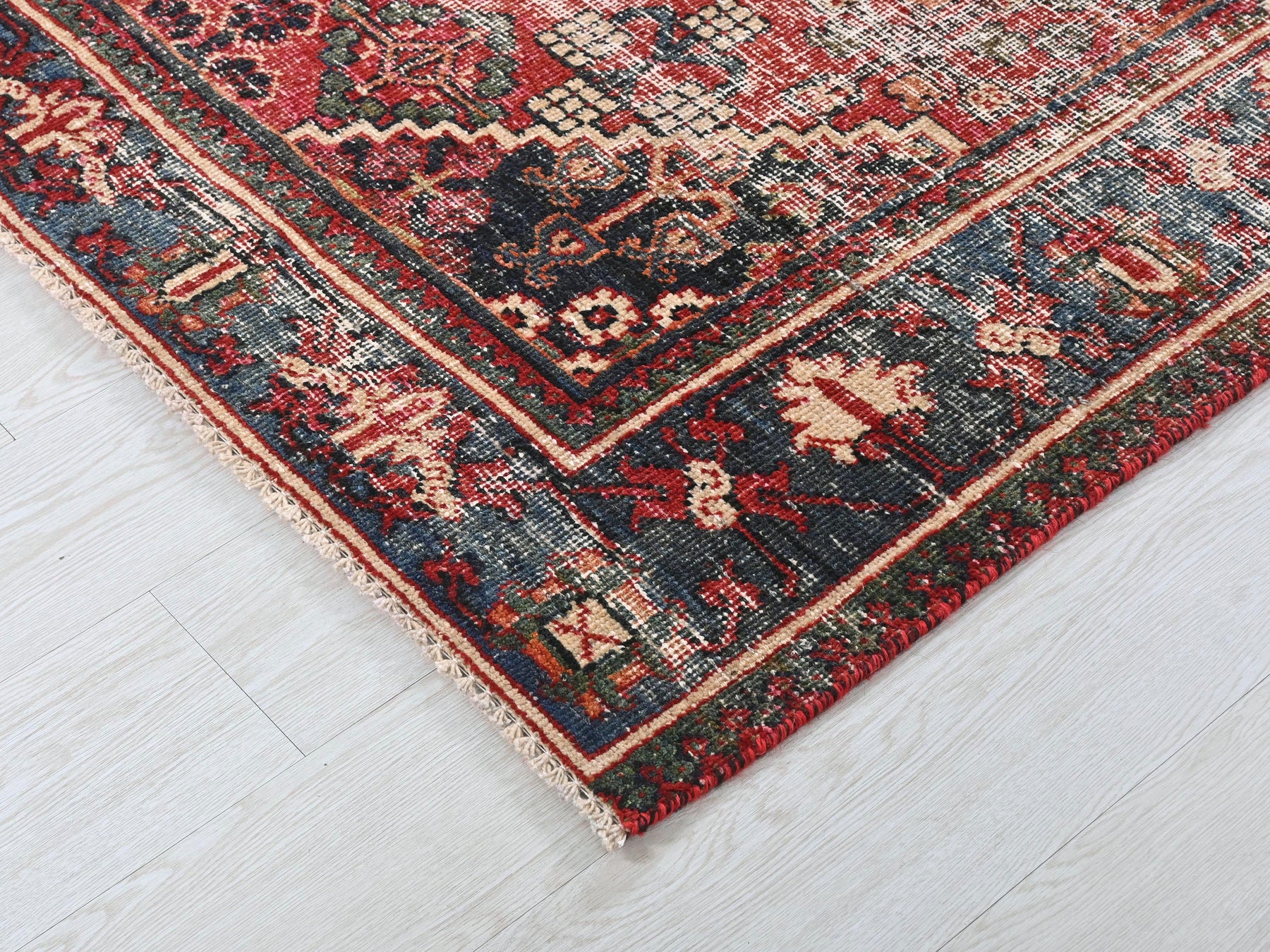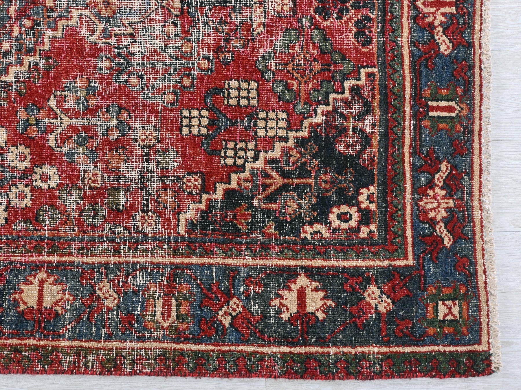 This is a hand-knotted, one-of-a-kind vintage rug. Due to the nature of this piece, there may be slight imperfections in its wear, shape, dimensions, and color. All of our rugs are professionally cleaned and repaired.