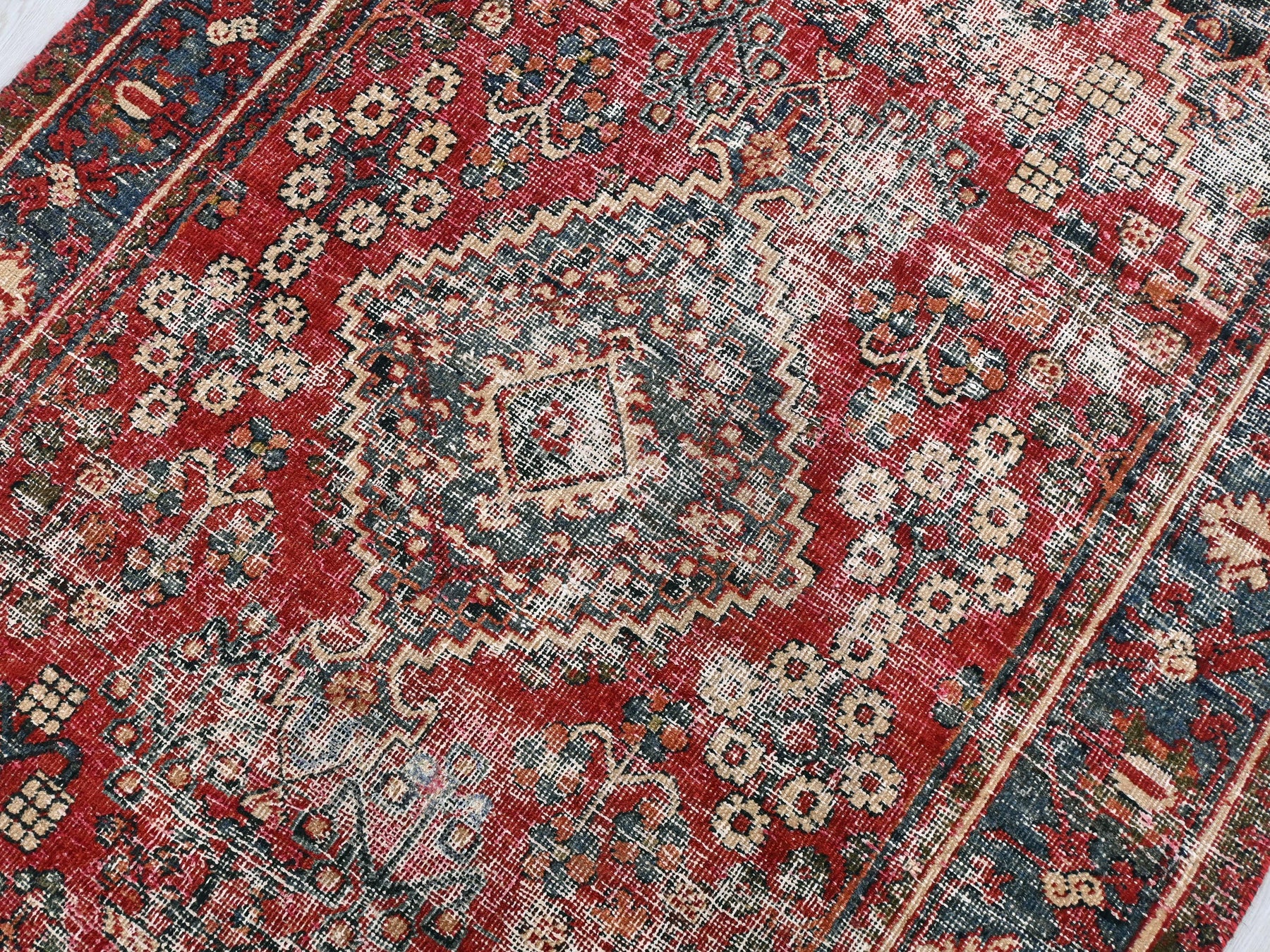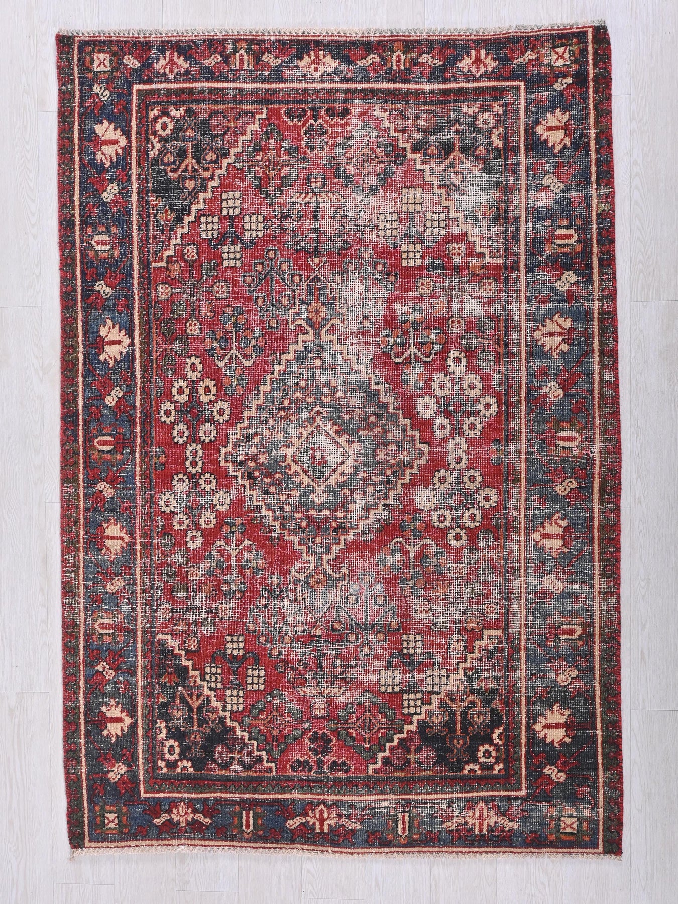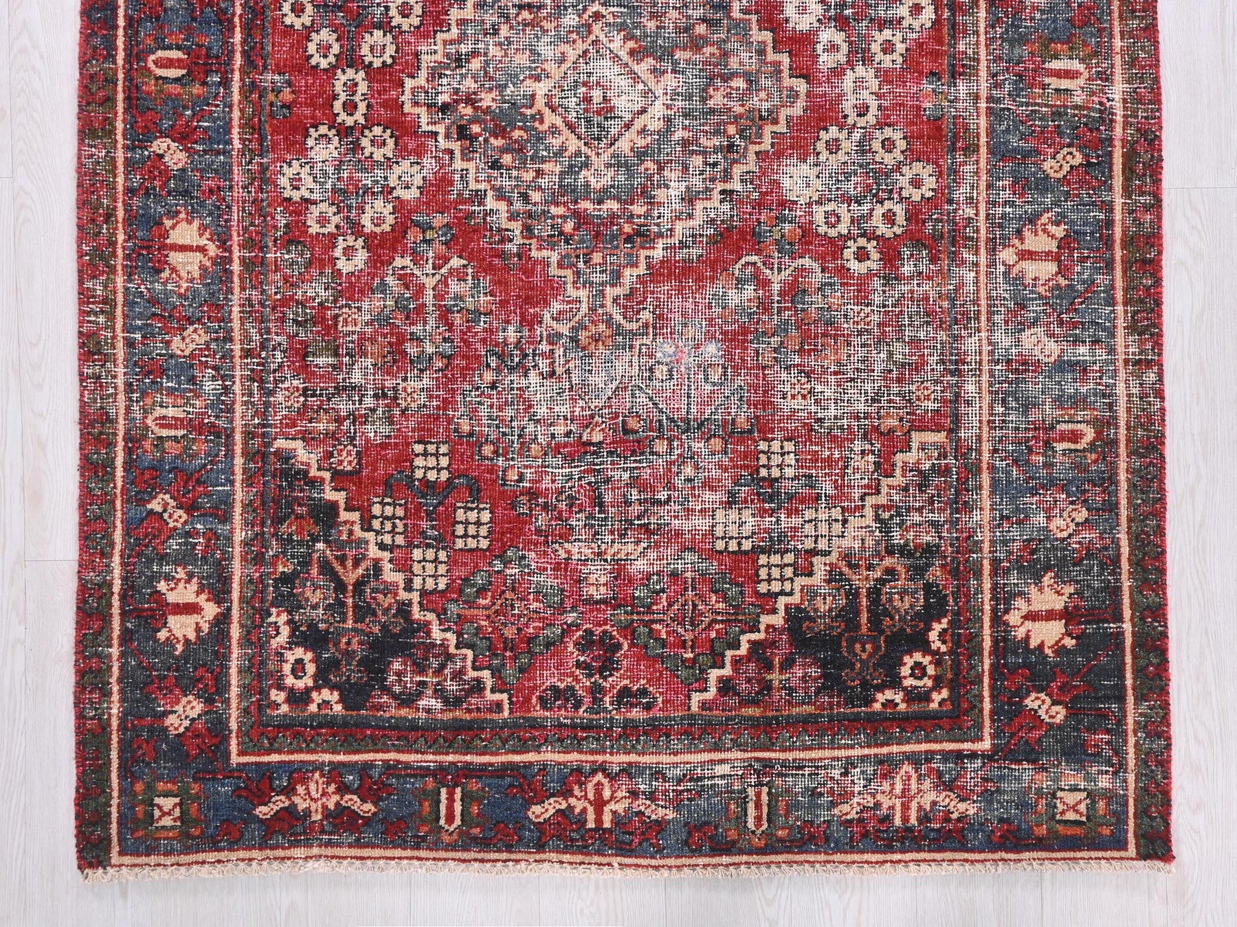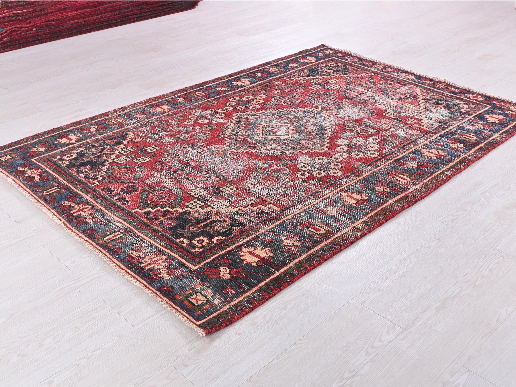 This is a hand-knotted, one-of-a-kind vintage rug. Due to the nature of this piece, there may be slight imperfections in its wear, shape, dimensions, and color. All of our rugs are professionally cleaned and repaired.