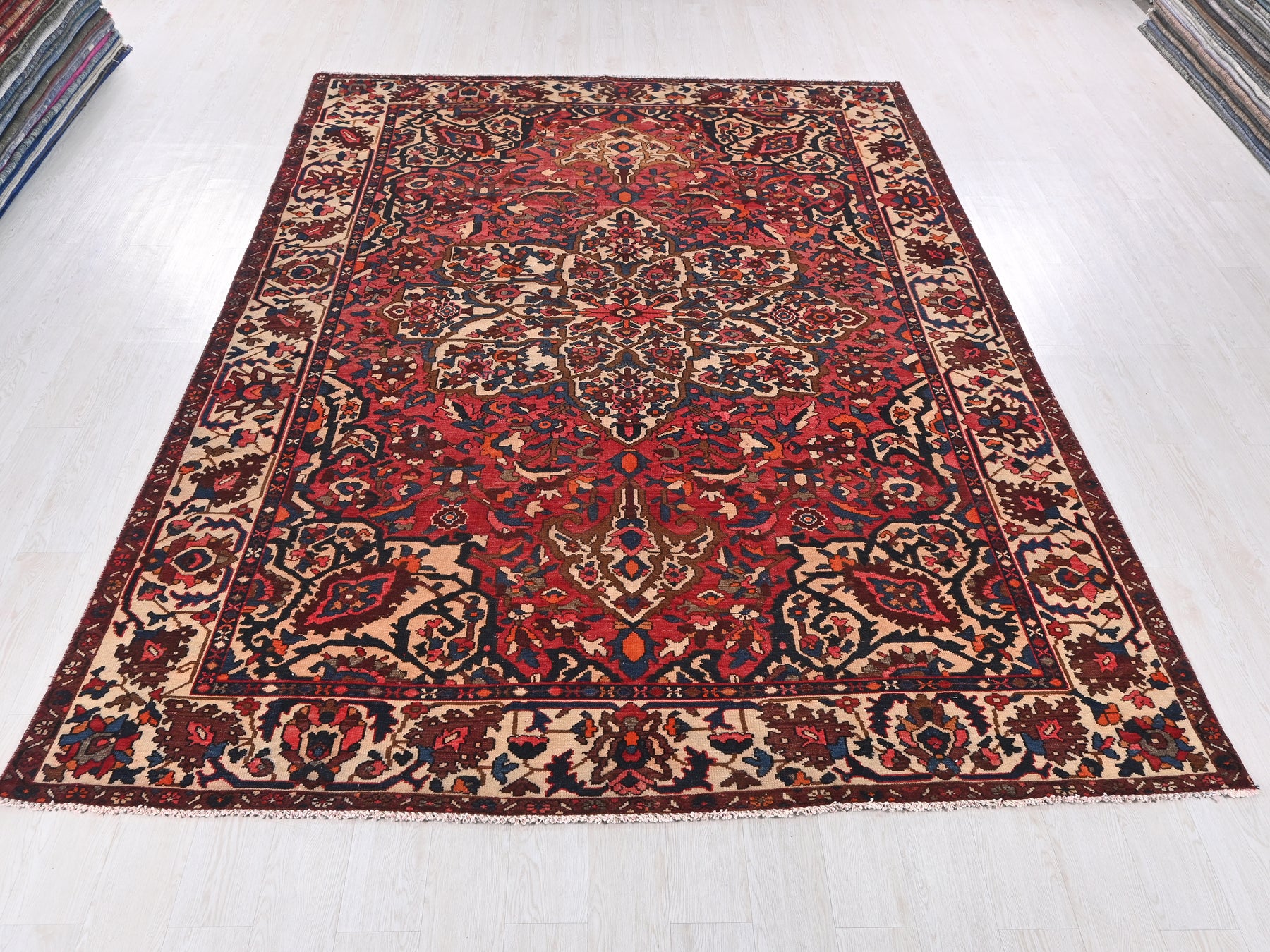 This is a hand-knotted, one-of-a-kind vintage rug. Due to the nature of this piece, there may be slight imperfections in its wear, shape, dimensions, and color. All of our rugs are professionally cleaned and repaired.