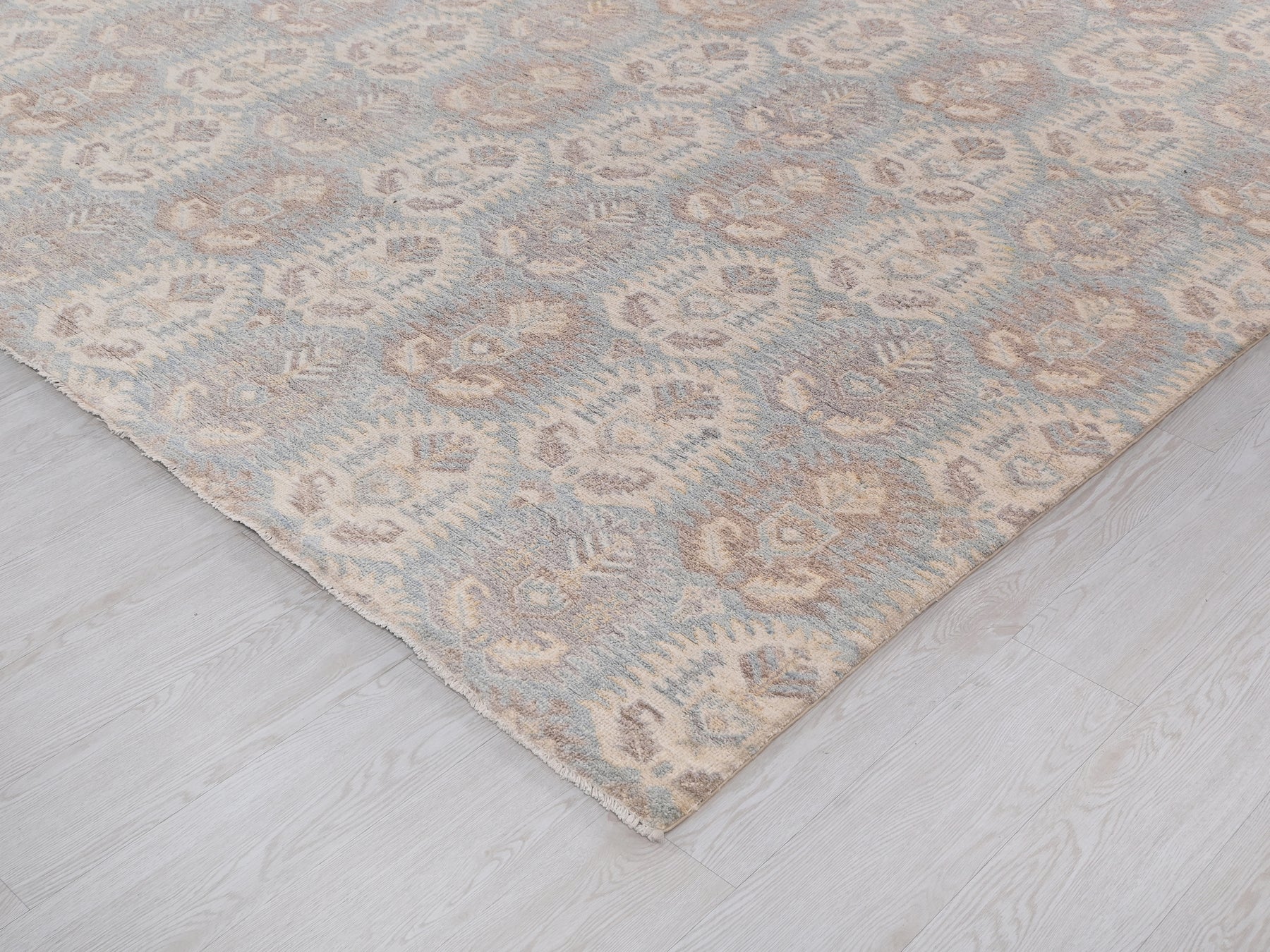 This is a hand-knotted, one-of-a-kind vintage rug. Due to the nature of this piece, there may be slight imperfections in its wear, shape, dimensions, and color. All of our rugs are professionally cleaned and repaired.