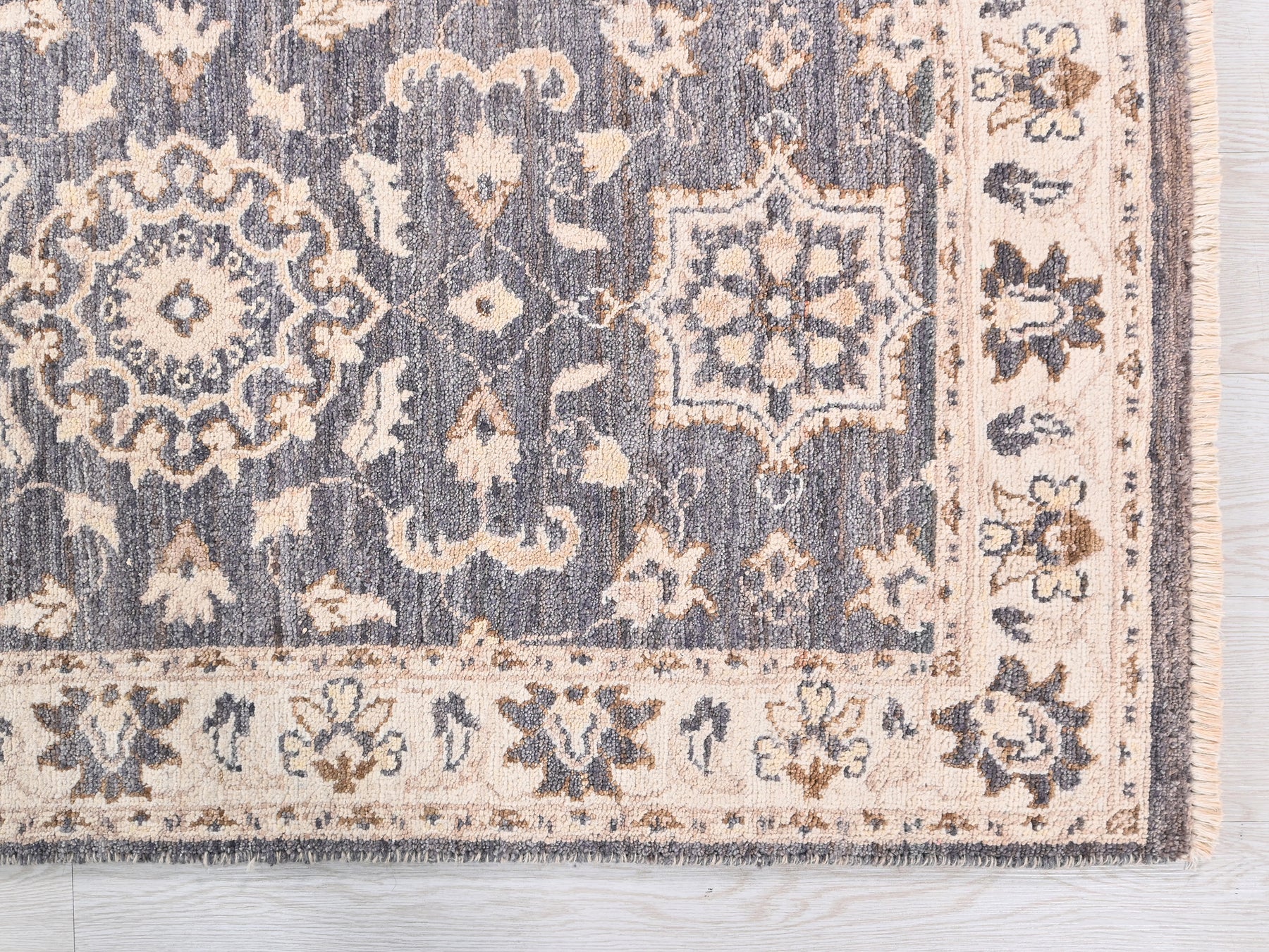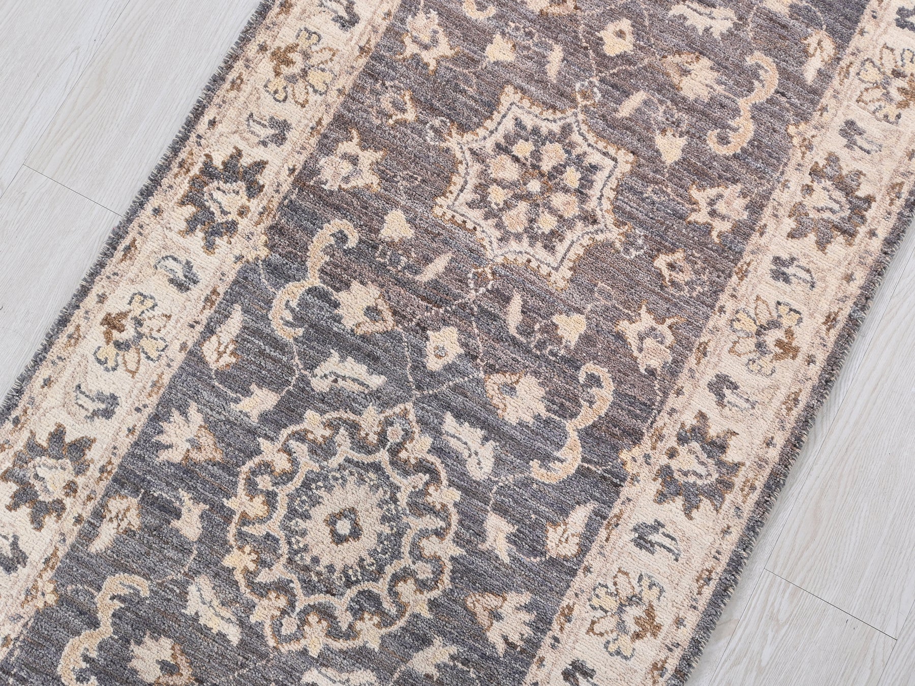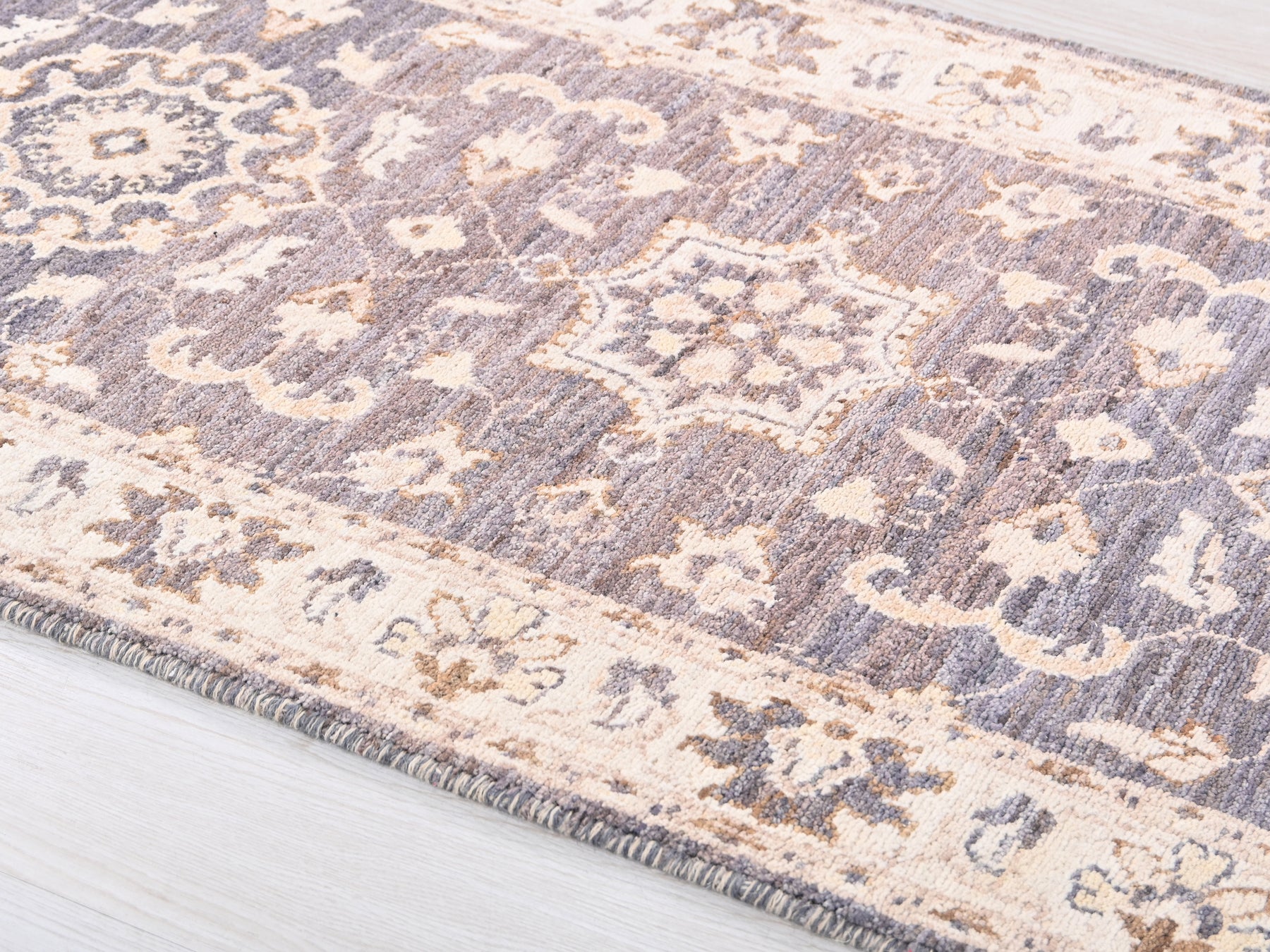 This is a hand-knotted, one-of-a-kind vintage rug. Due to the nature of this piece, there may be slight imperfections in its wear, shape, dimensions, and color. All of our rugs are professionally cleaned and repaired.
