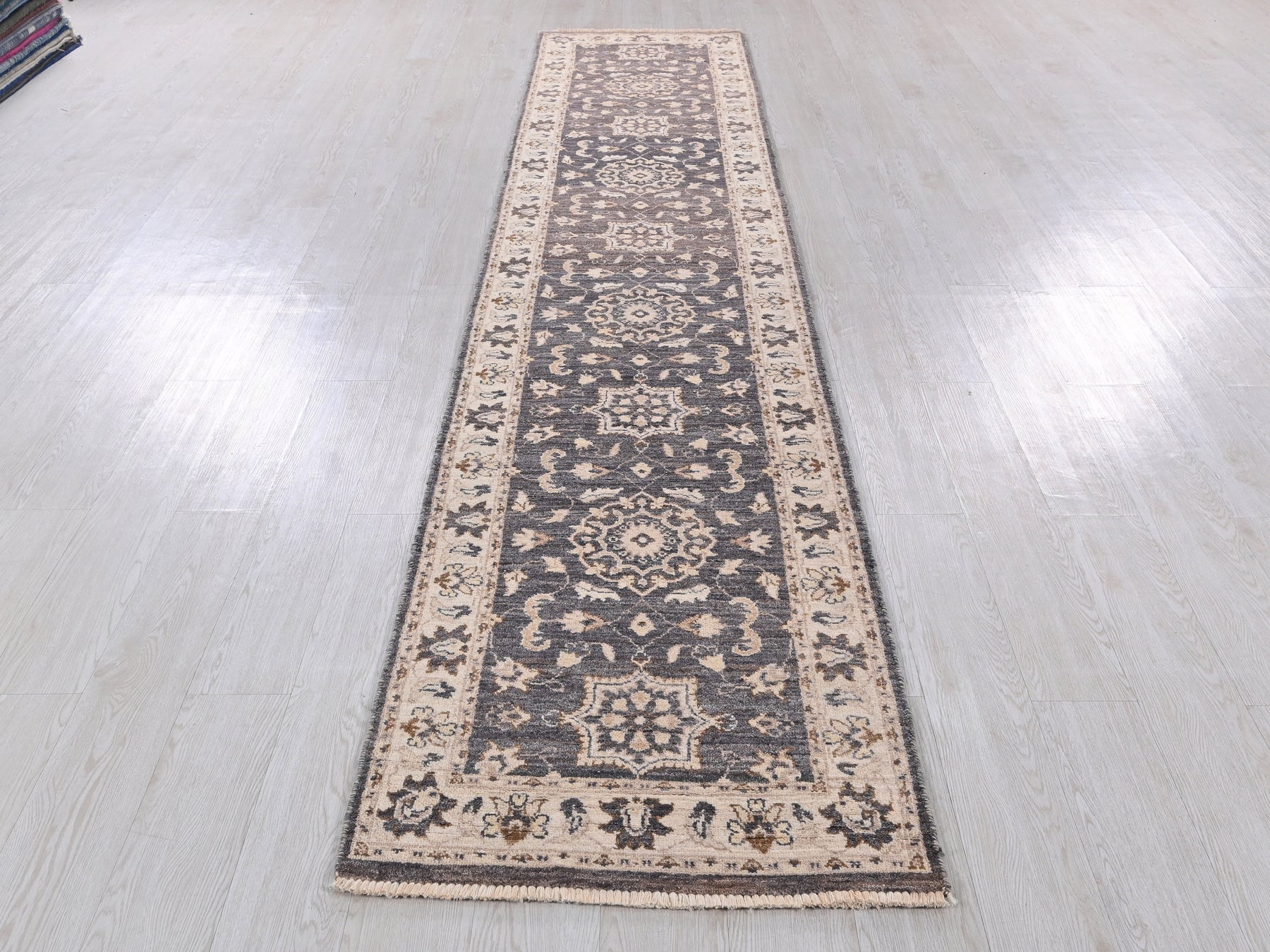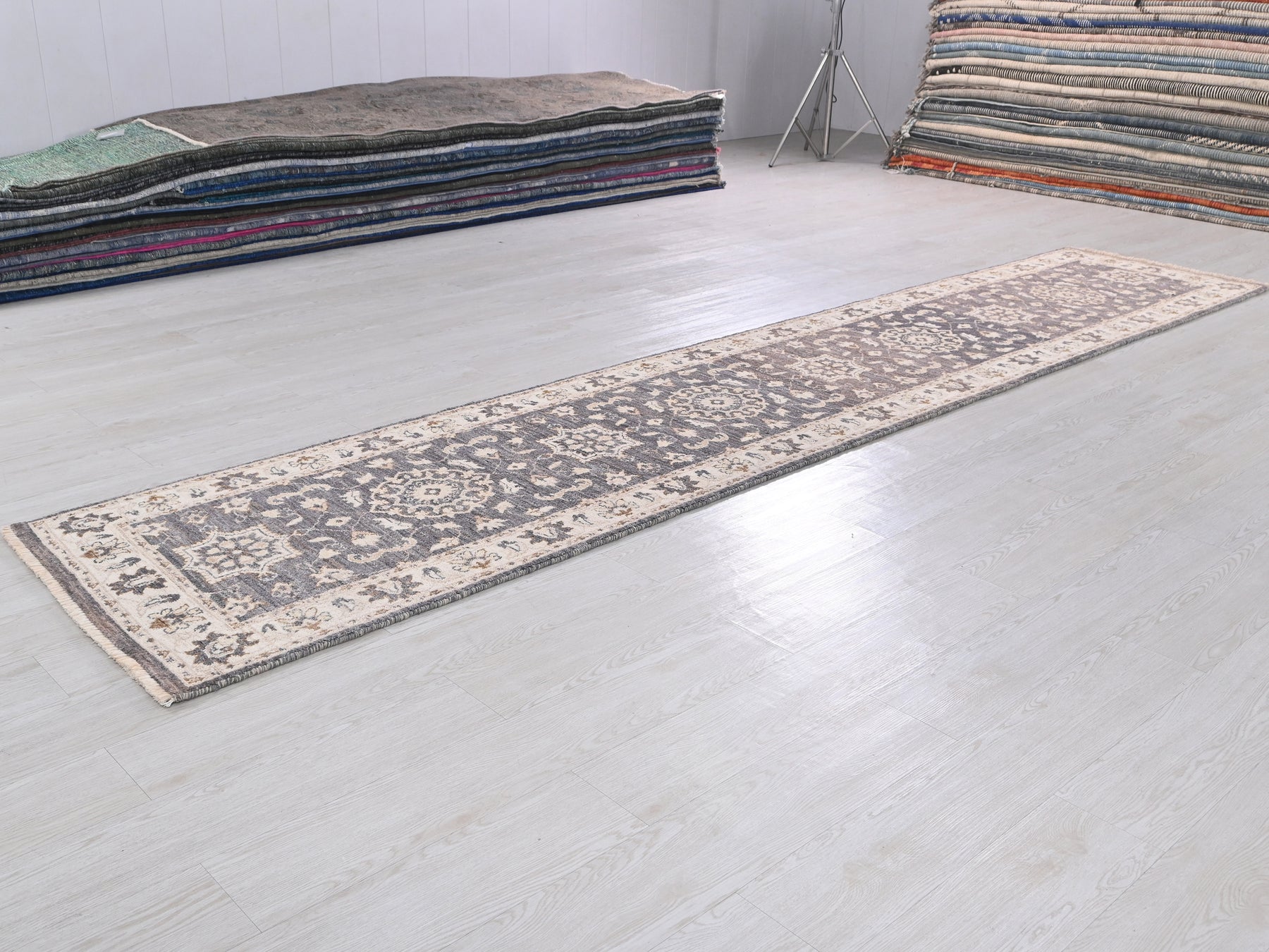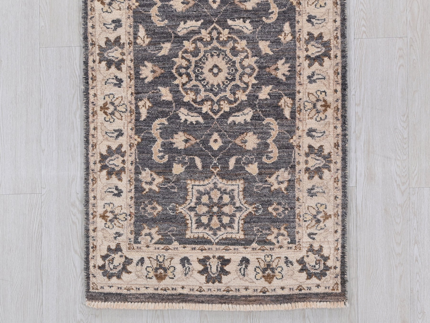 This is a hand-knotted, one-of-a-kind vintage rug. Due to the nature of this piece, there may be slight imperfections in its wear, shape, dimensions, and color. All of our rugs are professionally cleaned and repaired.