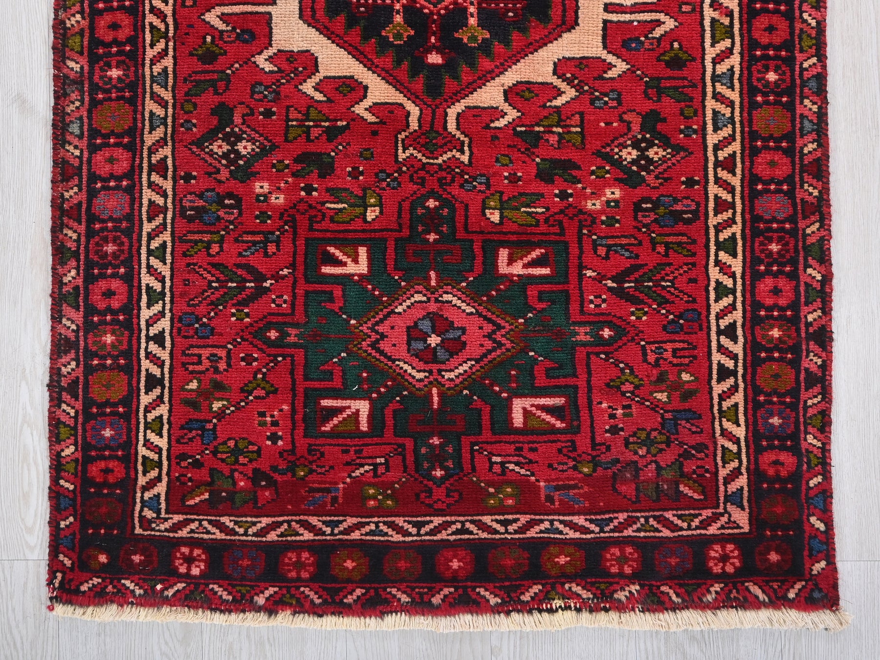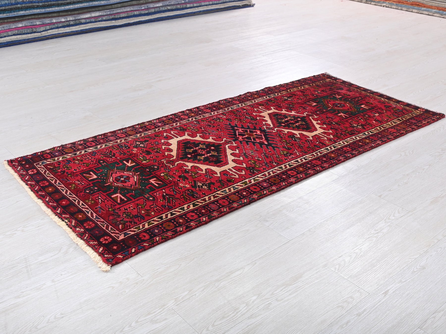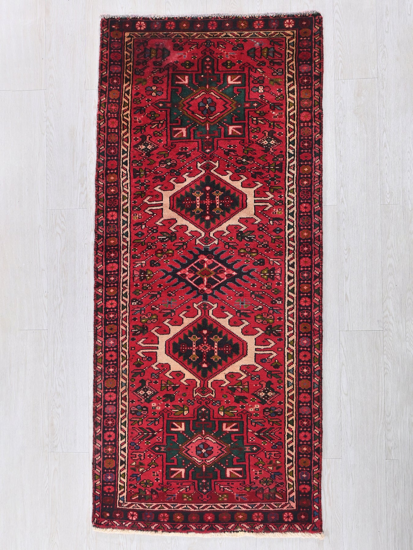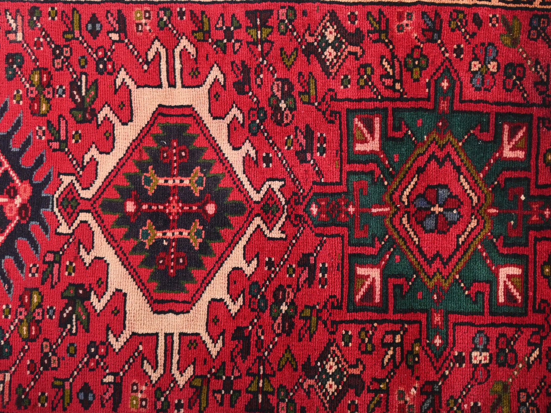 This is a hand-knotted, one-of-a-kind vintage rug. Due to the nature of this piece, there may be slight imperfections in its wear, shape, dimensions, and color. All of our rugs are professionally cleaned and repaired.
