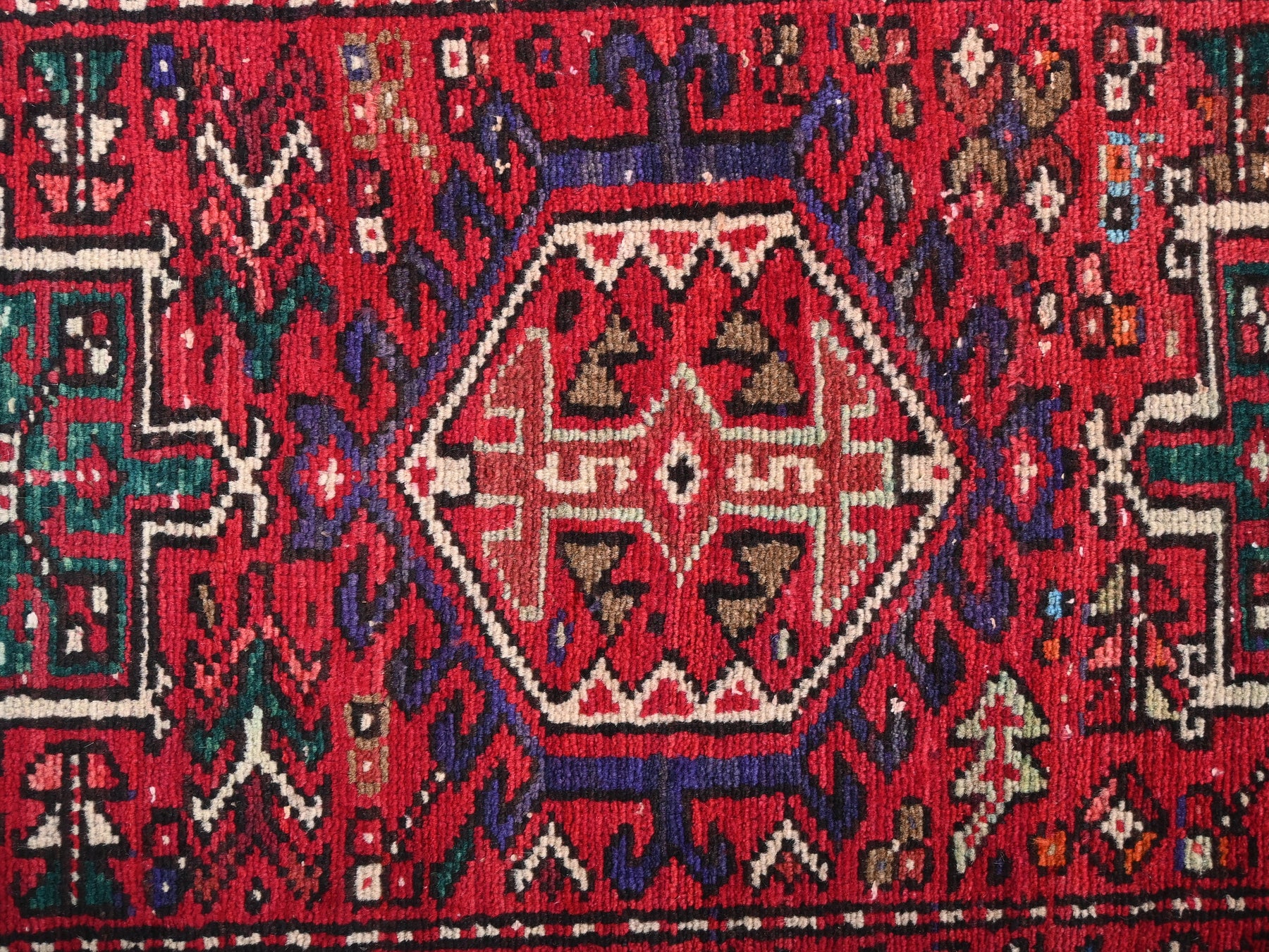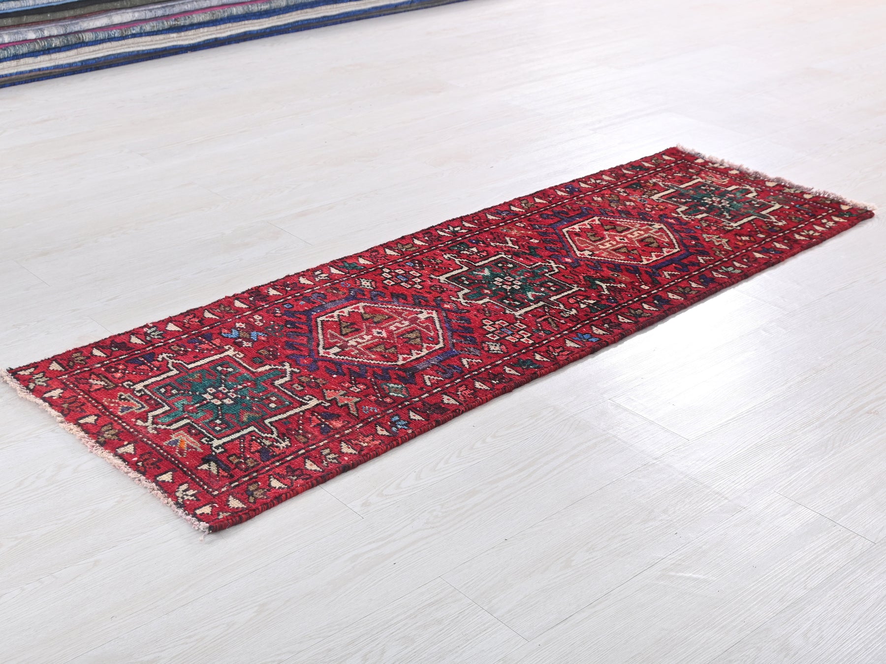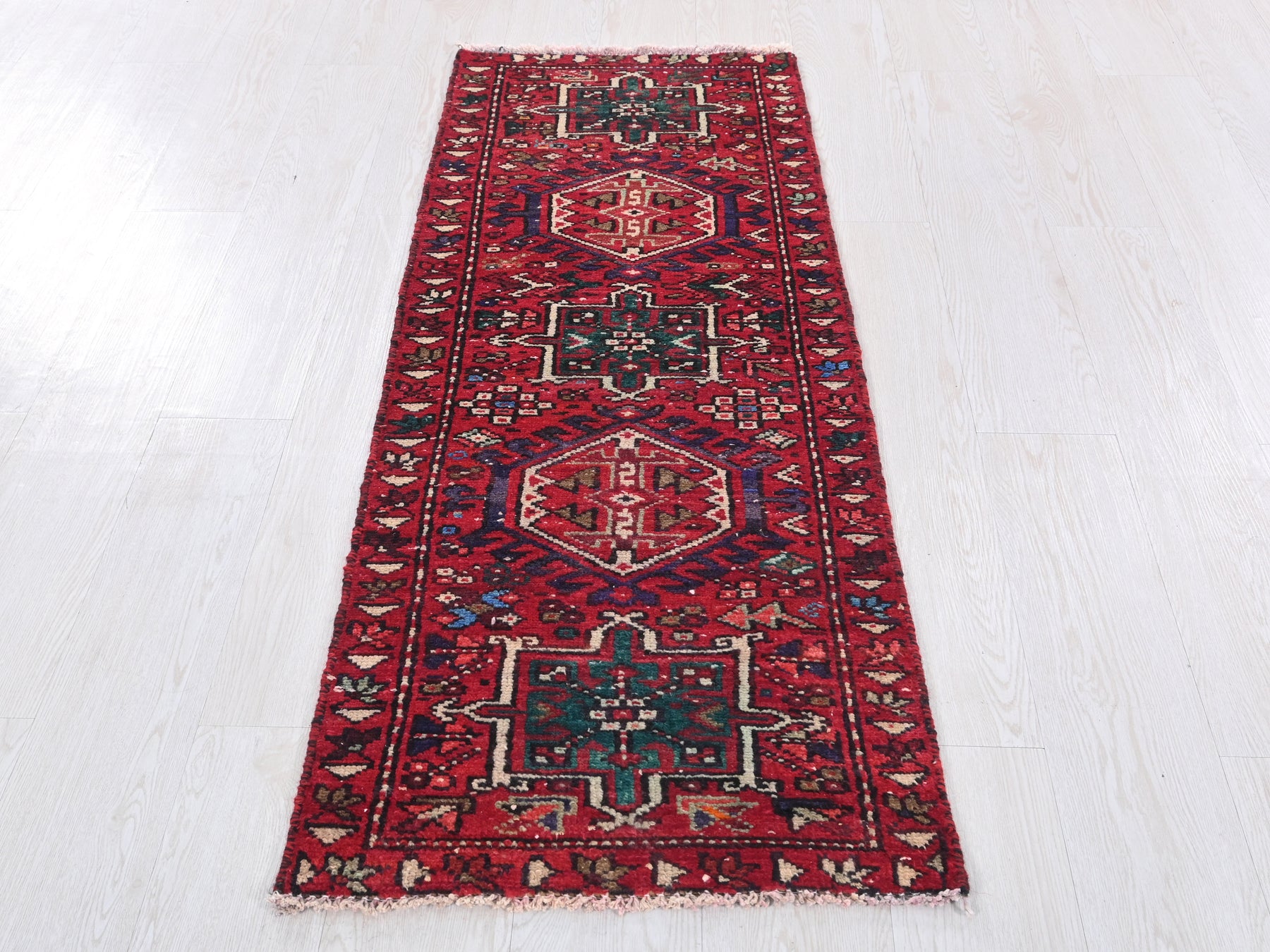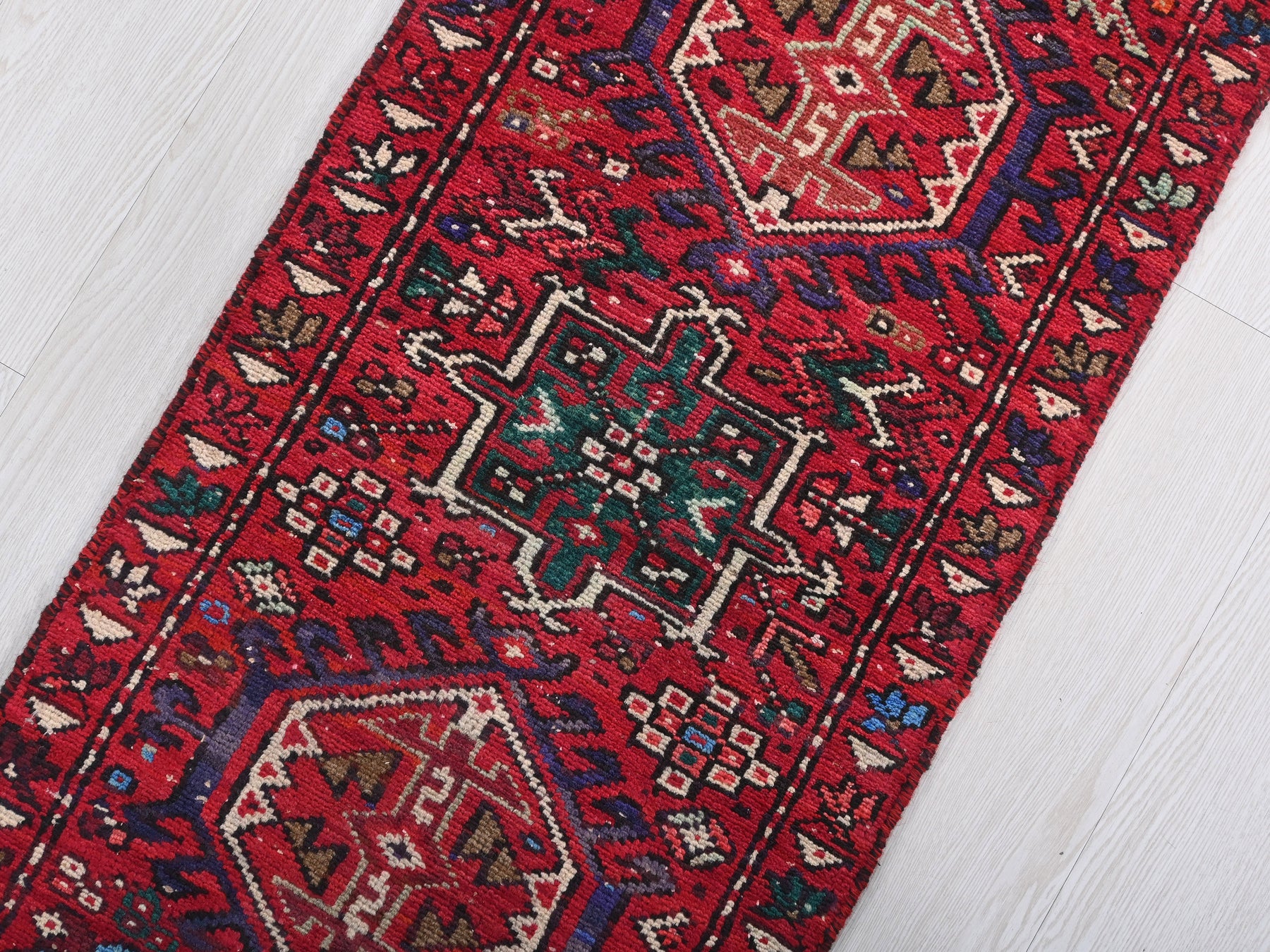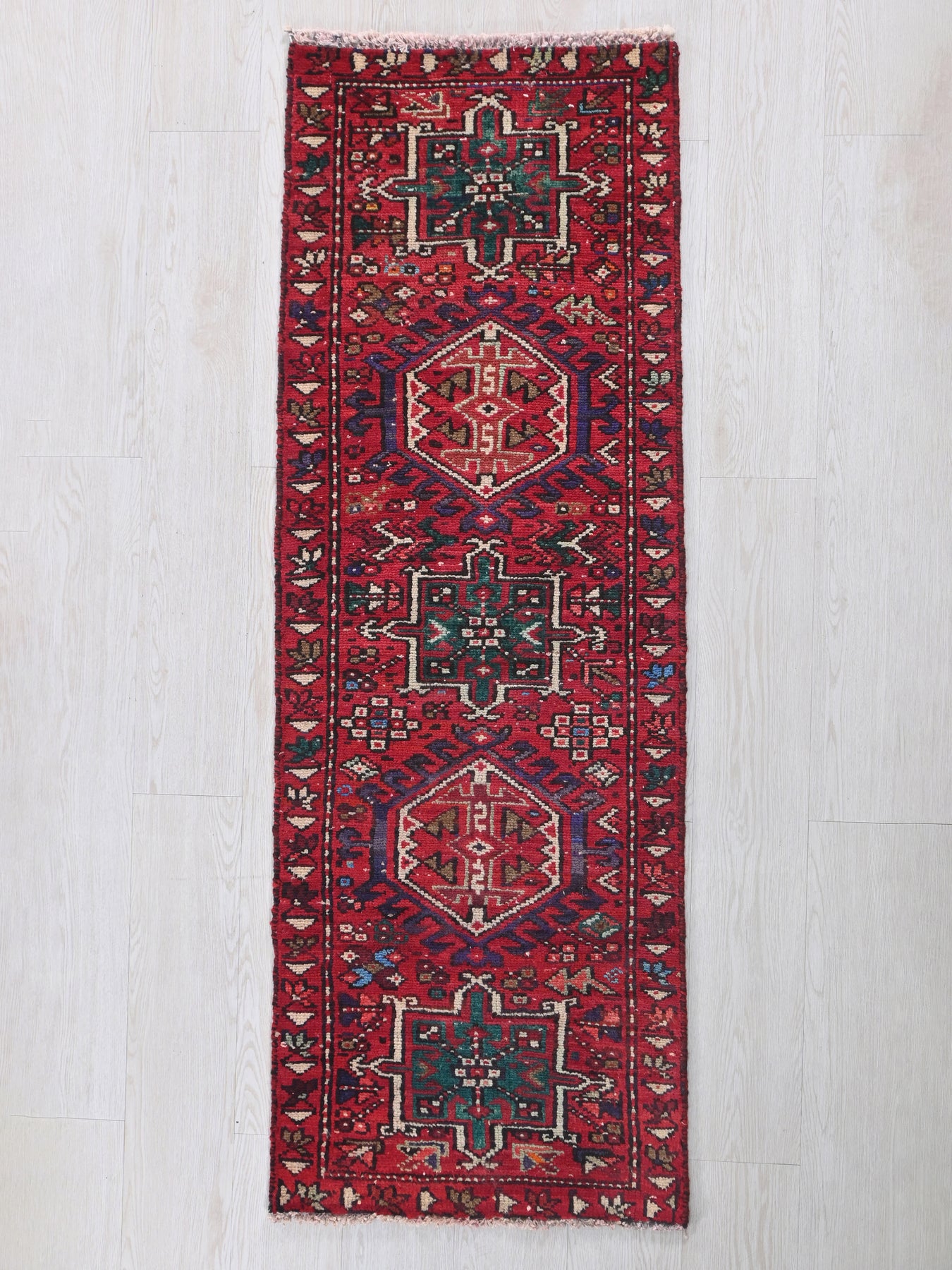 This is a hand-knotted, one-of-a-kind vintage rug. Due to the nature of this piece, there may be slight imperfections in its wear, shape, dimensions, and color. All of our rugs are professionally cleaned and repaired.
